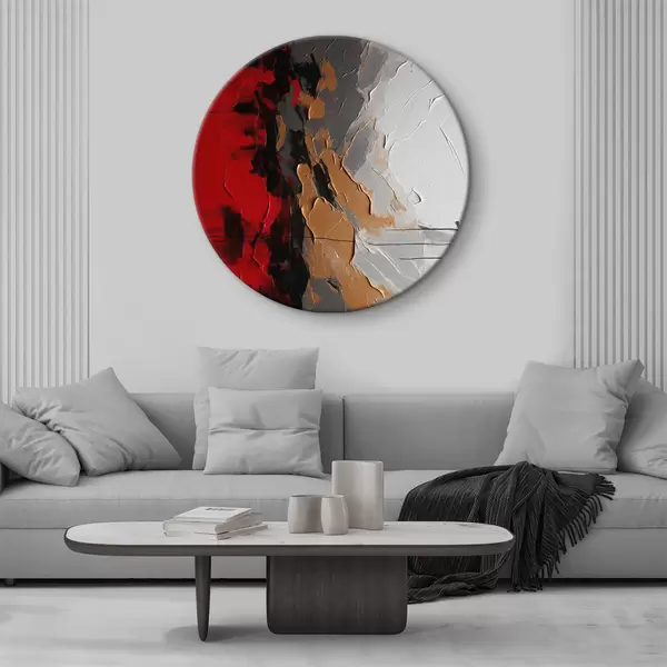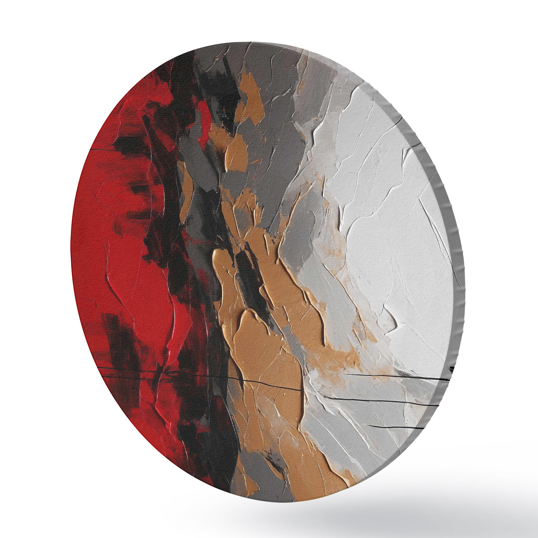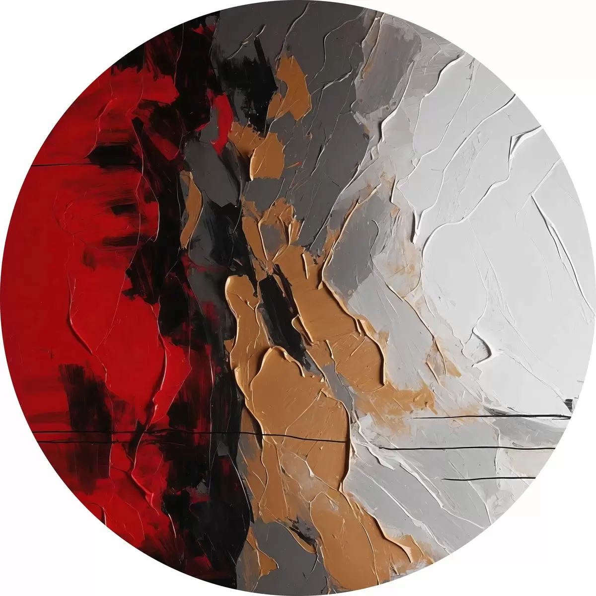 Cuadros redondos Enérgicas pinceladas de rojo, blanco y gris r38580