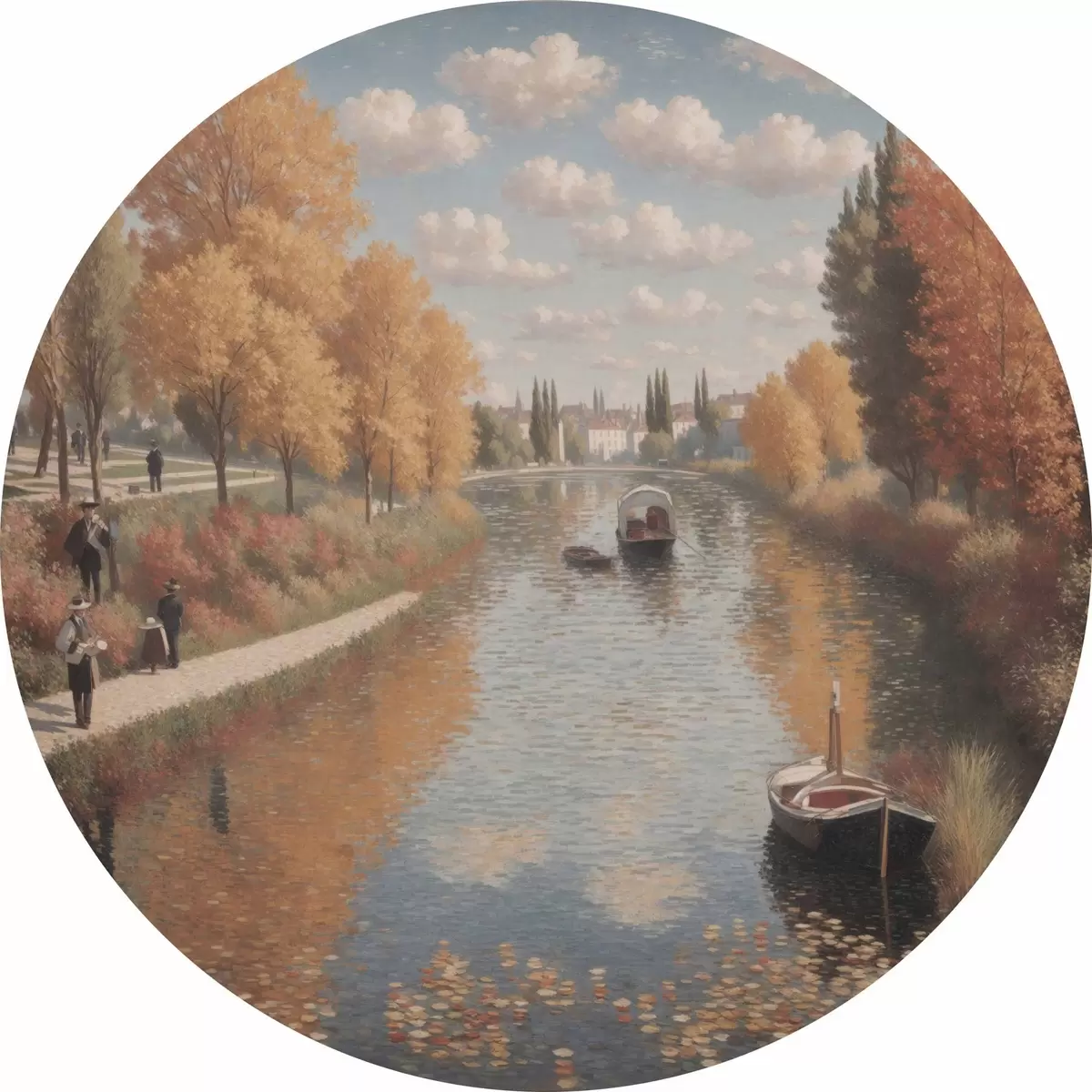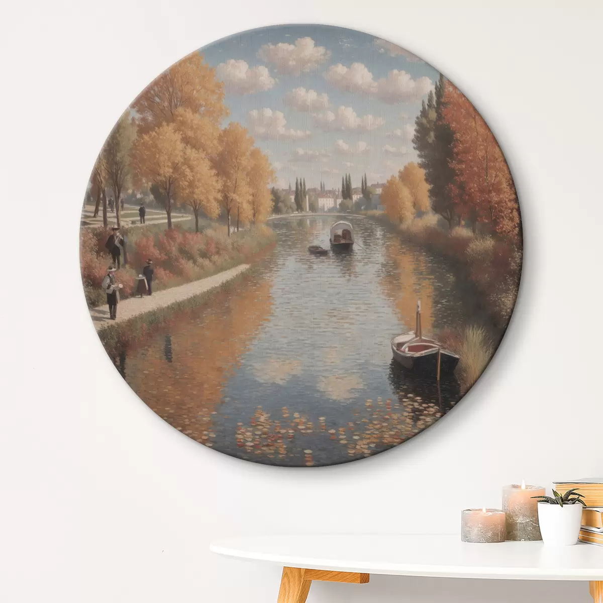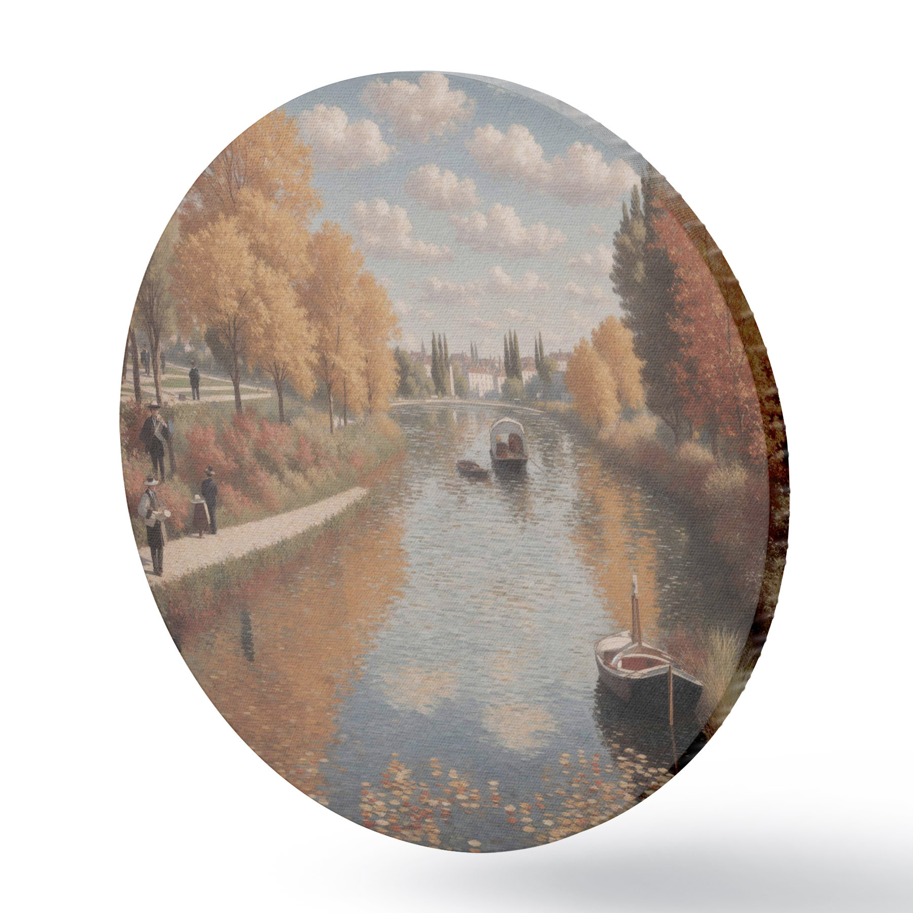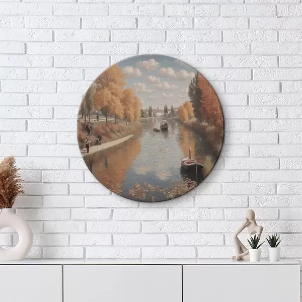 Cuadros redondos Un cuadro de un río con barcas y gente r38598