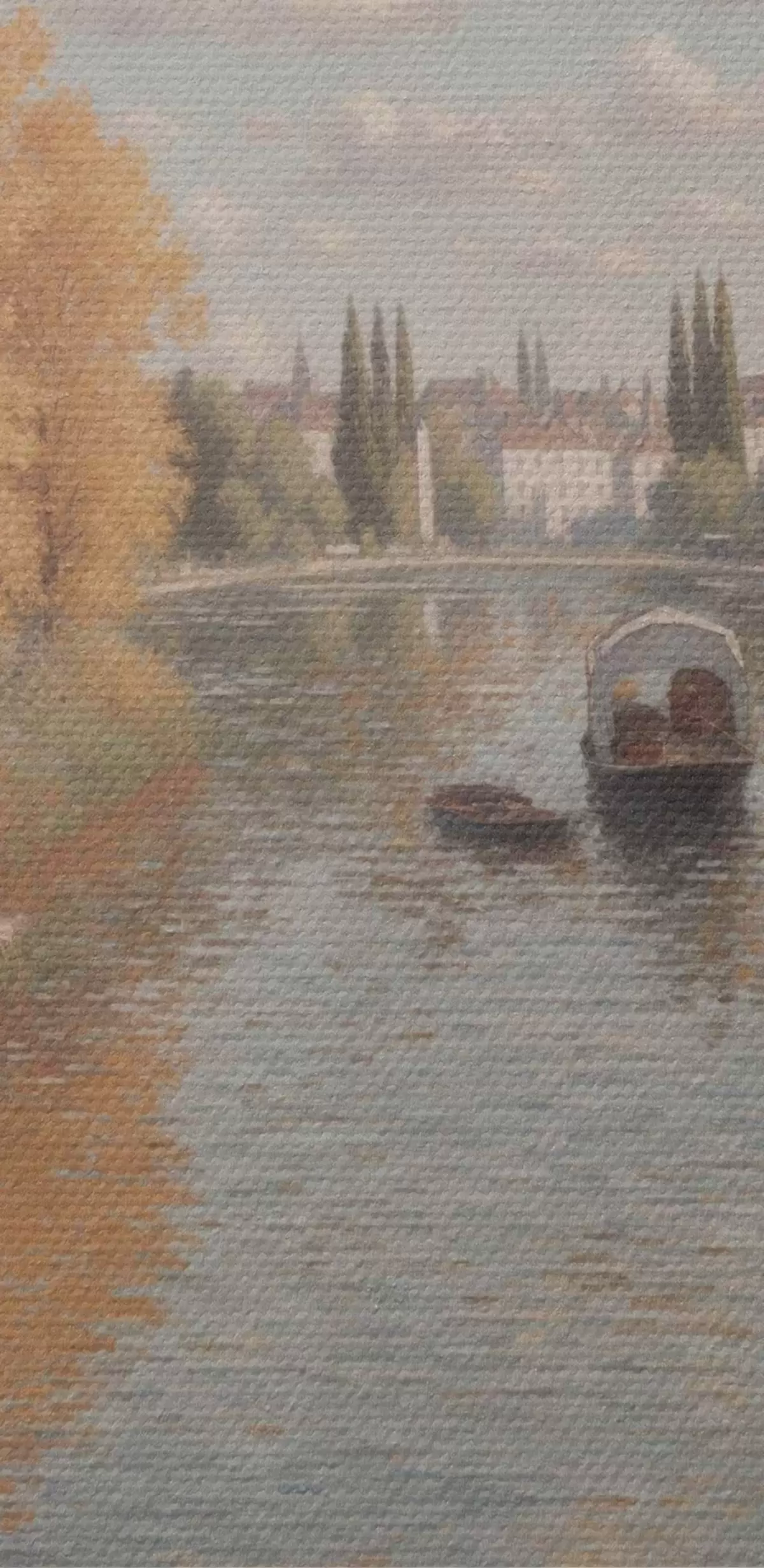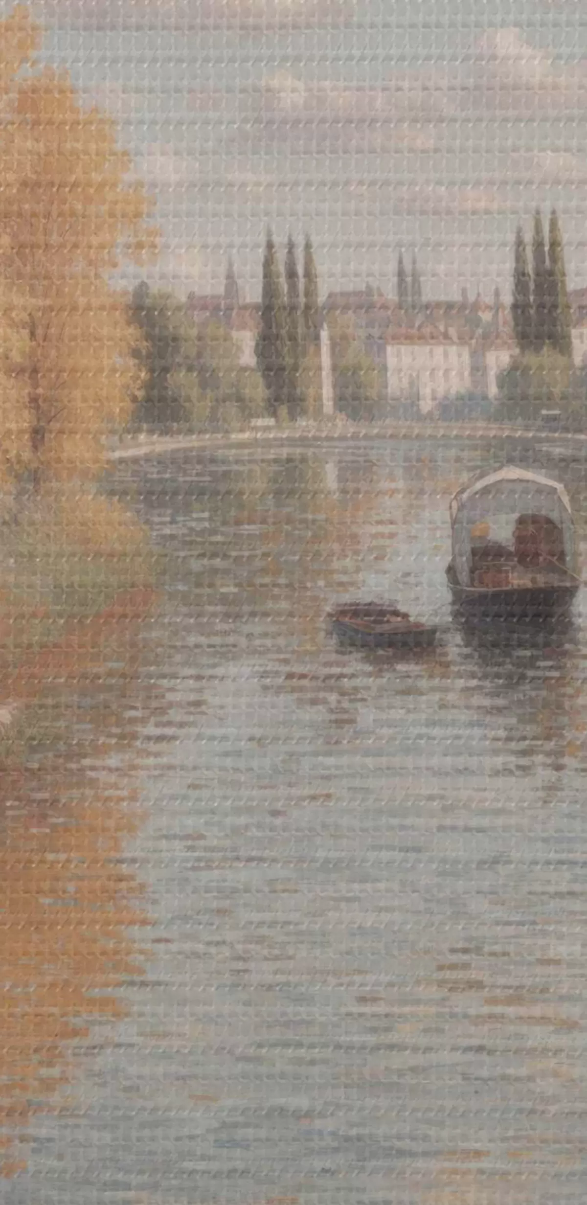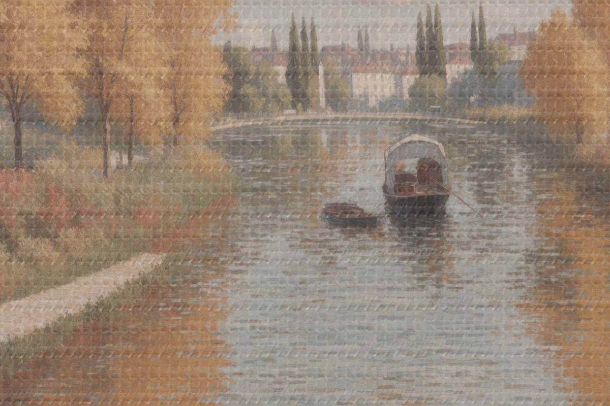 Foto Un cuadro de un río con barcas y gente Nr r38598