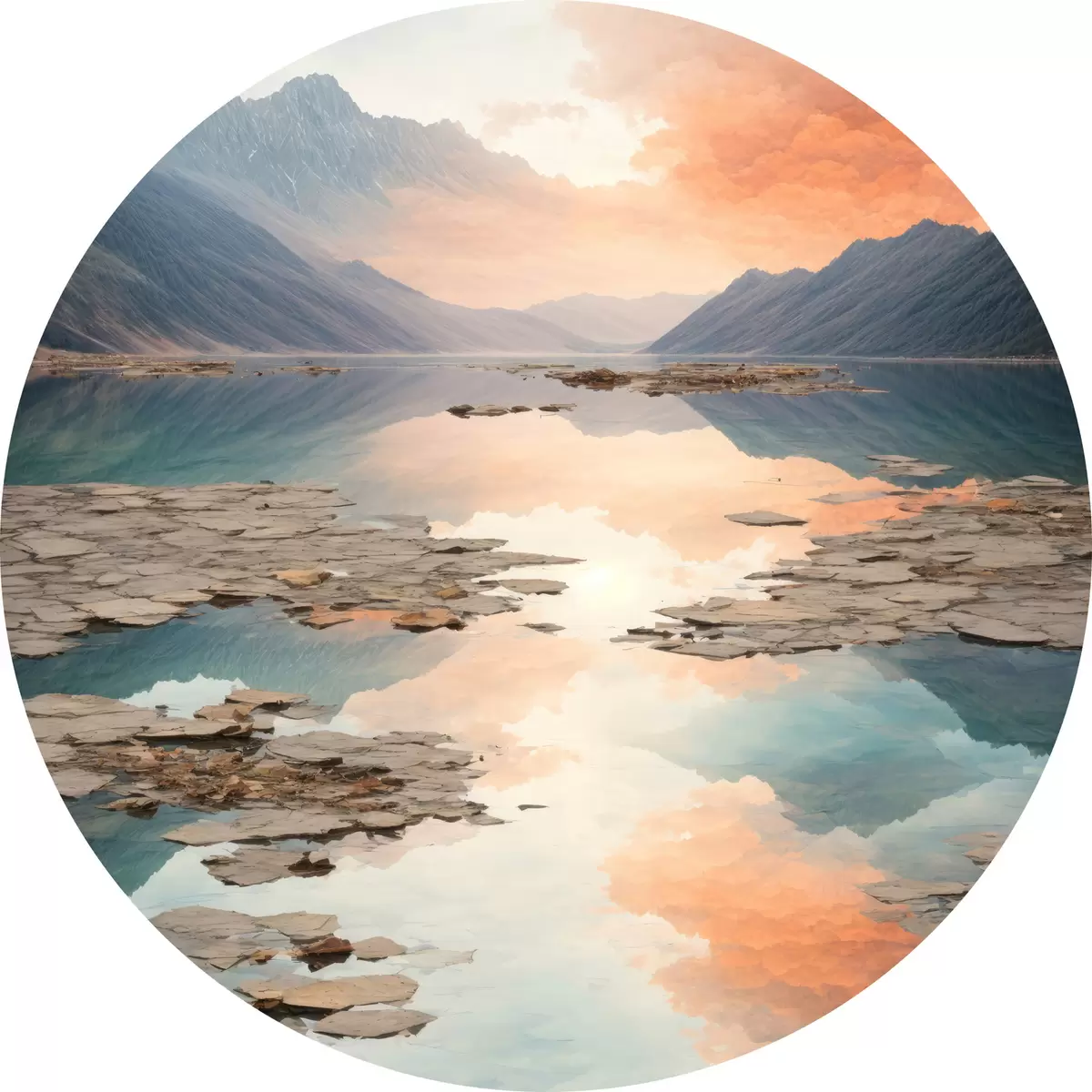 Cuadros redondos lago en las montañas r38600