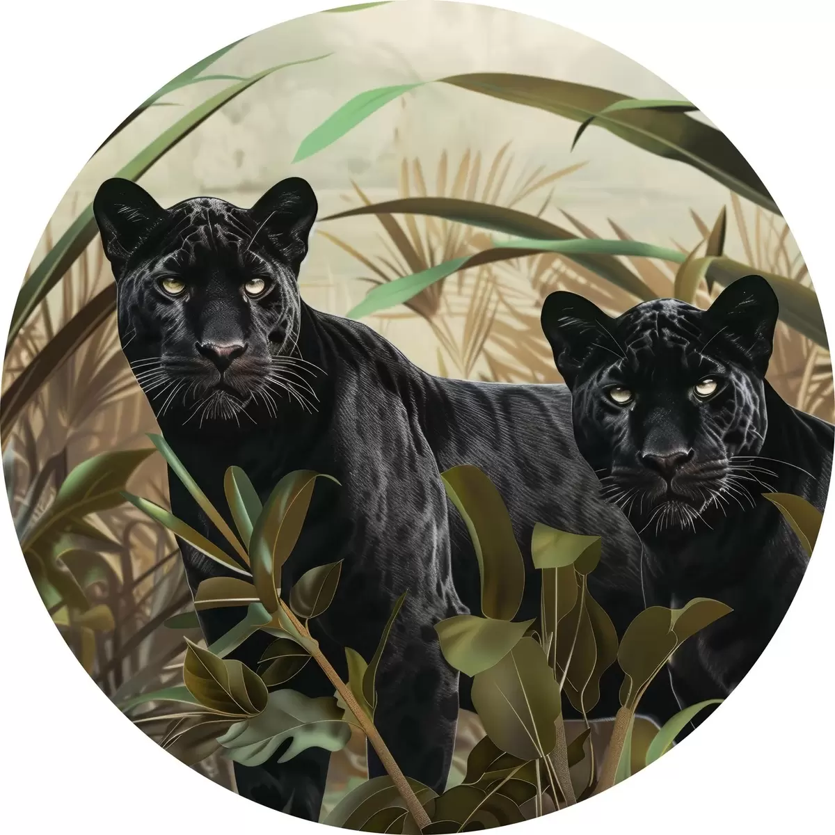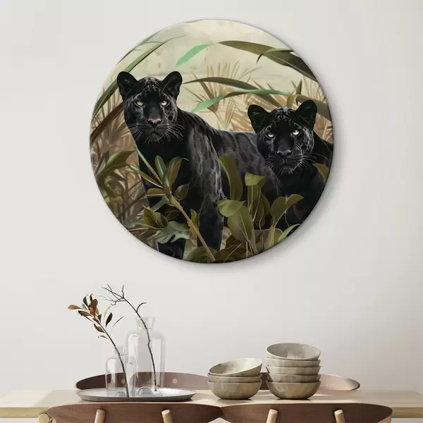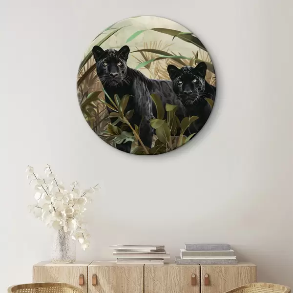 Cuadros redondos Dos tigres negros en la jungla r38618