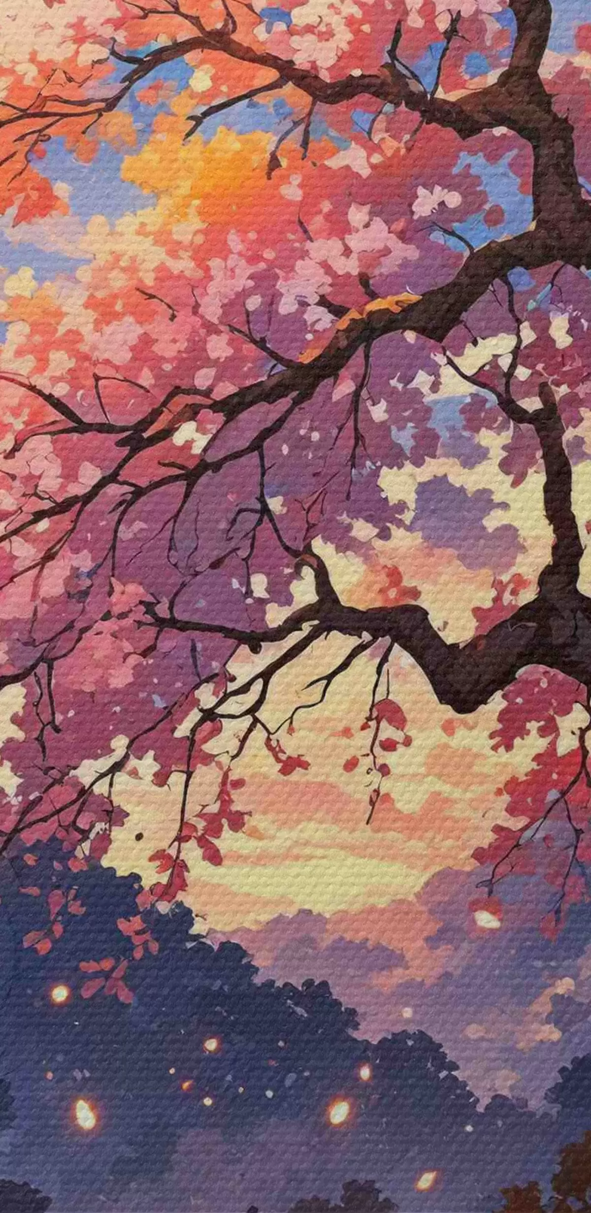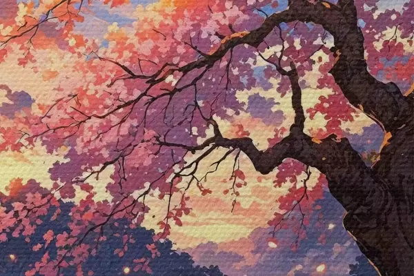 Foto Un árbol de flores rosas atravesado por un río Nr r38645