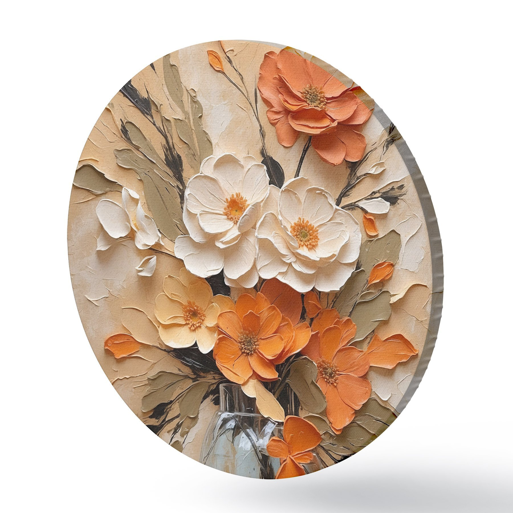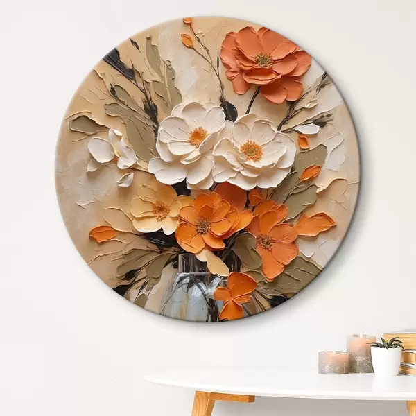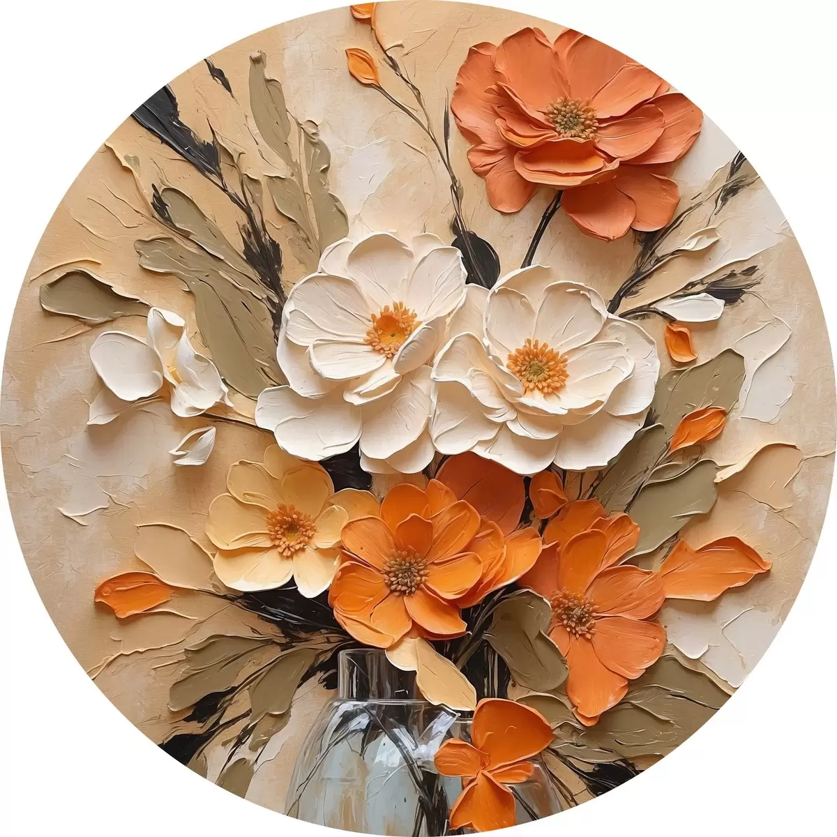 Cuadros redondos Flores en jarrón al óleo sobre fondo beige r38673