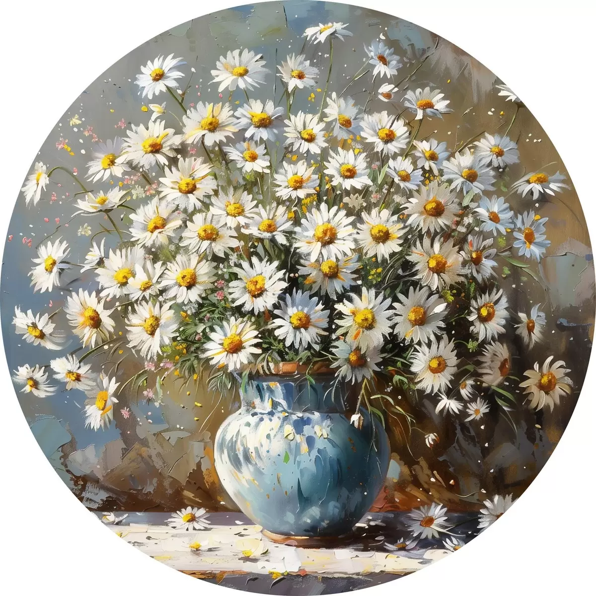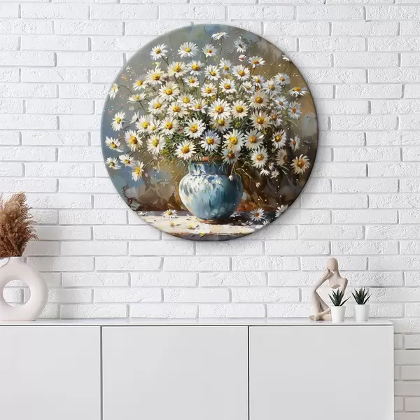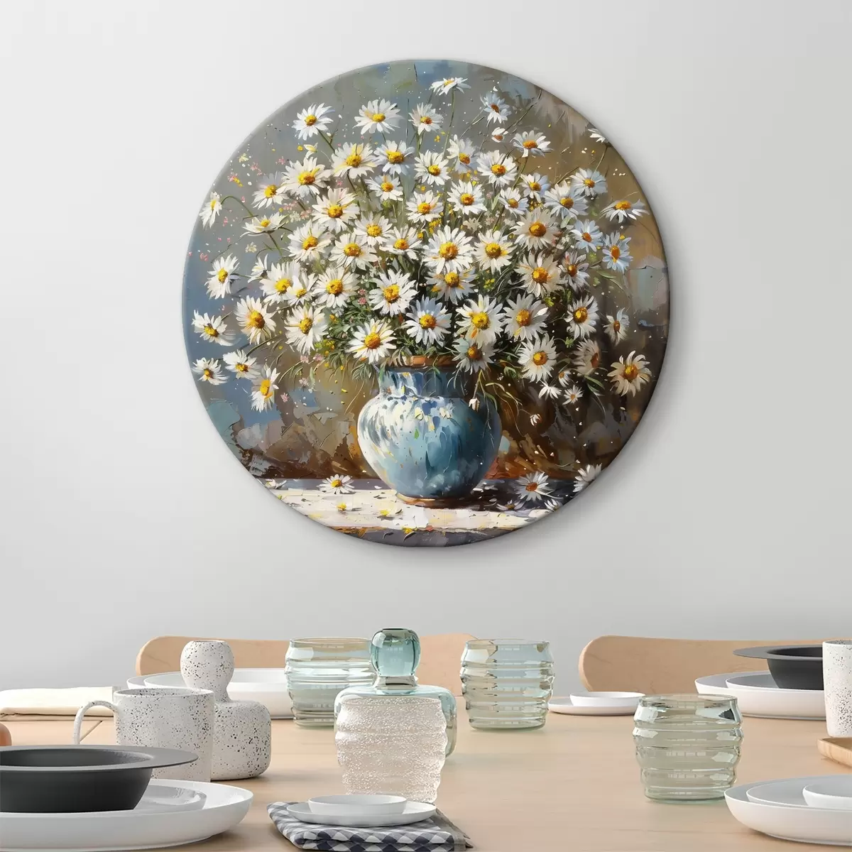 Cuadros redondos Jarrón con margaritas sobre la mesa r38707