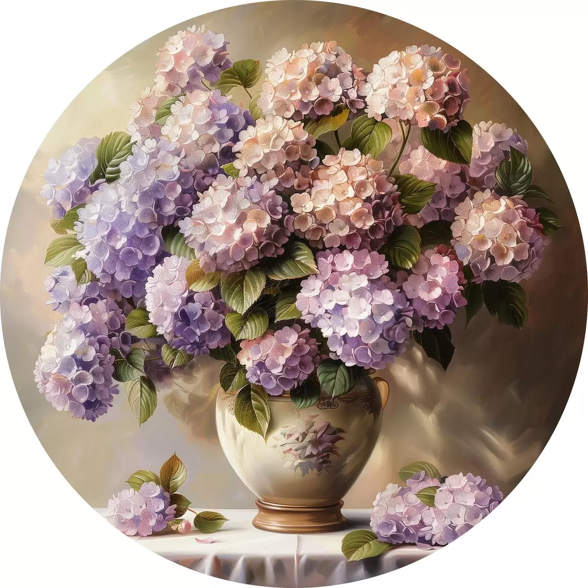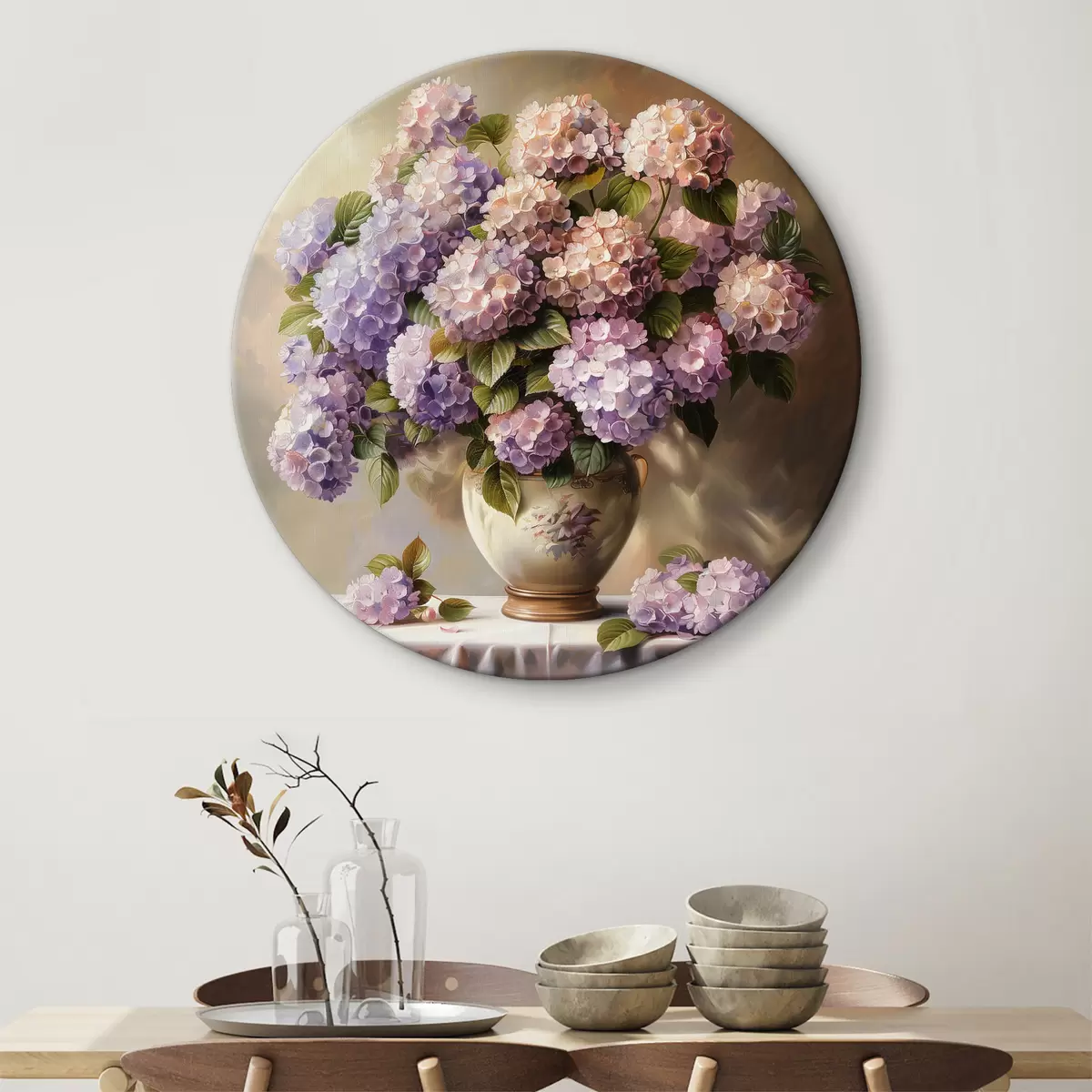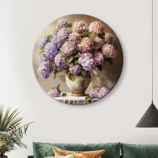 Cuadros redondos Delicadas hortensias sobre la mesa r38710