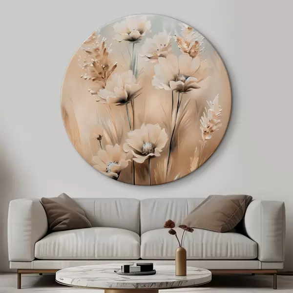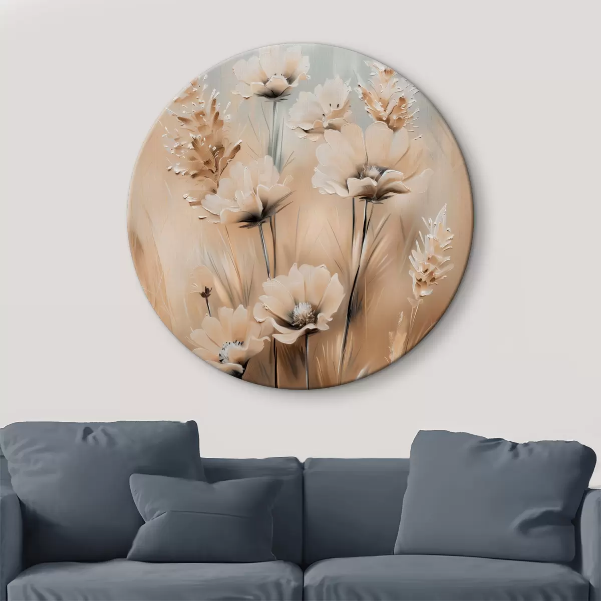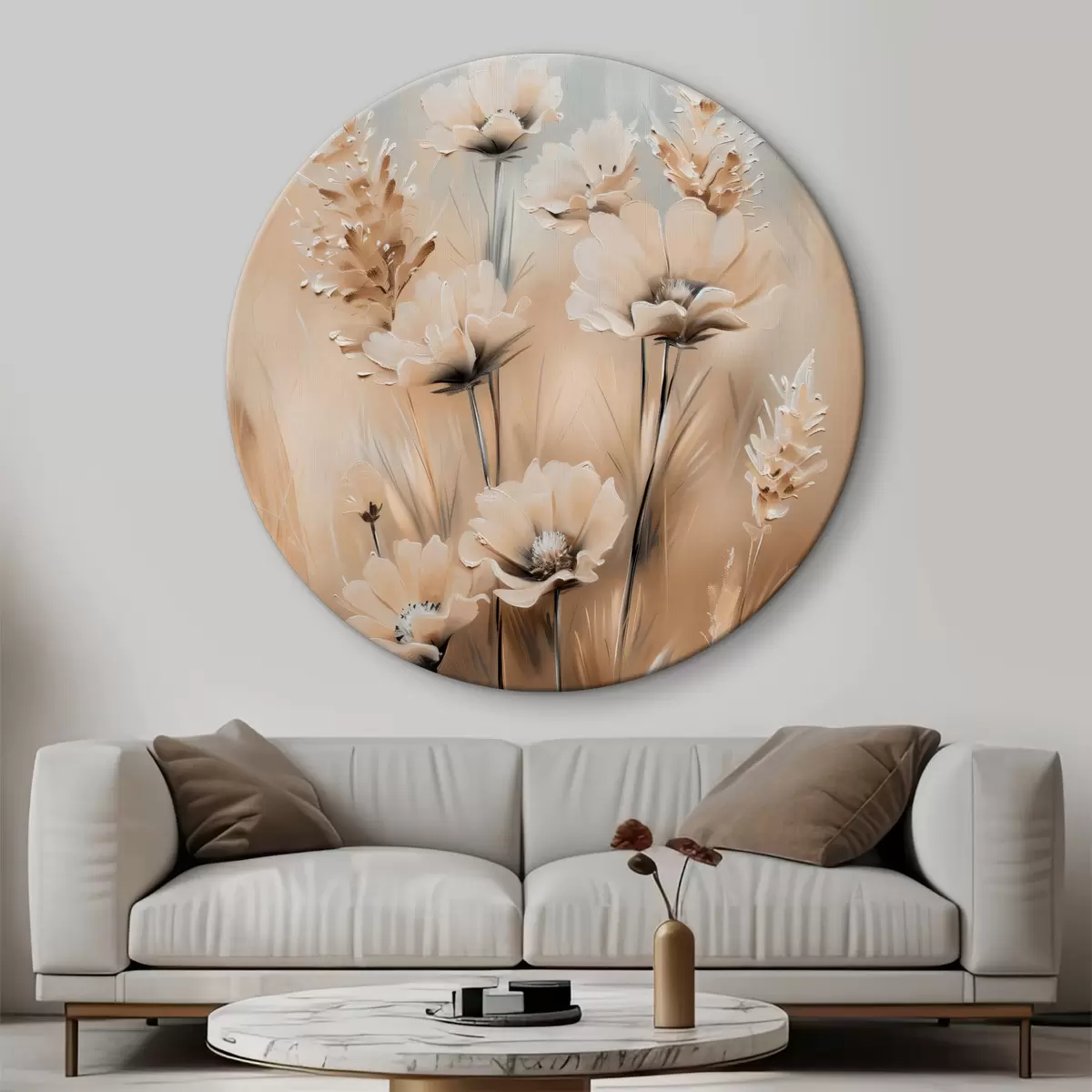 Cuadros redondos Flores en el campo en tonos beige r38720