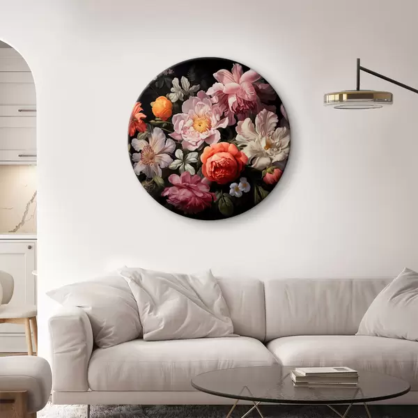 Cuadros redondos Imagen de flores sobre fondo negro r38721