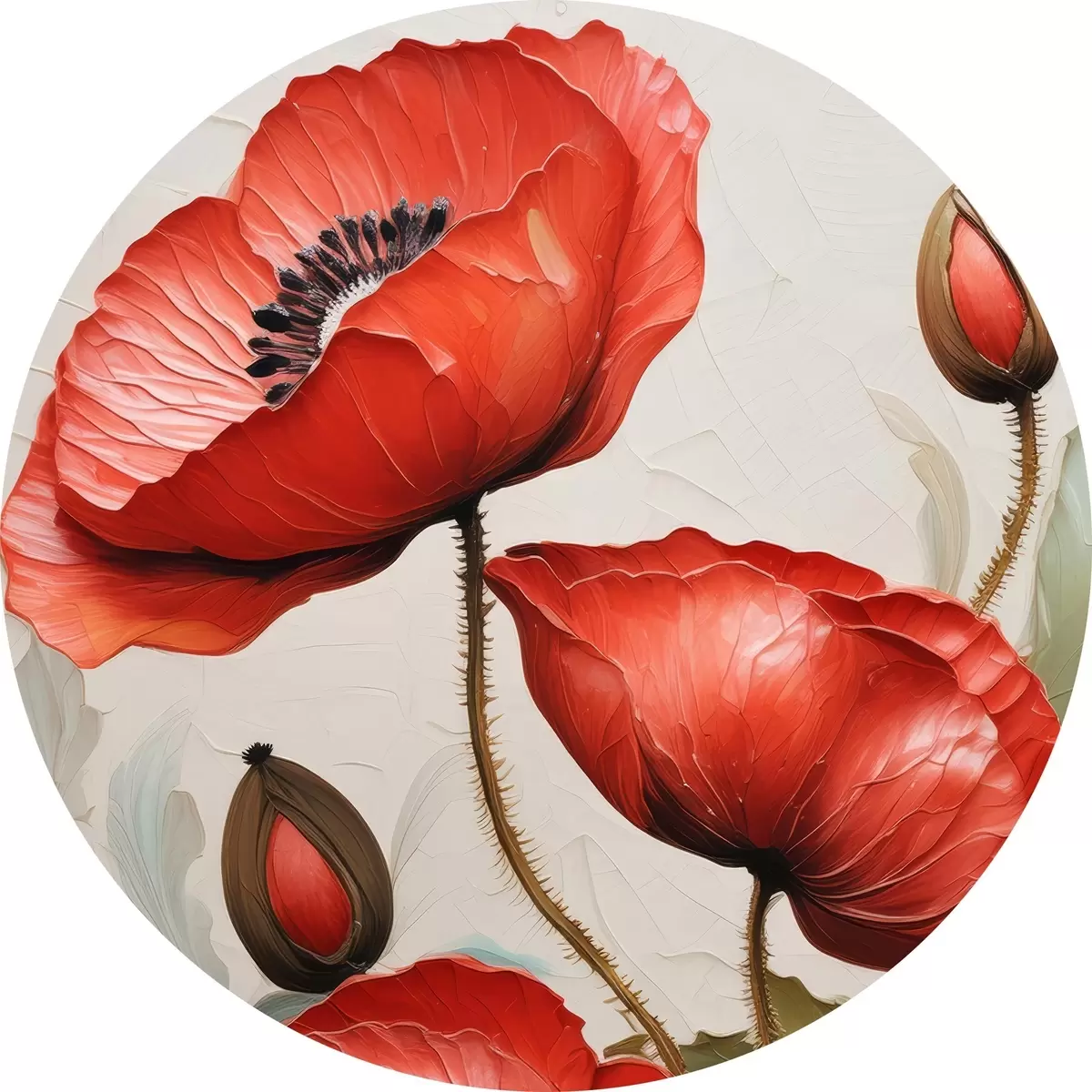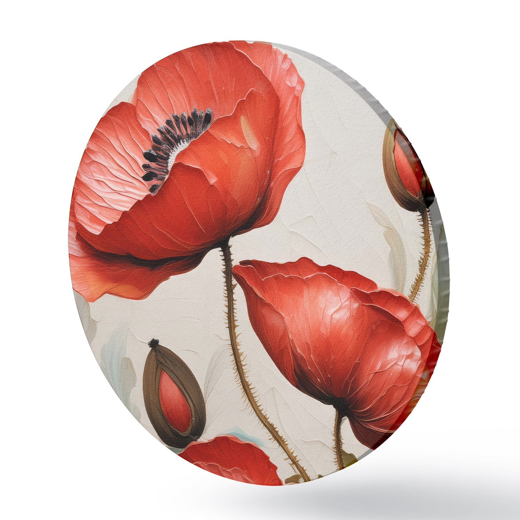 Cuadros redondos Hermosas amapolas rojas con pinturas al óleo r38734