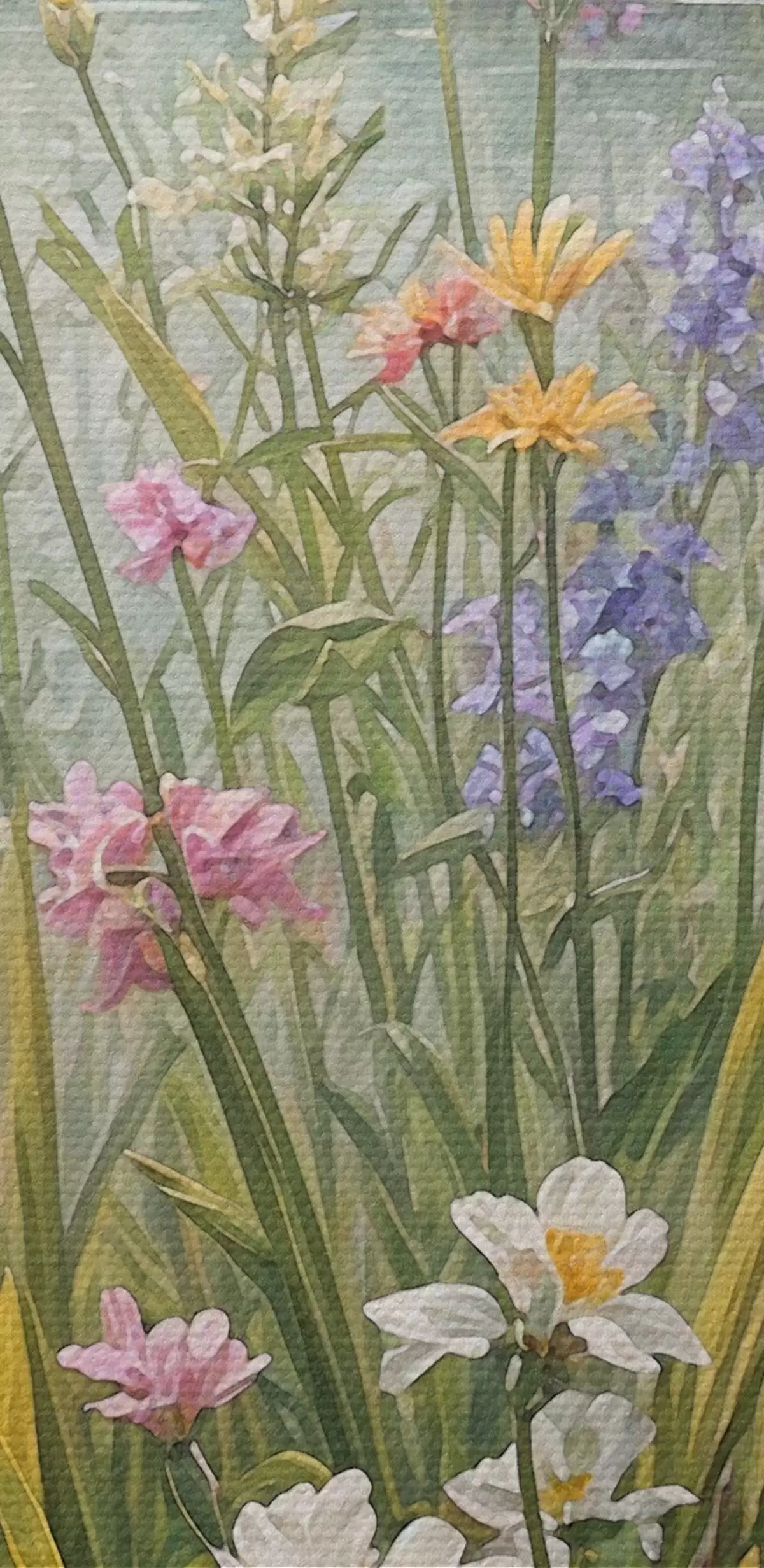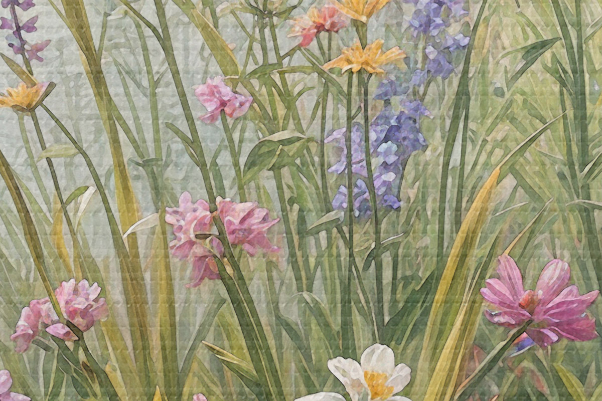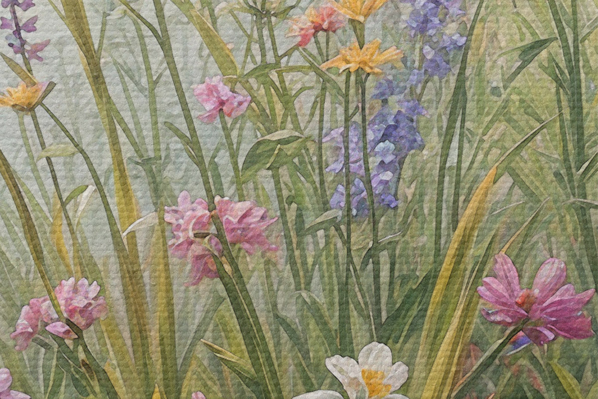Foto Flores silvestres y pastos altos. La escena general representa un paisaje natural vibrante Nr r38829
