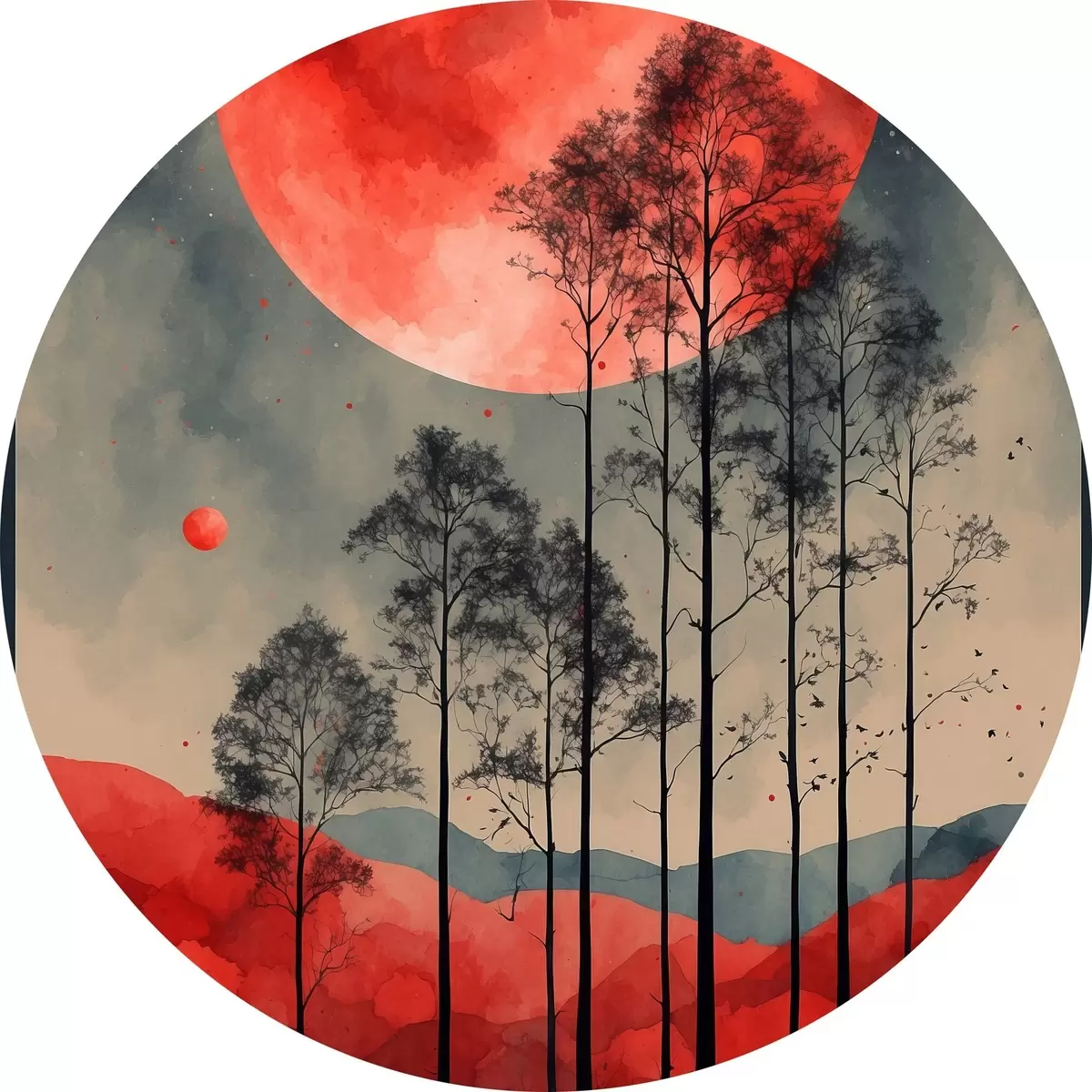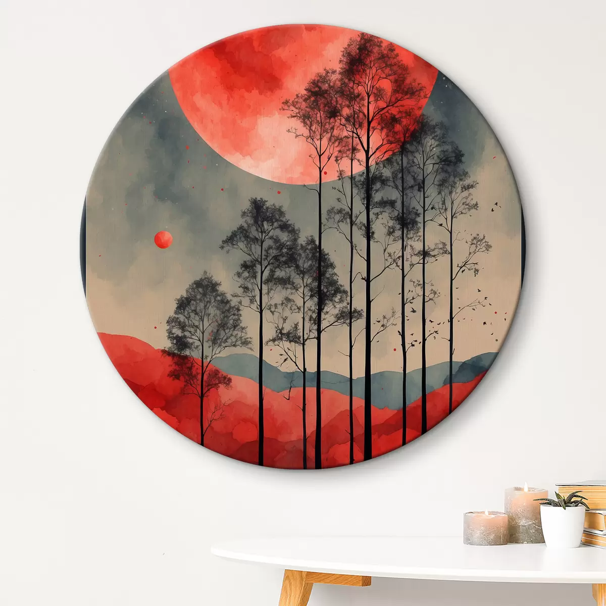 Cuadros redondos Una sangrienta luna llena sobre el bosque r38862