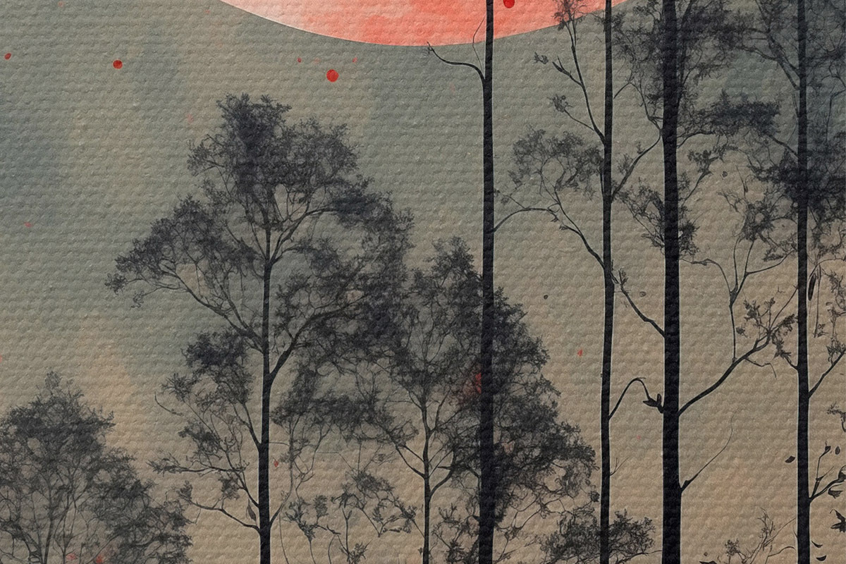 Foto Una sangrienta luna llena sobre el bosque Nr r38862