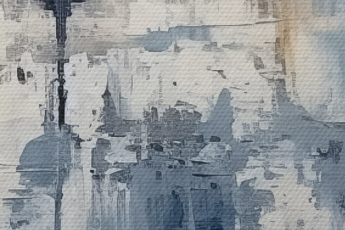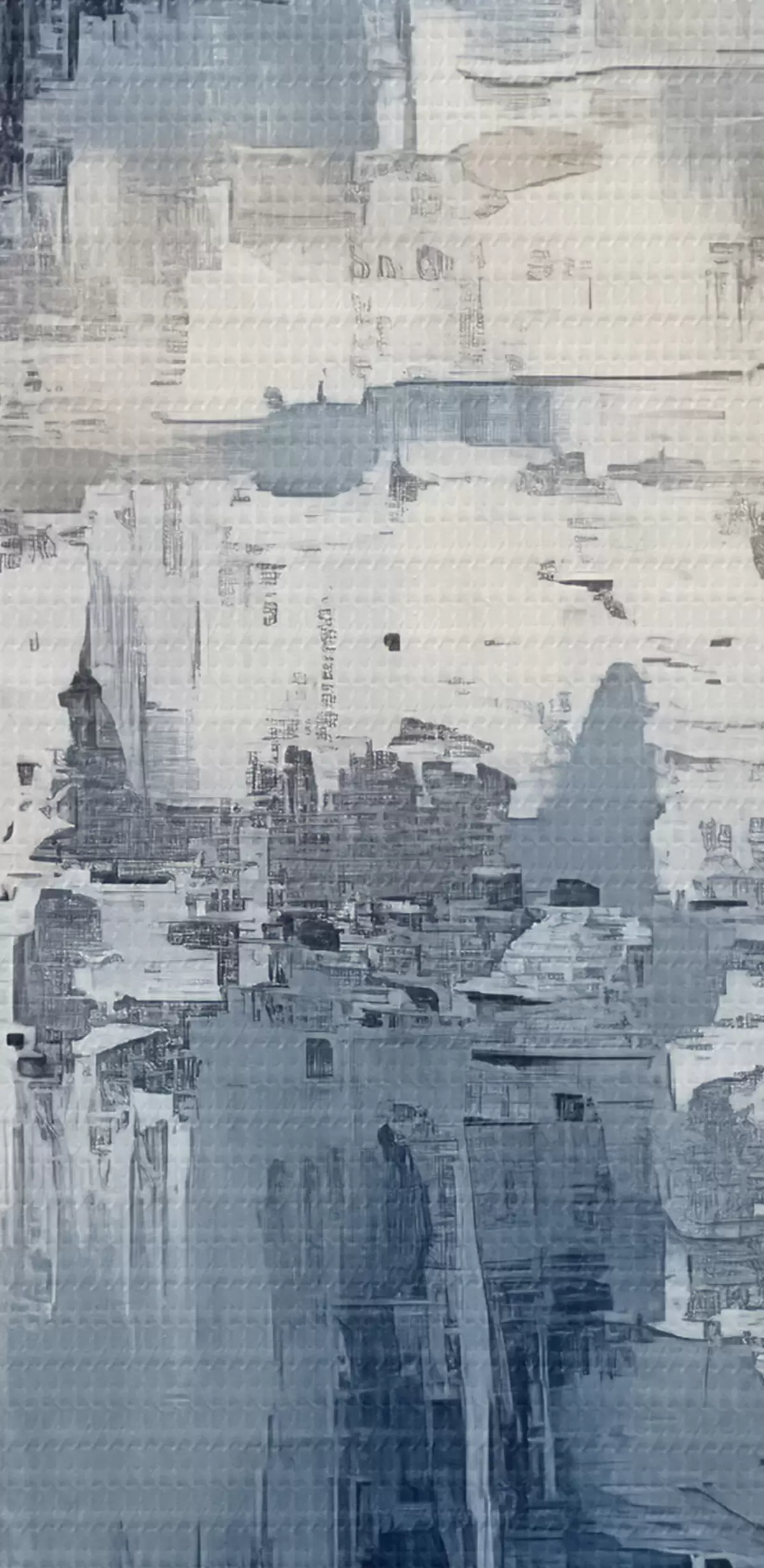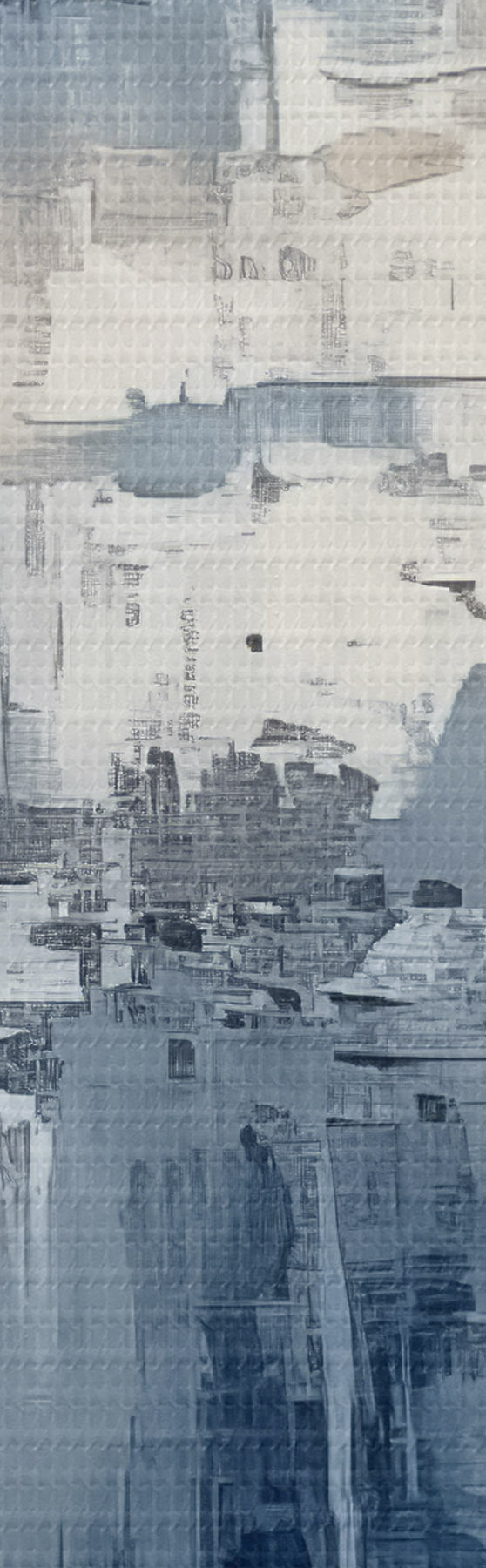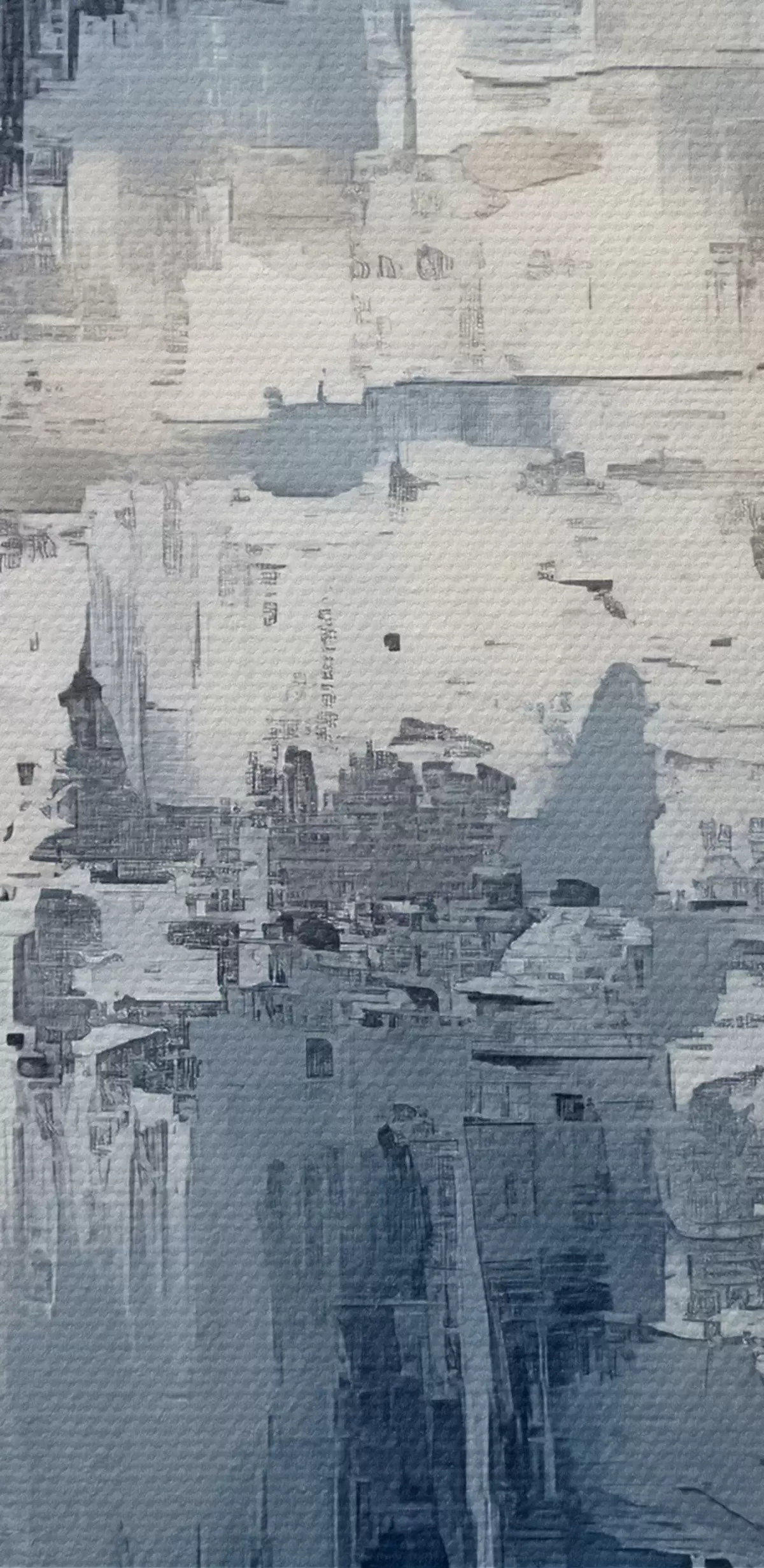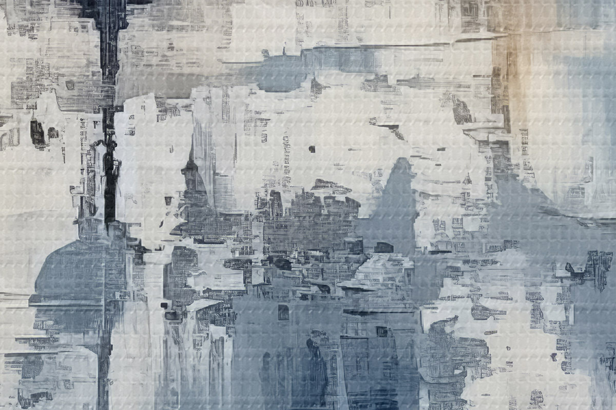 Foto Pintura al óleo minimalista abstracta, frotada, geométrica, mancha, color azul y blanco Nr r38906