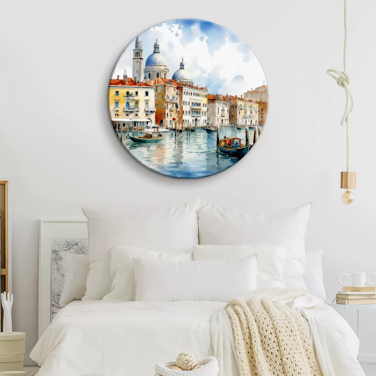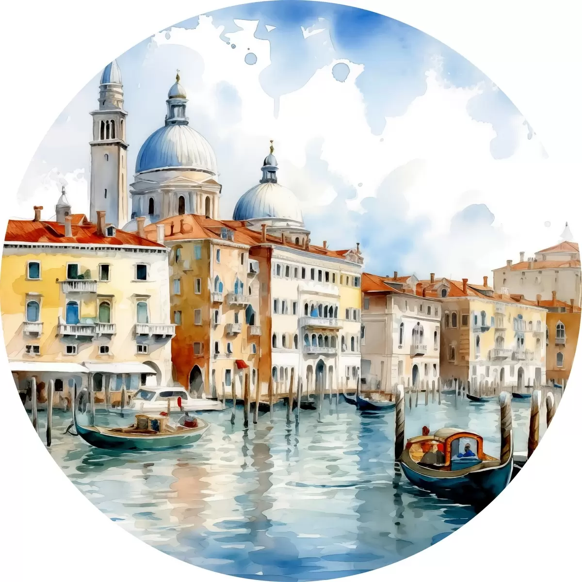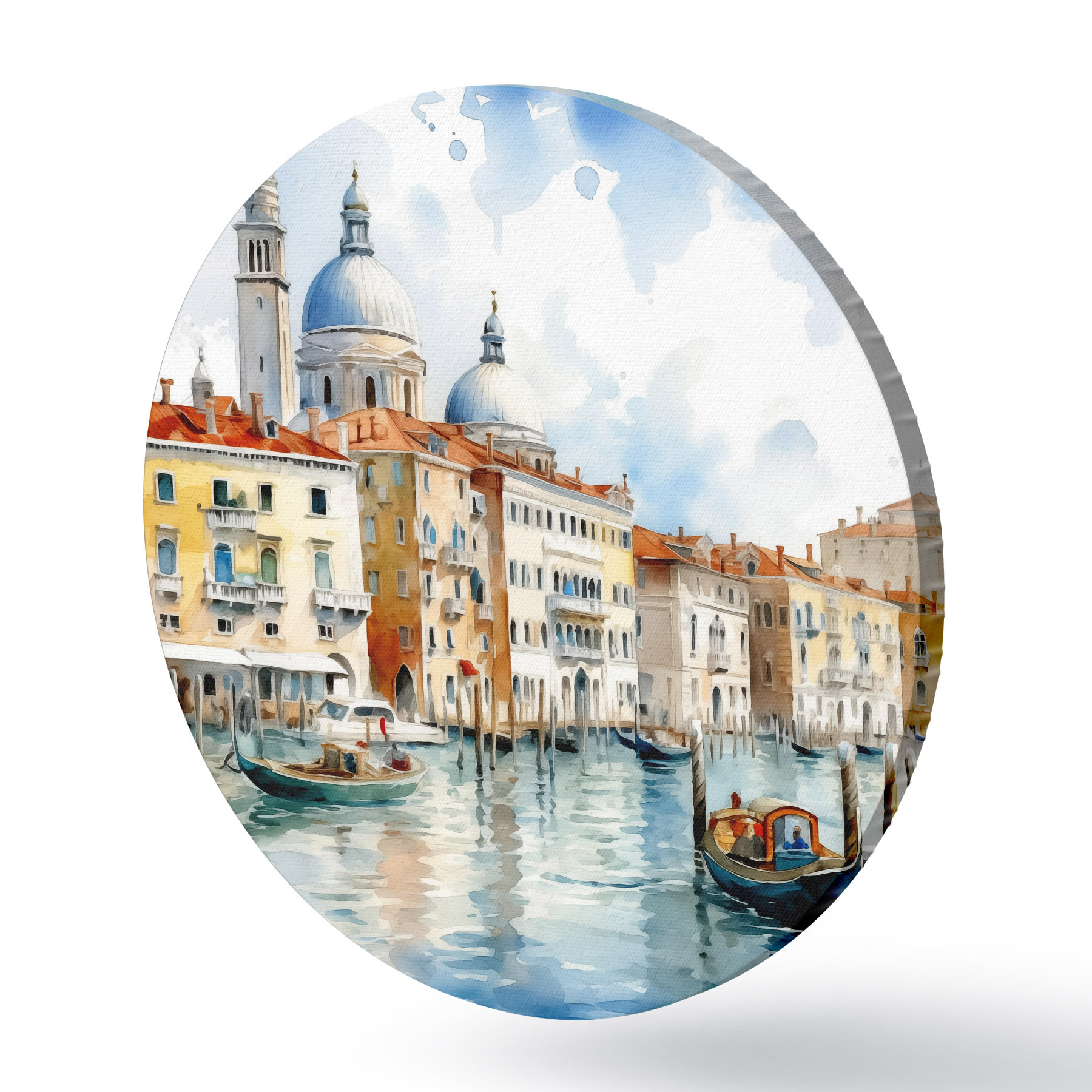 Cuadros redondos Paisaje acuarela Venecia, bahía, río, arquitectura, paisaje, barcos, góndola r38908