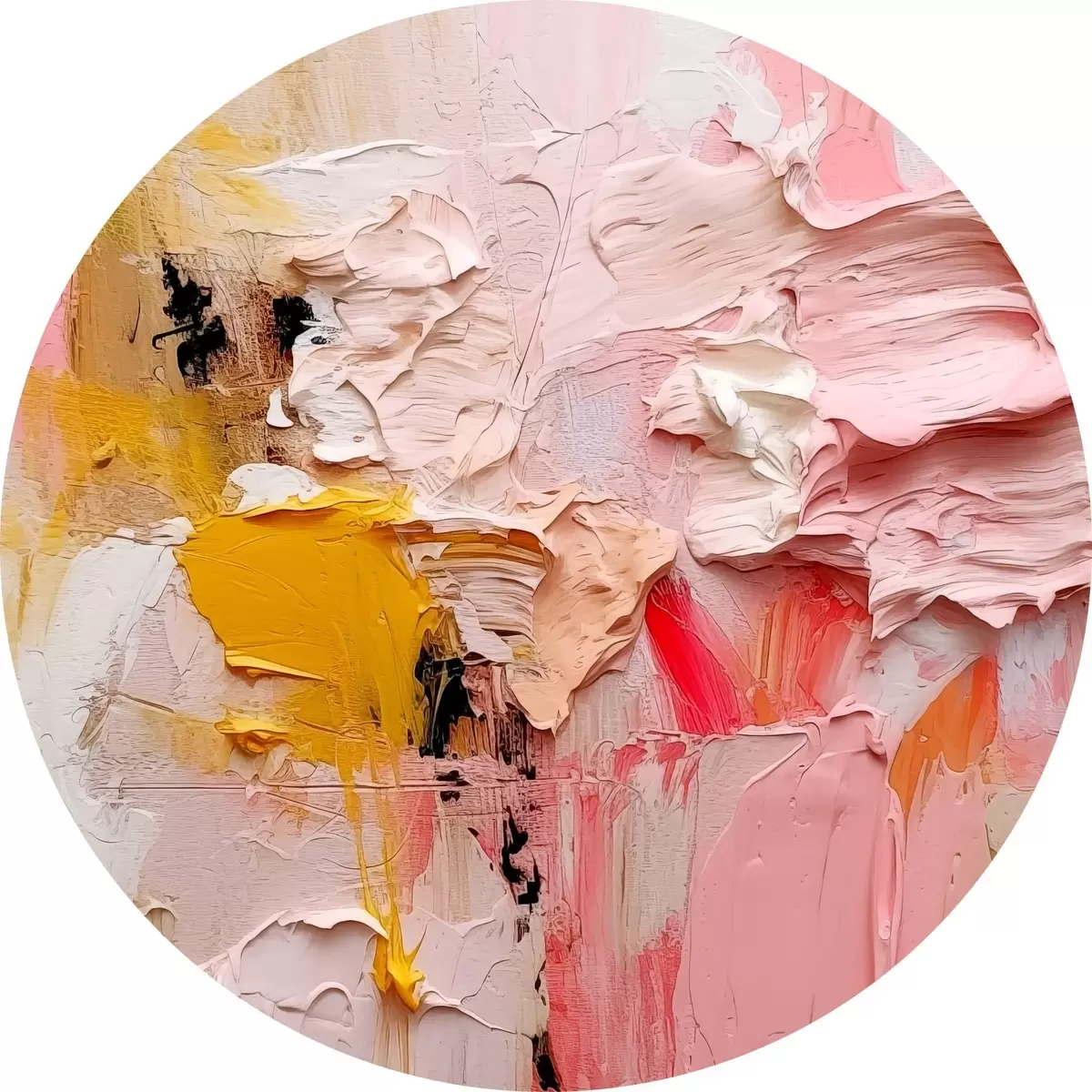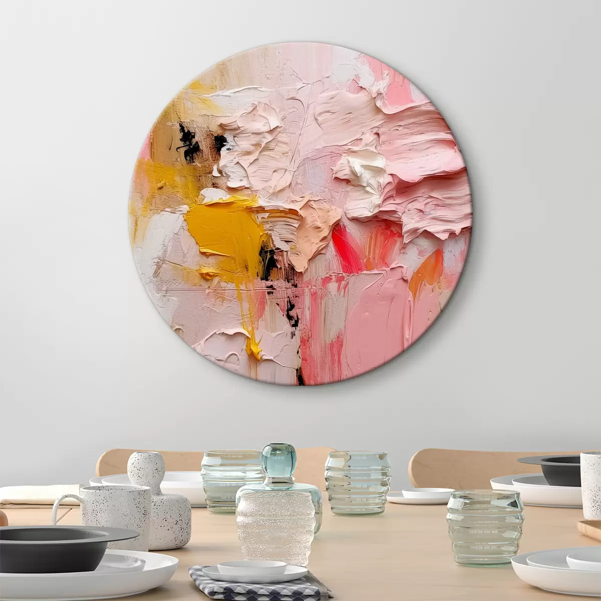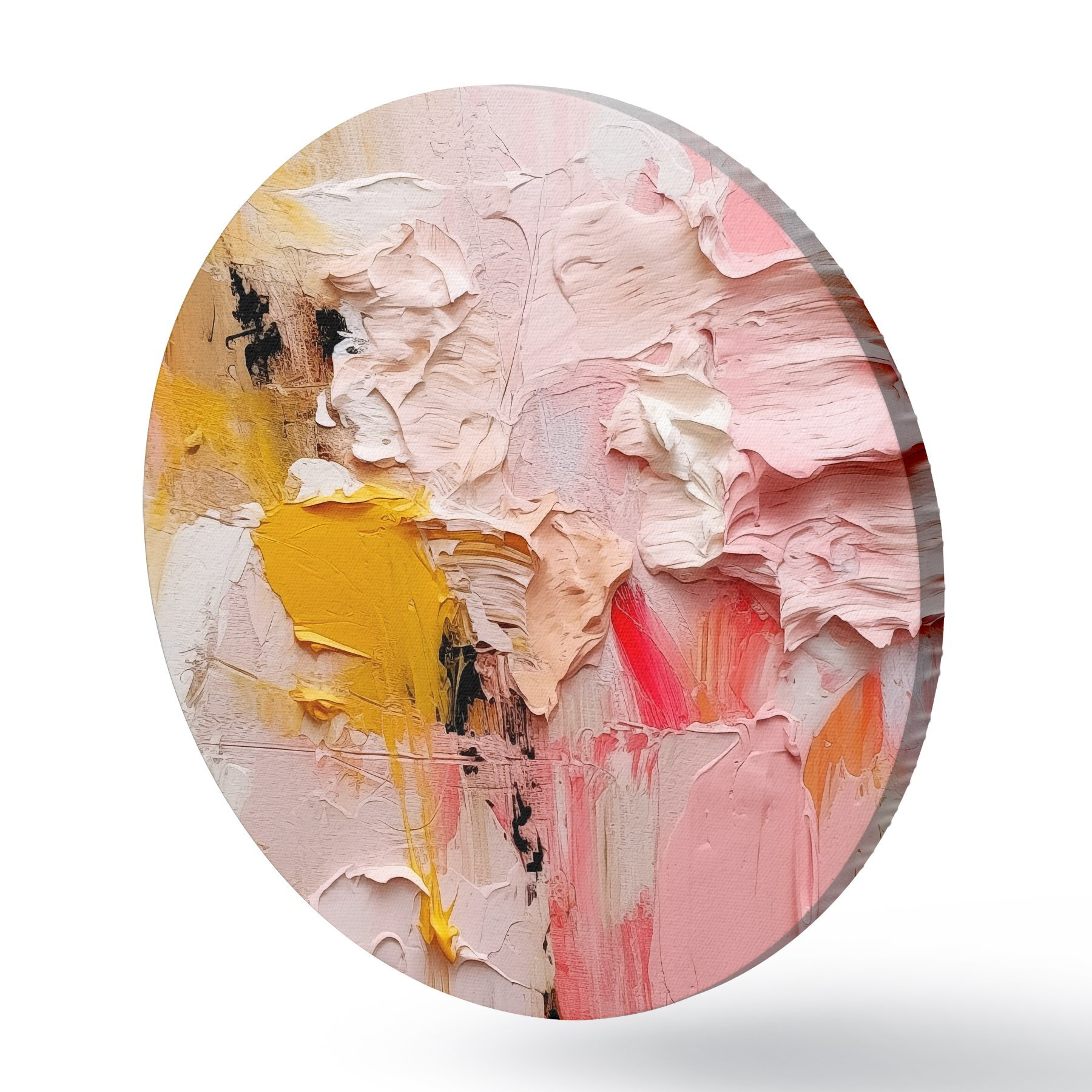 Cuadros redondos Expresionismo abstracto de grandes pinceladas en rosa, amarillo y blanco r38916