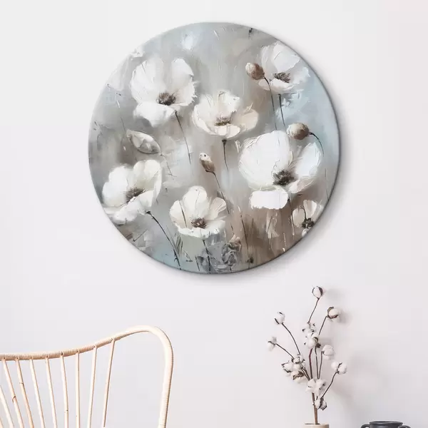 Cuadros redondos Textura impresa de planta de flores silvestres blancas r38925