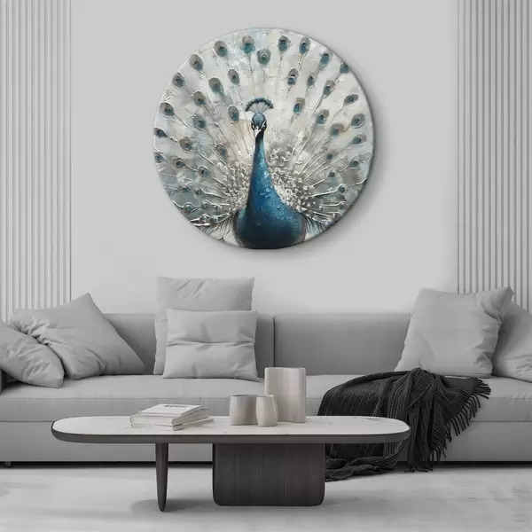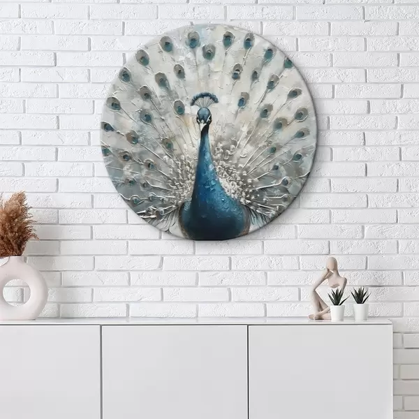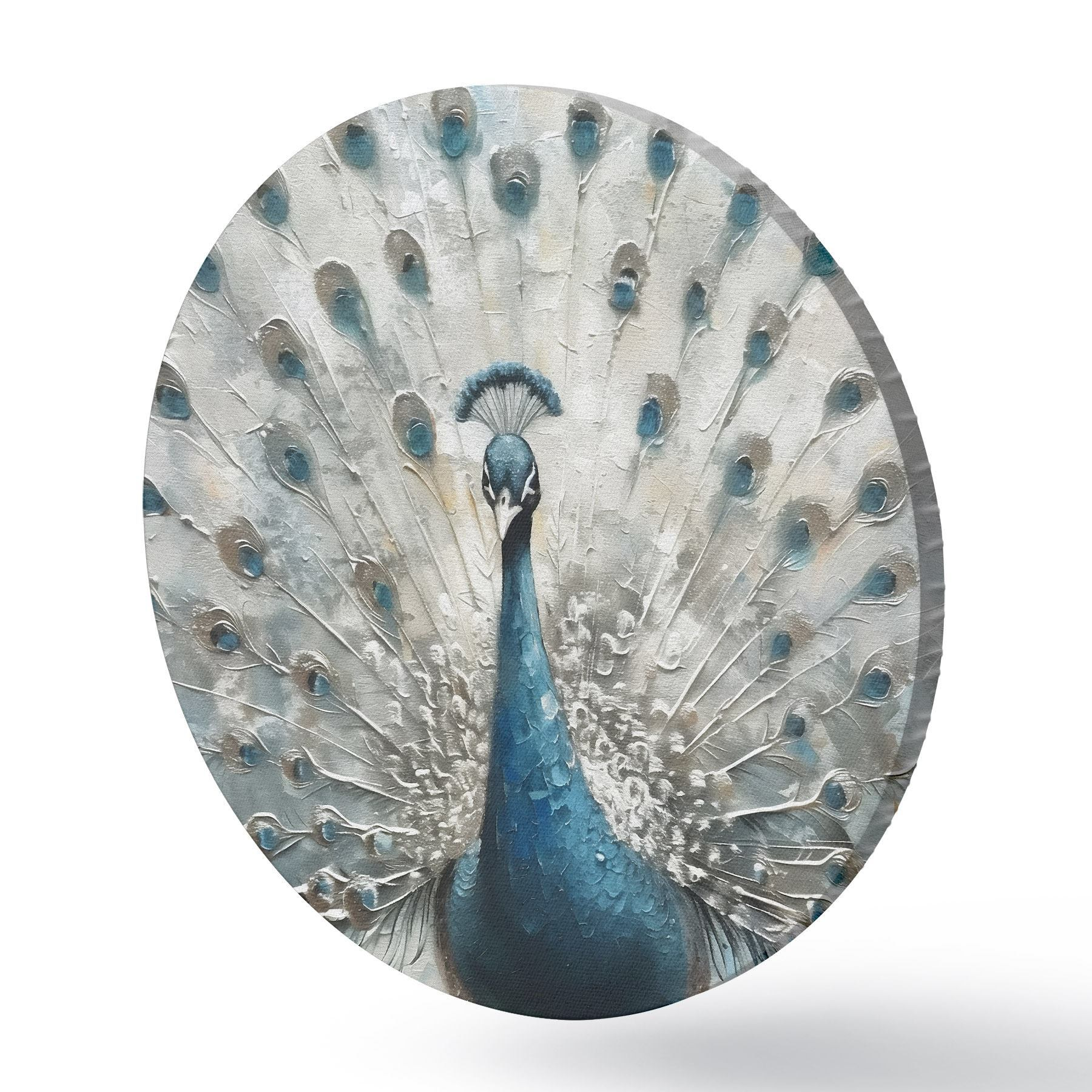 Cuadros redondos Pájaro pavo real azul con textura impresa de plumas r38931