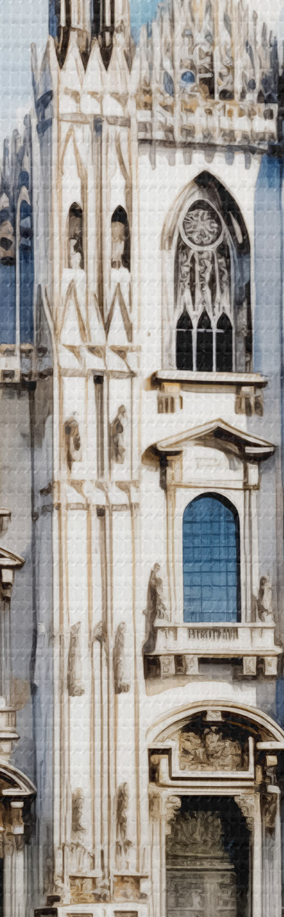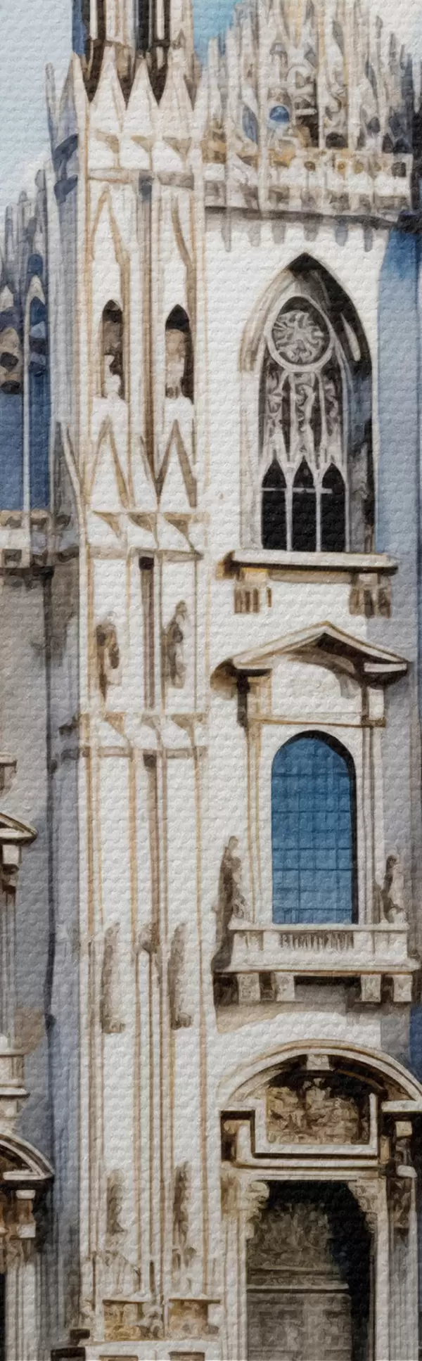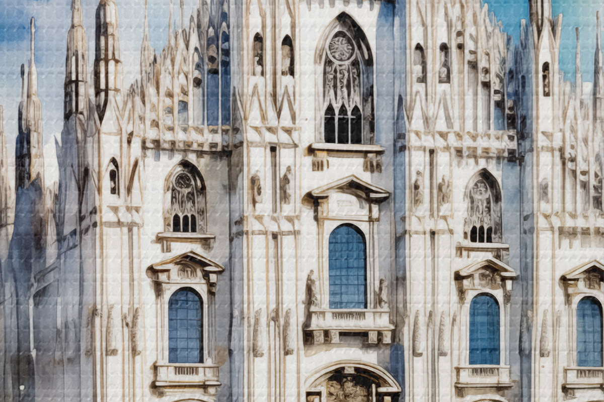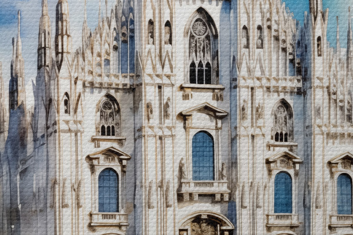 Foto Catedral del Duomo en Milán, arquitectura, ciudad, lluvia, acuarela, azul, gris, gente caminando Nr r38938