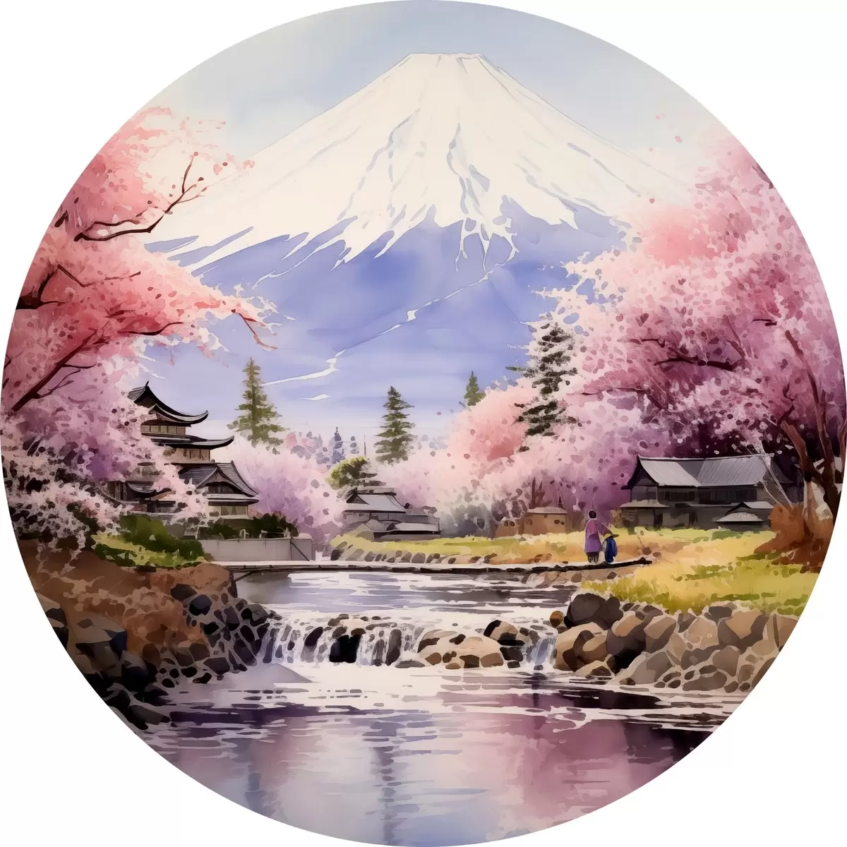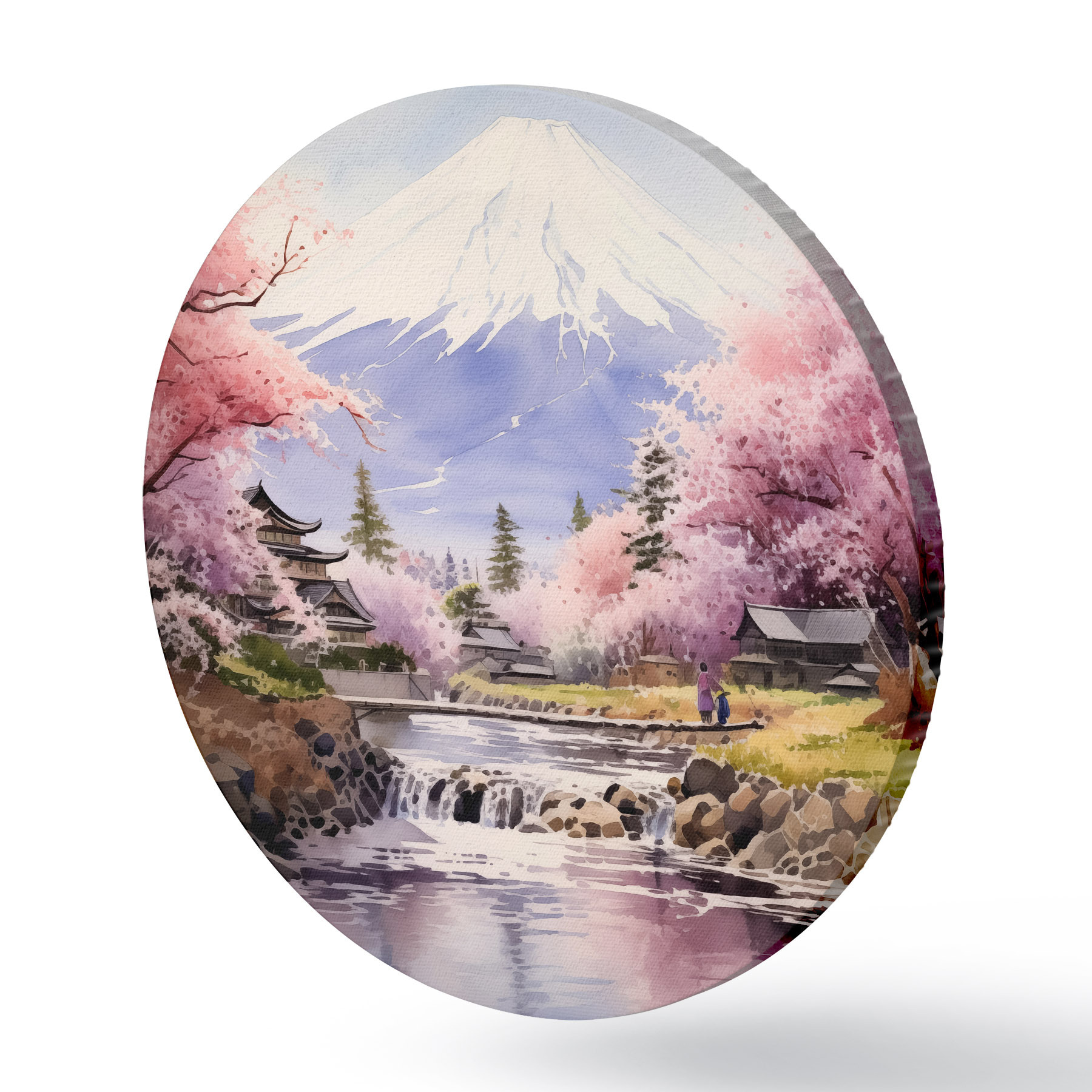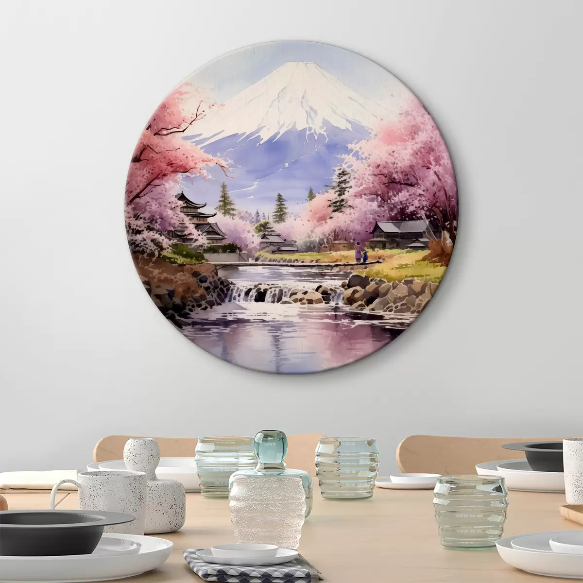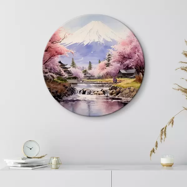 Cuadros redondos Las flores de sakura enmarcan el sereno Fuji r38948