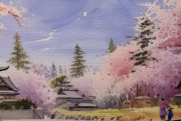 Foto Las flores de sakura enmarcan el sereno Fuji Nr r38948