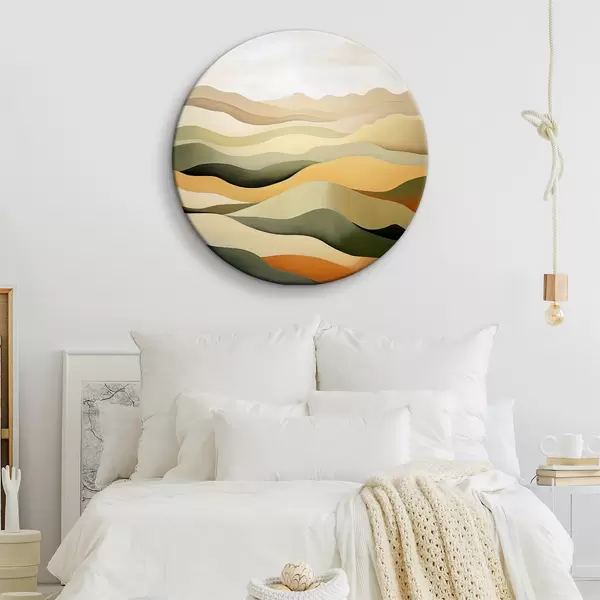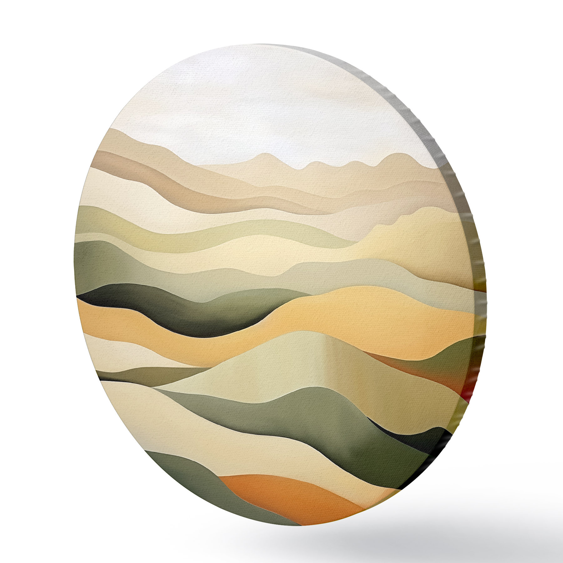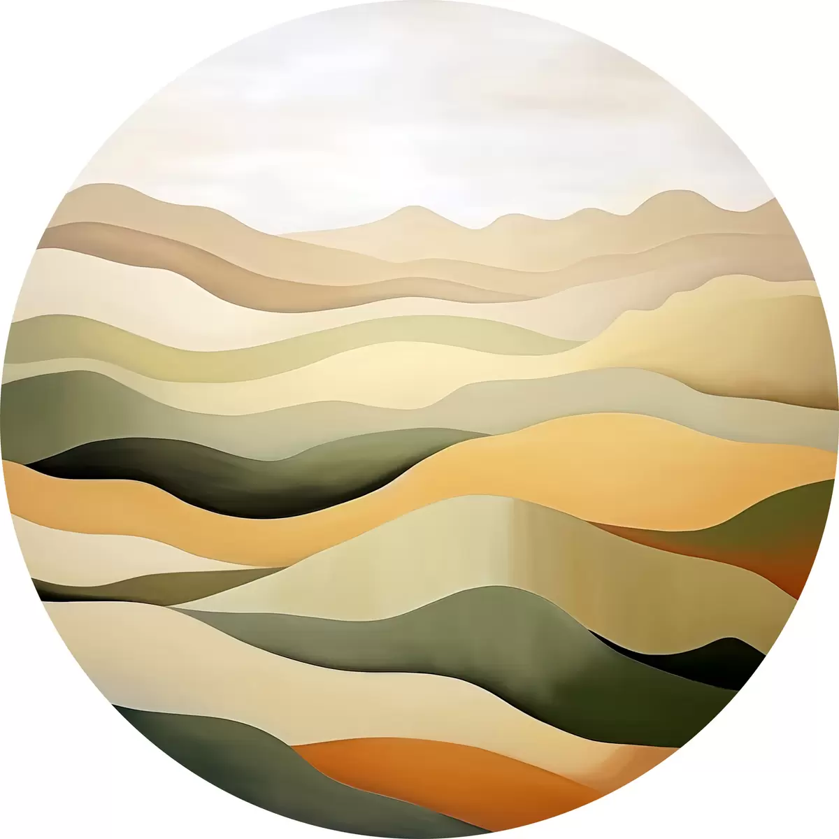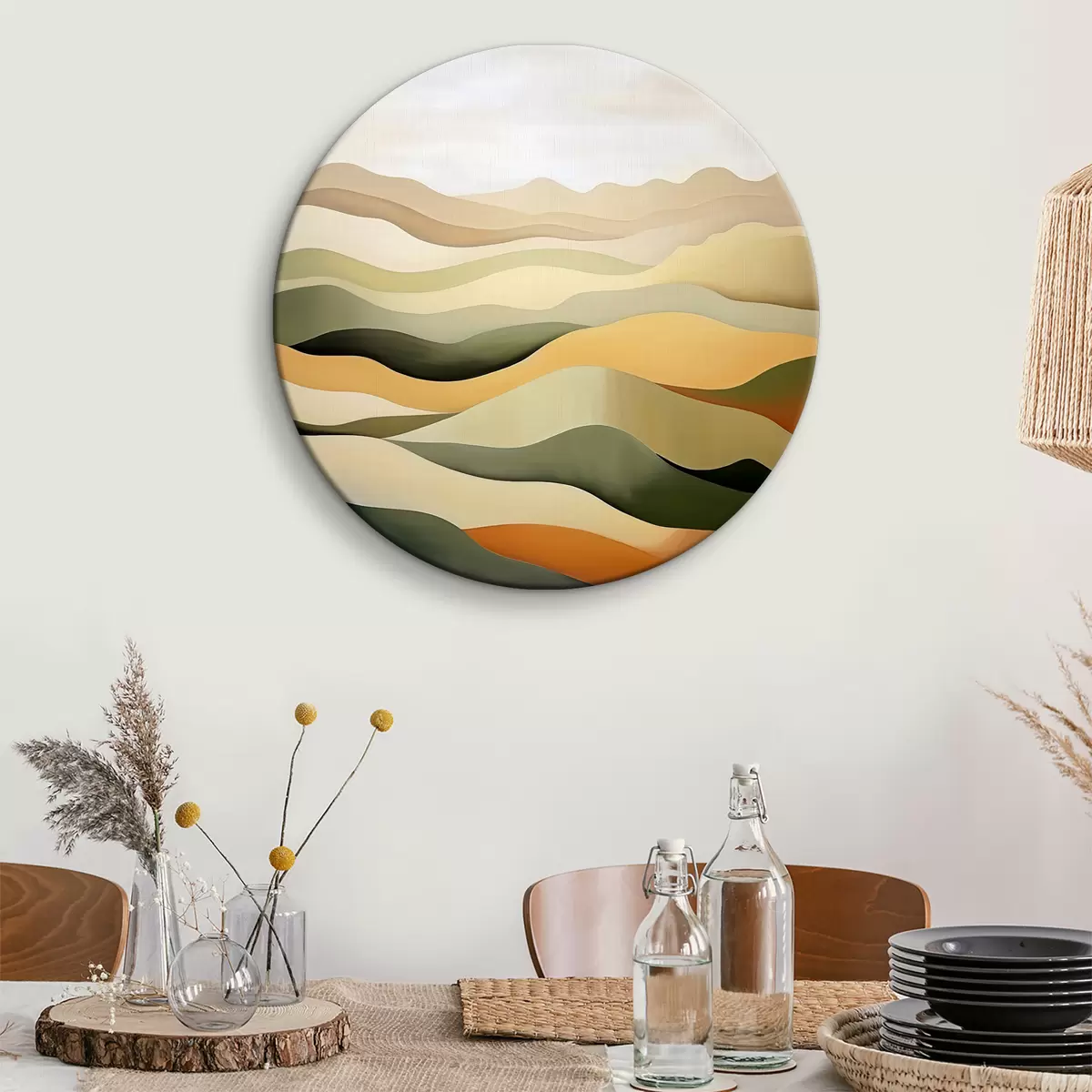 Cuadros redondos Colinas, paisaje abstracto, gouache, verde, ocre, sepia, gris r38952