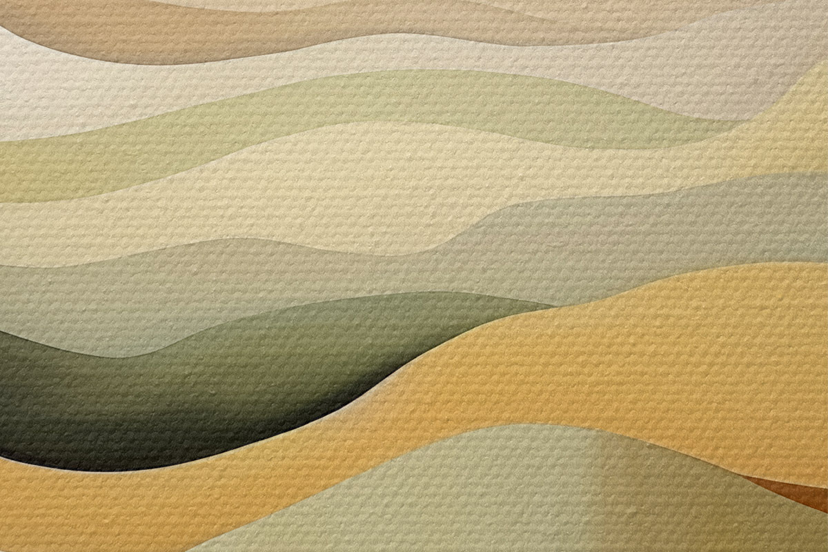 Foto Colinas, paisaje abstracto, gouache, verde, ocre, sepia, gris Nr r38952