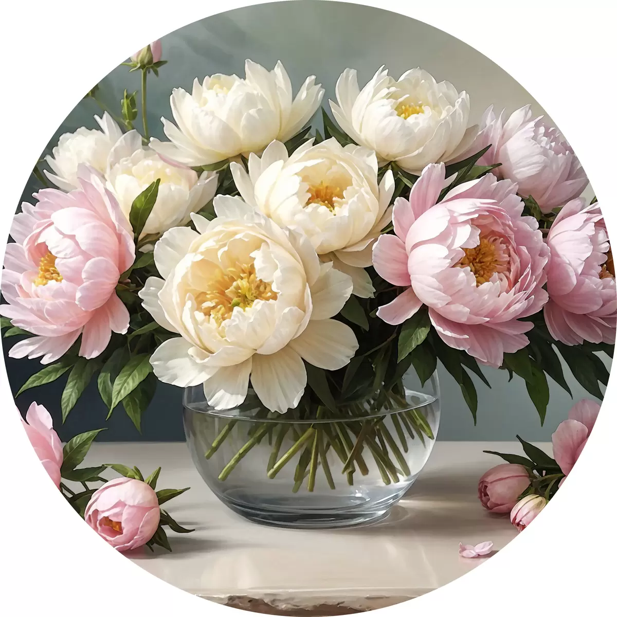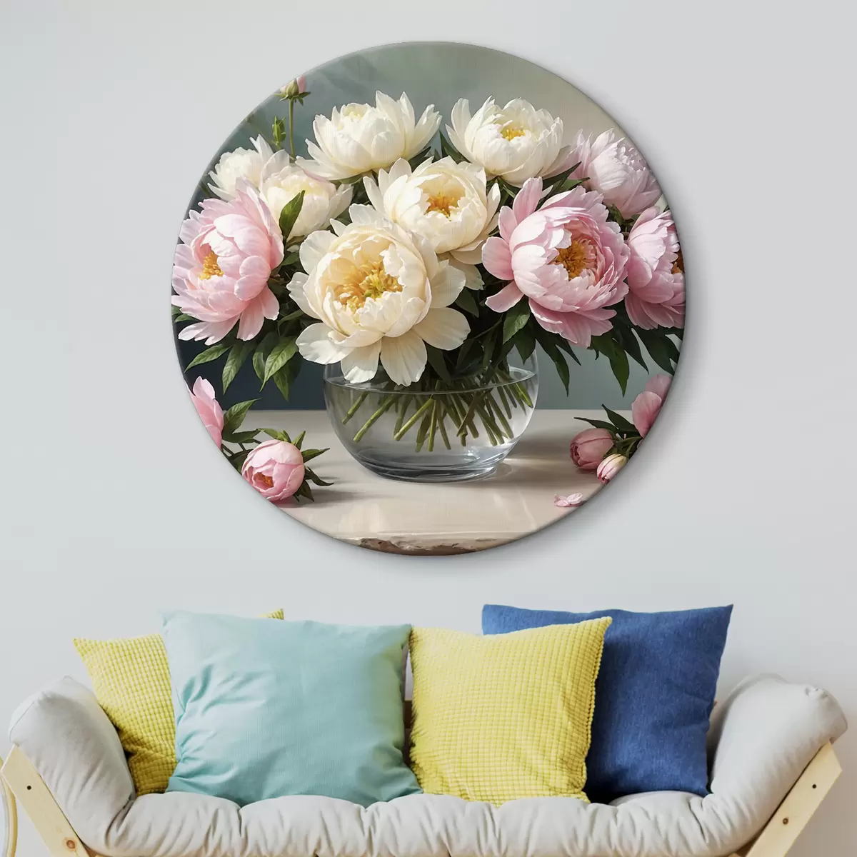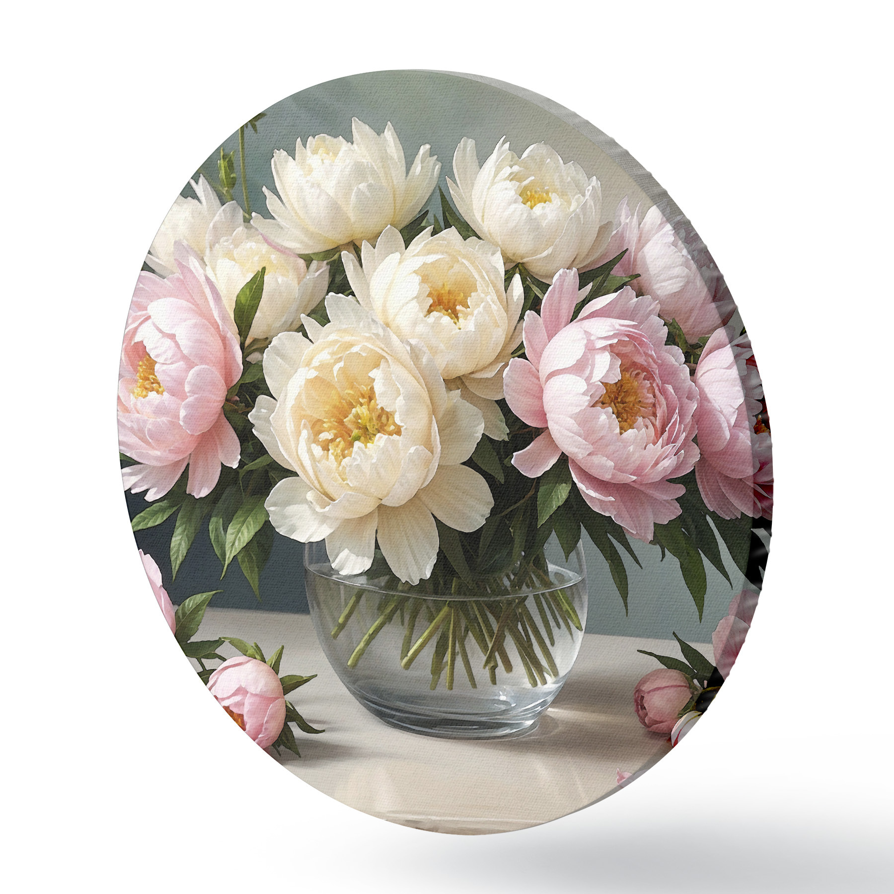 Cuadros redondos Jarrón con peonías blancas y rosas r38967
