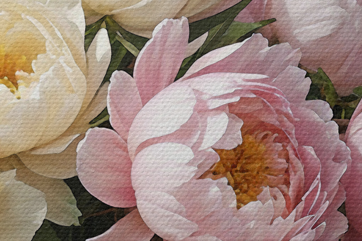 Hay tres tipos de material disponibles para pedidos: Lienzo Económico - material denso y duradero para impresión digital, idéntico al lienzo de pintor, superficie impermeable, reproducción realista de los detalles, material de grano medio. Lienzo Premium - la textura se asemeja a la de un lienzo de pintor (pequeños hilos entrelazados). Reproducción suave y detallada de la imagen sobre una superficie mate. Eco-Premium - tejido 100% algodón de alta calidad. Gracias a las fibras naturales de algodón, el material es duradero y resistente al desgaste. Excelente reproducción del color y el detalle.