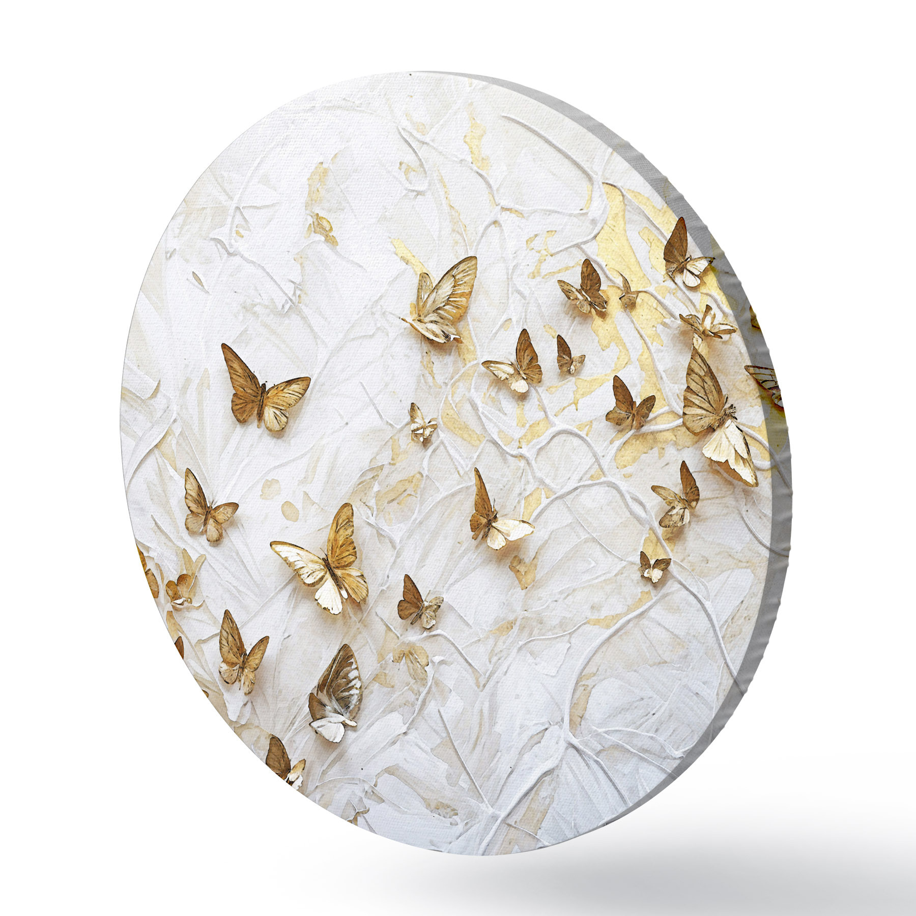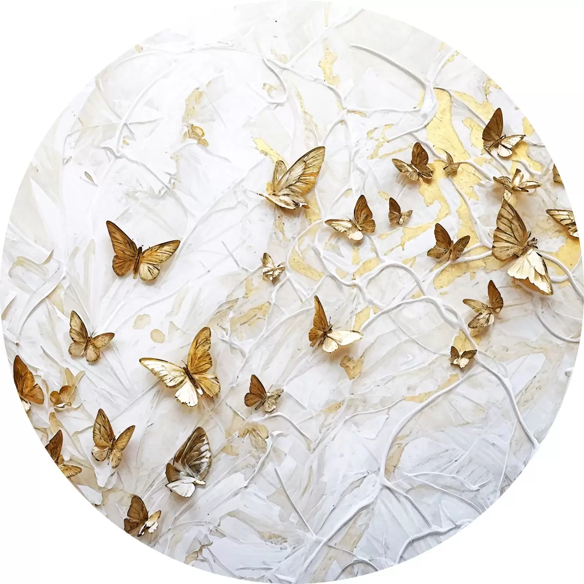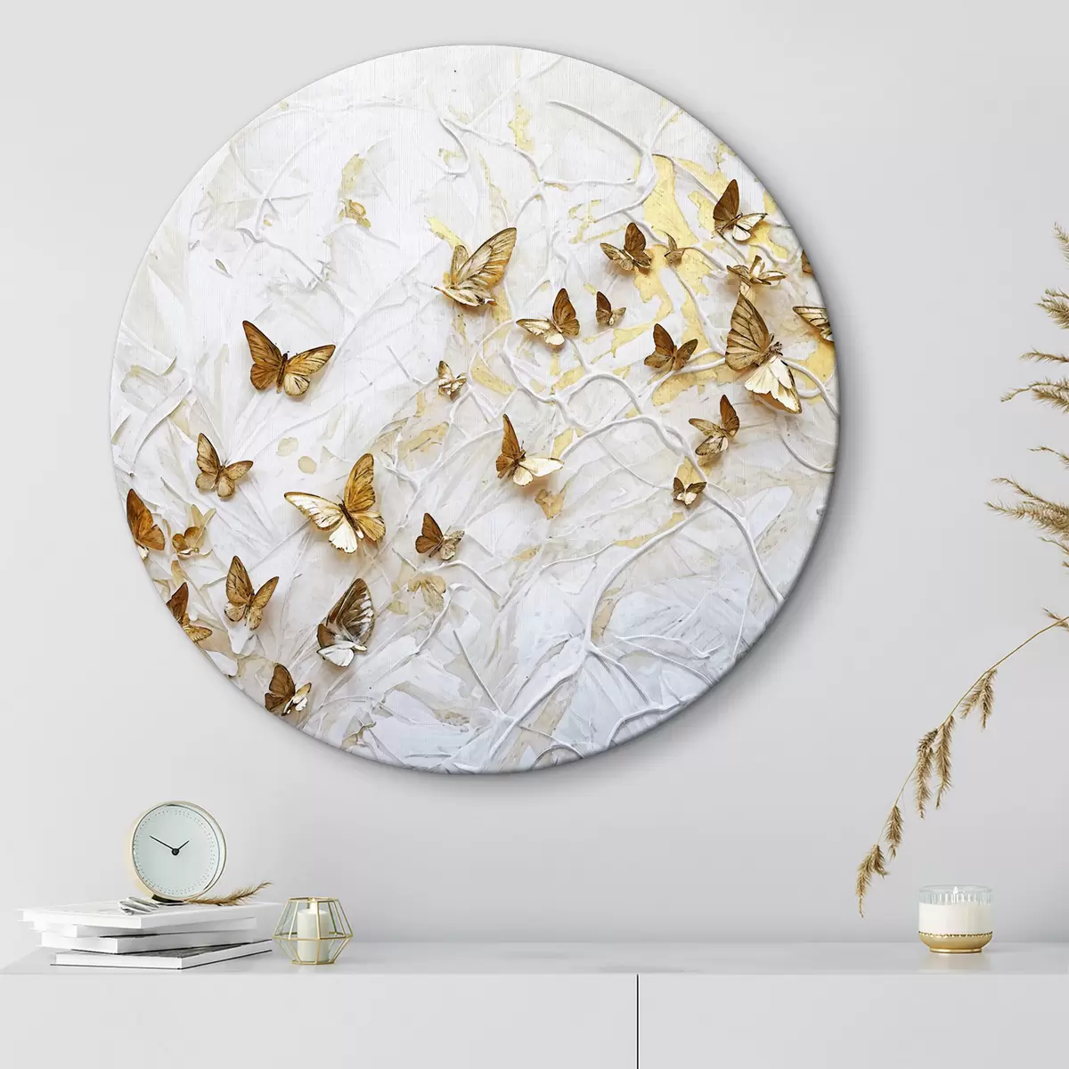 Cuadros redondos Un gran grupo de mariposas sobre fondo blanco, creando un bello e intrincado dibujo r38970