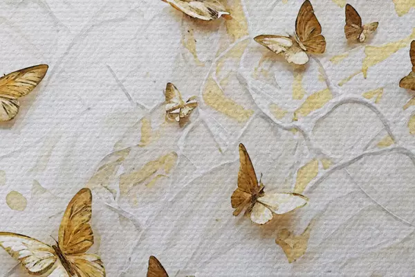 Foto Un gran grupo de mariposas sobre fondo blanco, creando un bello e intrincado dibujo Nr r38970