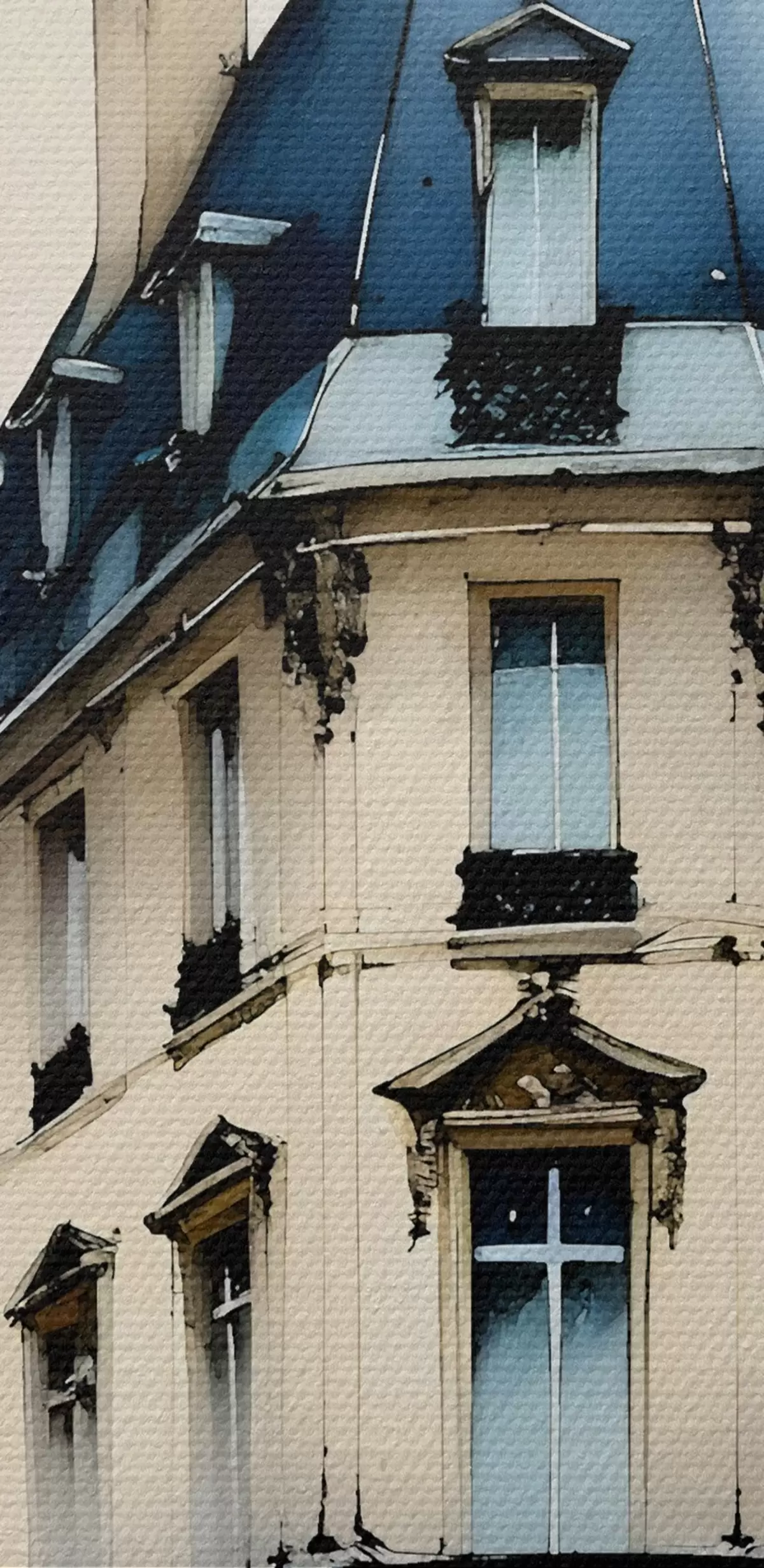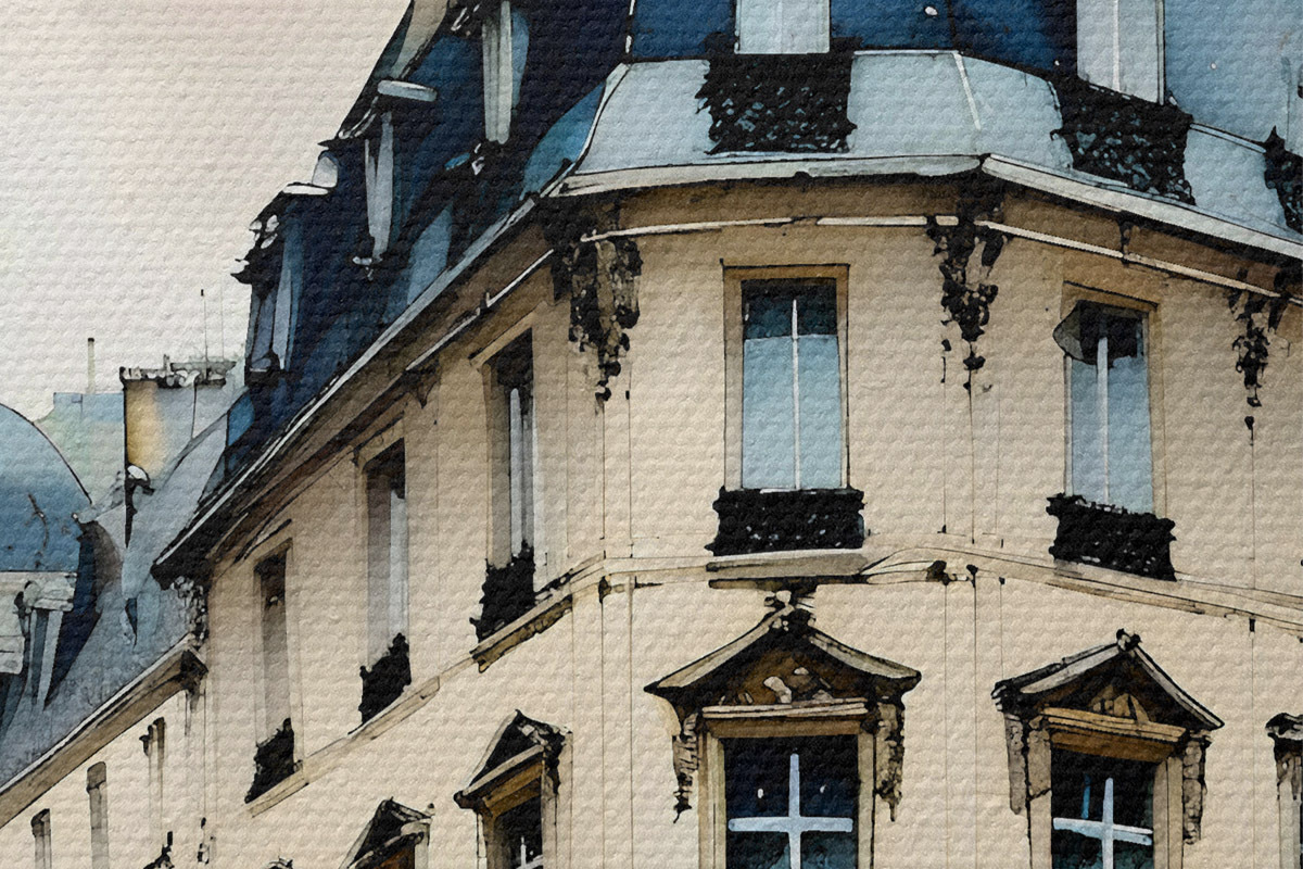 Foto Pintura acuarela de un edificio histórico con fachada curva y elementos arquitectónicos decorativos Nr r38975