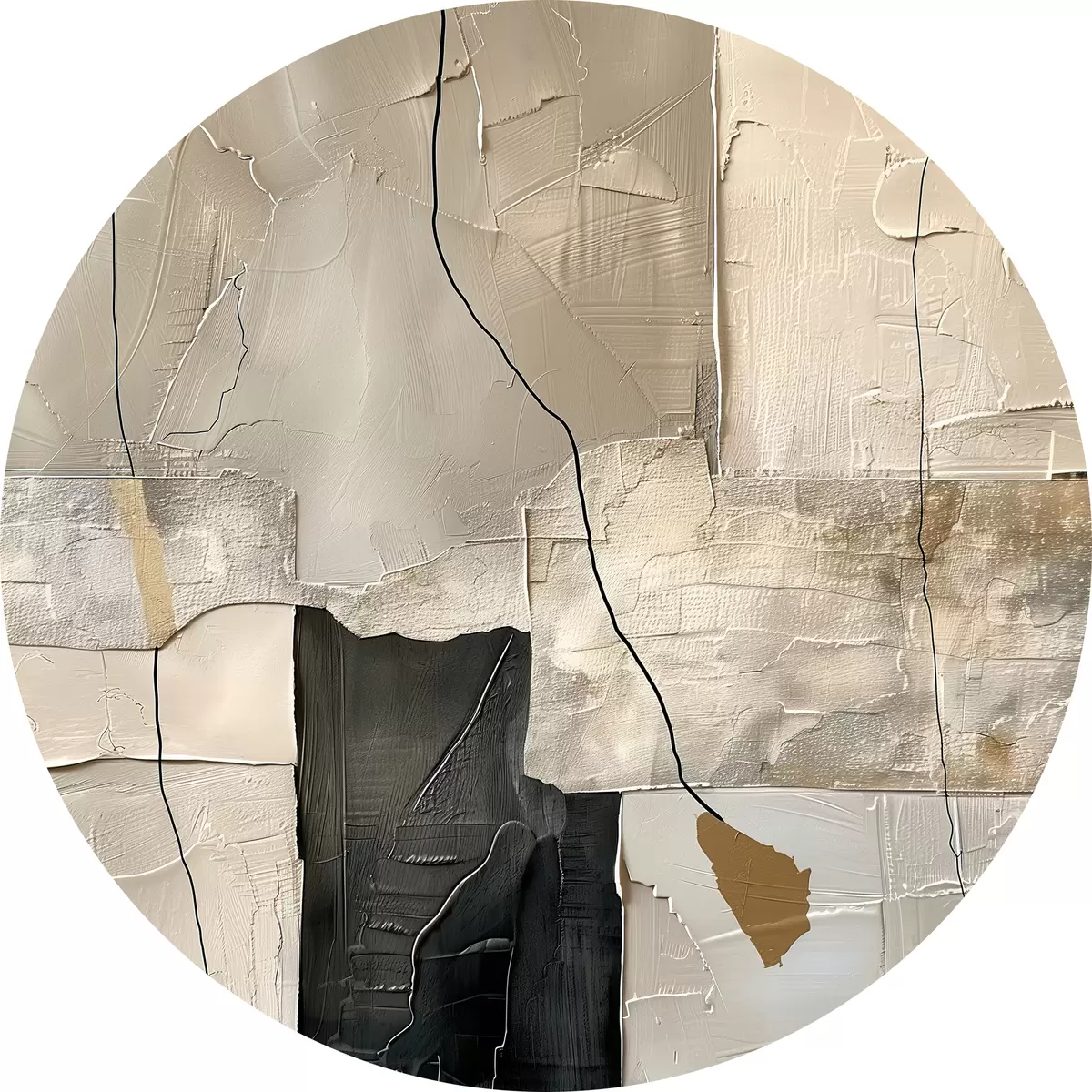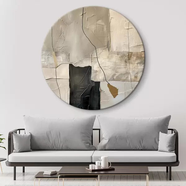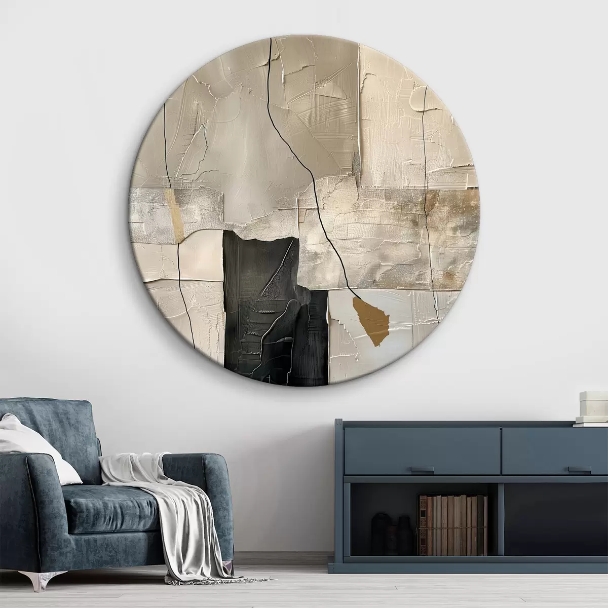 Cuadros redondos Abstracción geométrica en beige y negro r39016
