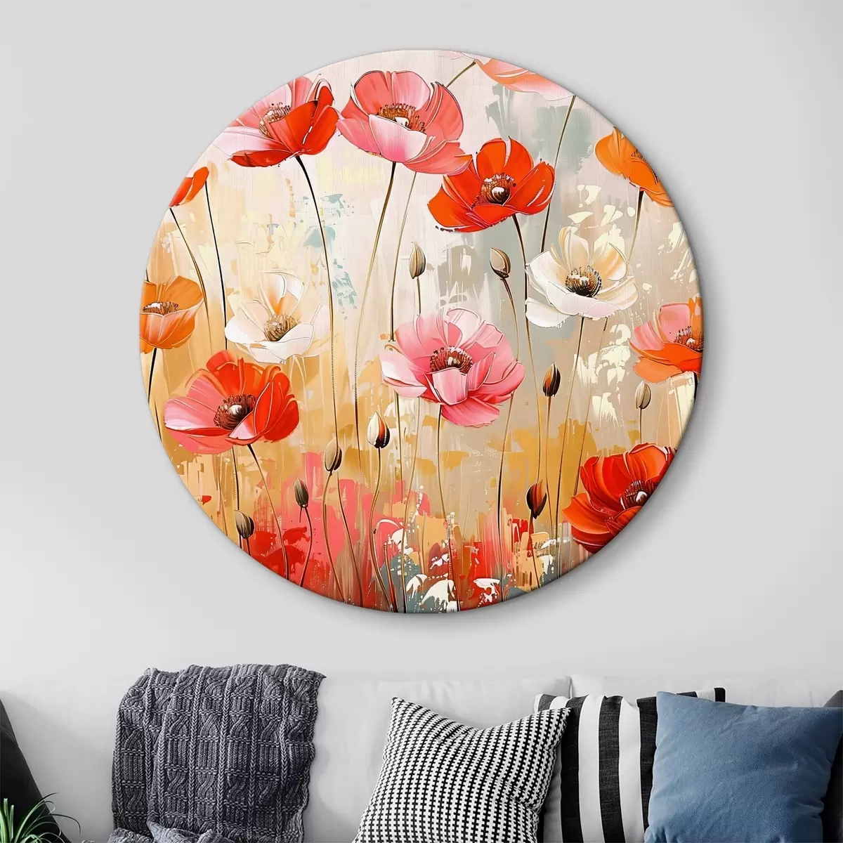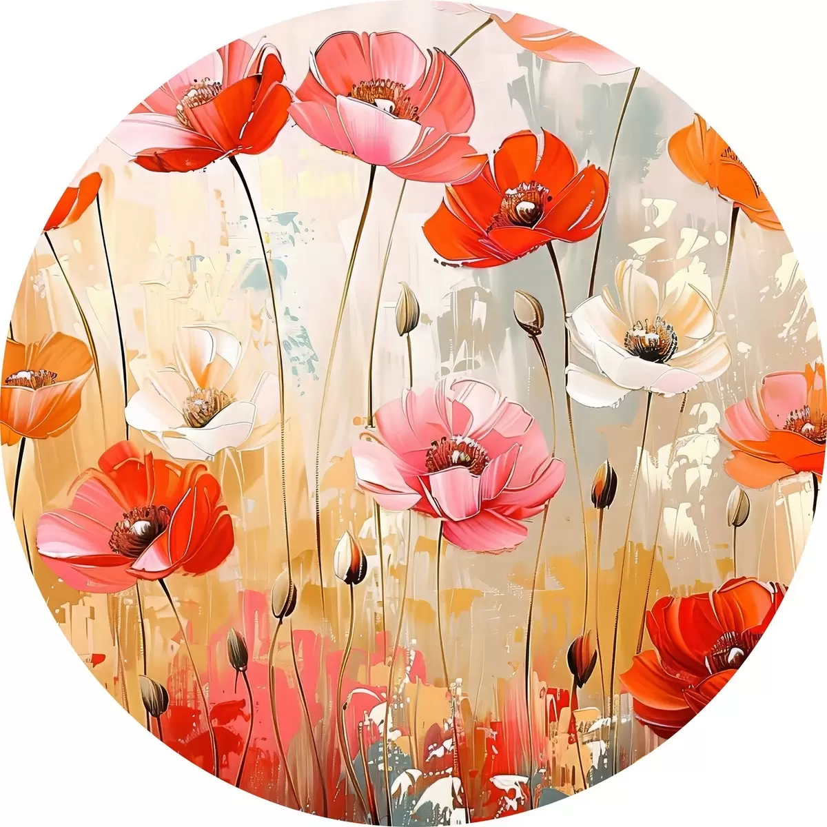 Cuadros redondos amapolas en el campo r39048