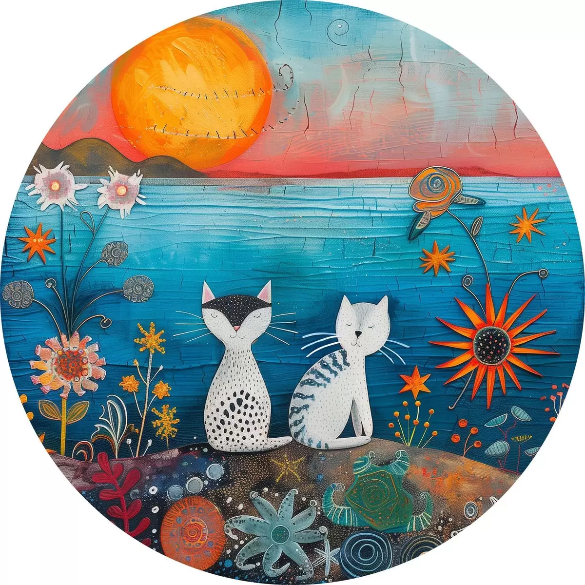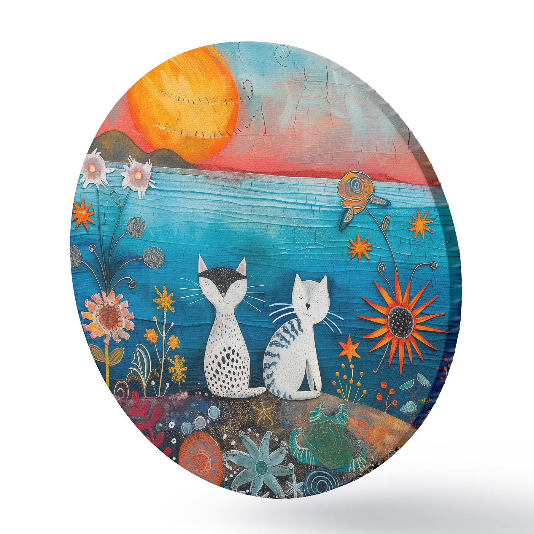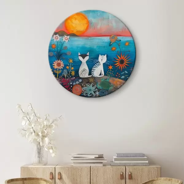 Cuadros redondos Dos gatos mirando el amanecer r39085