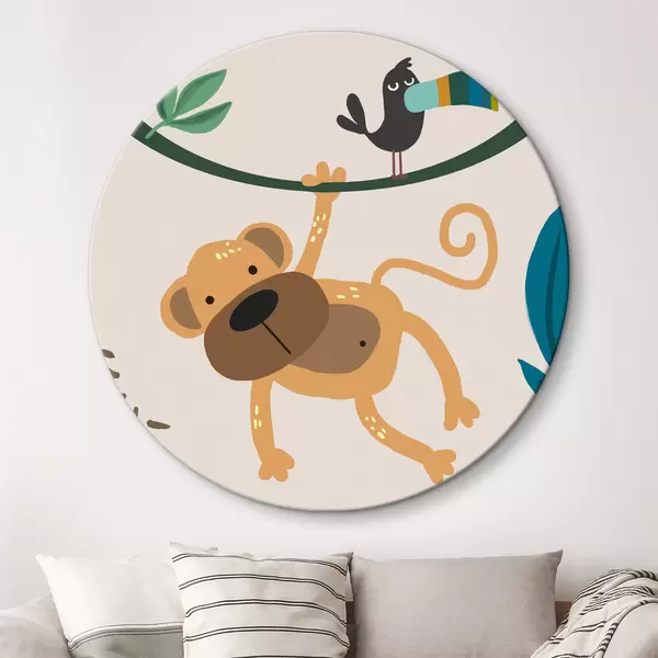 Cuadros redondos Mono en la jungla al estilo safari, boho r39094