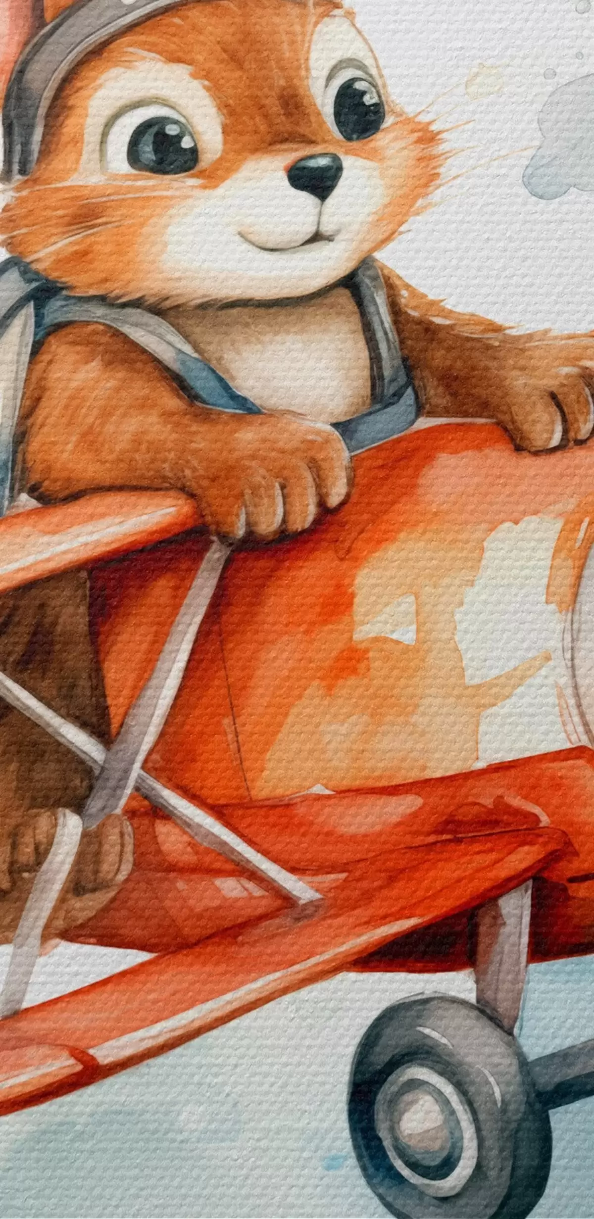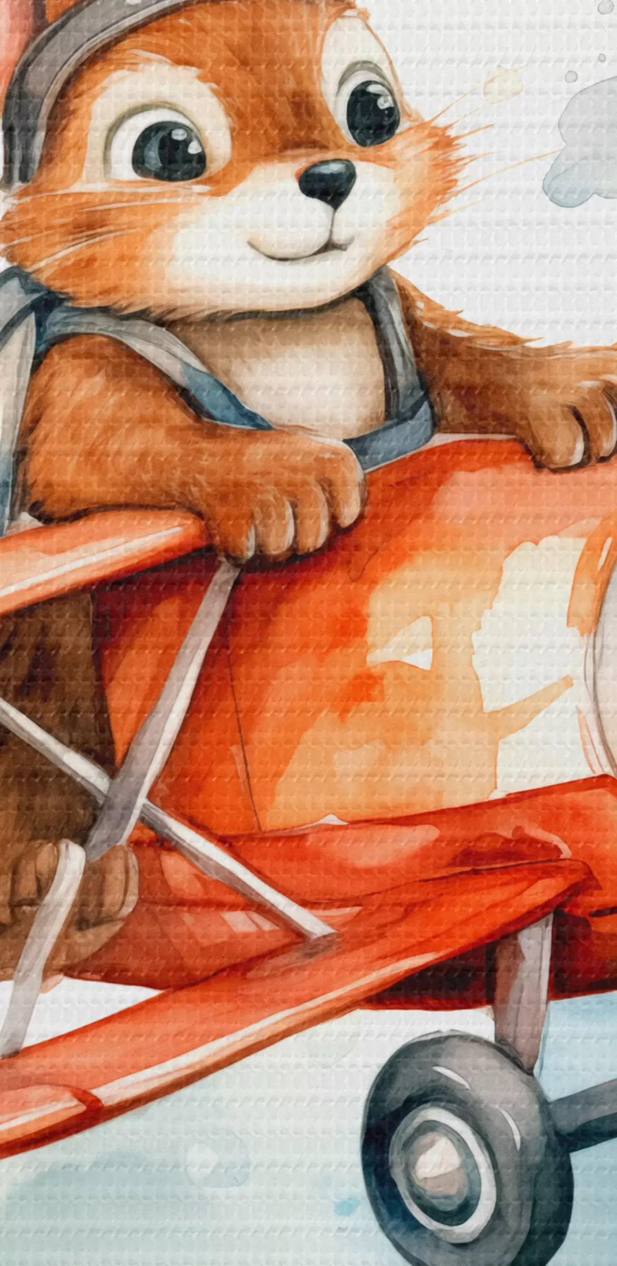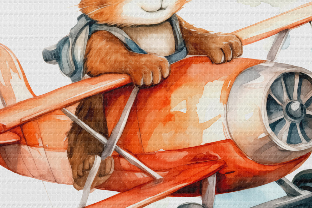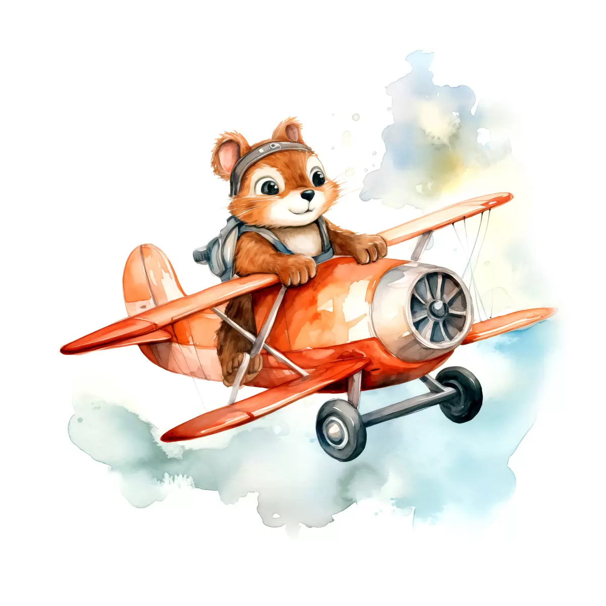 Foto Ardilla bebé vuela en un avión rojo ilustración infantil acuarela Nr r39116