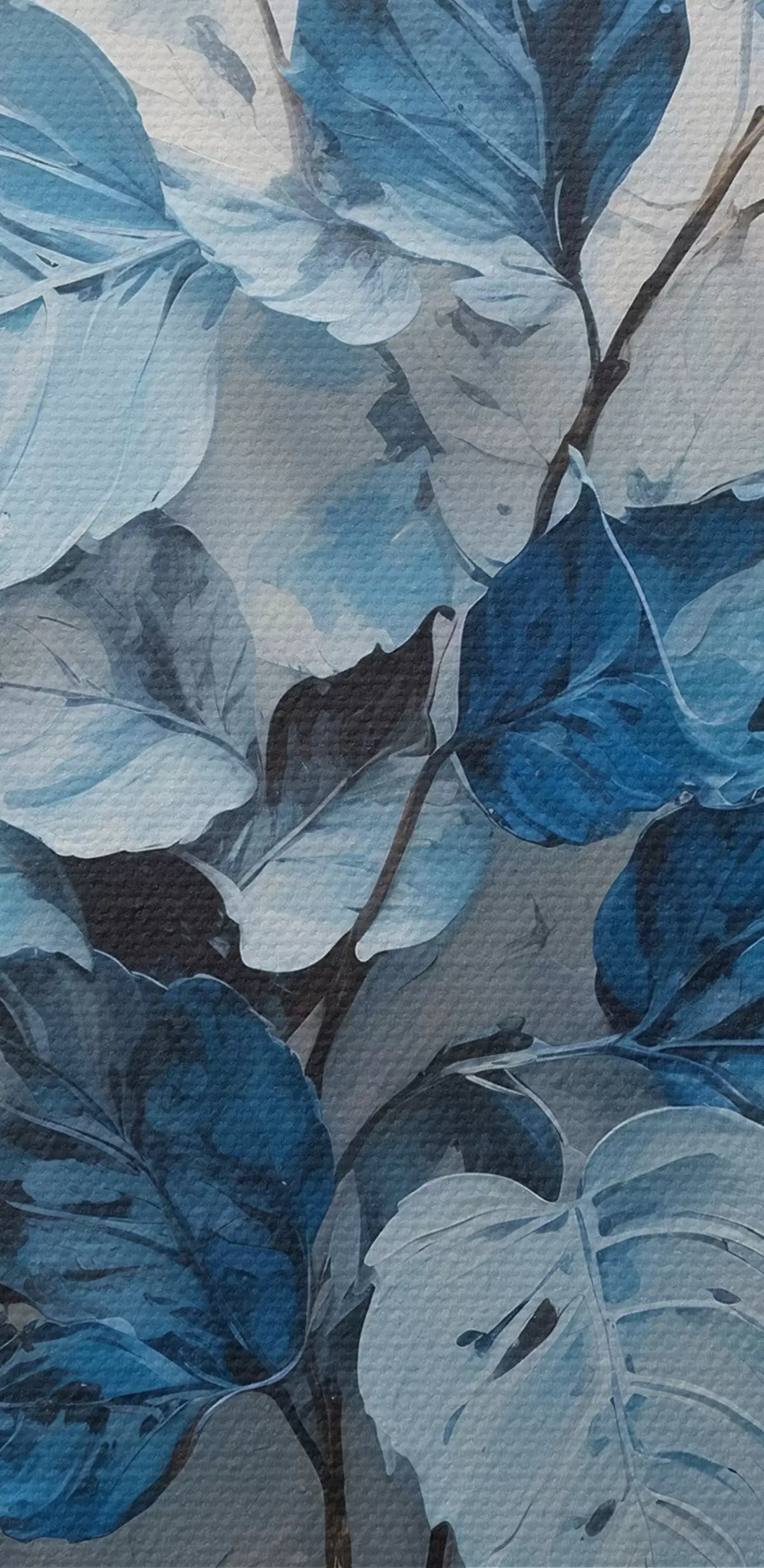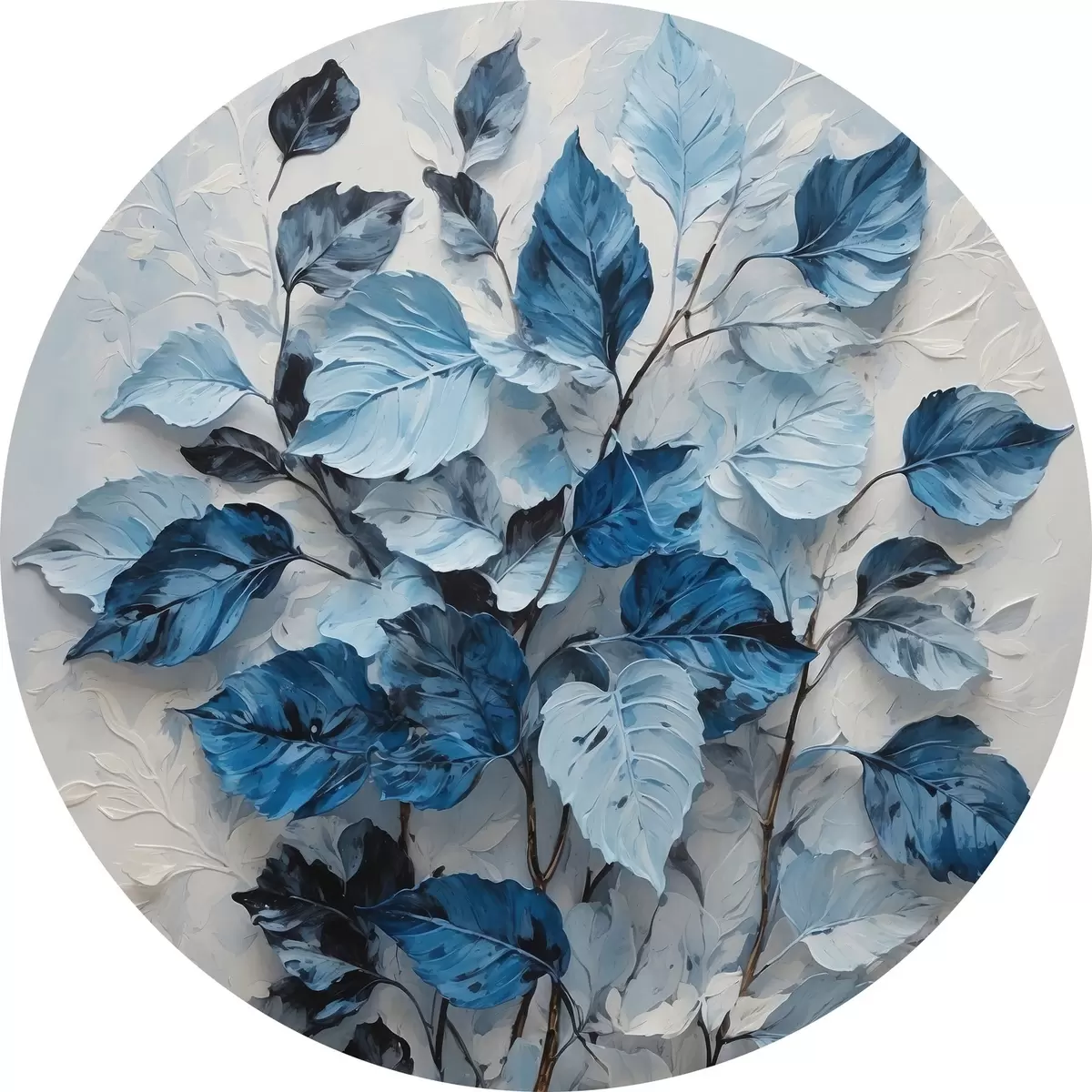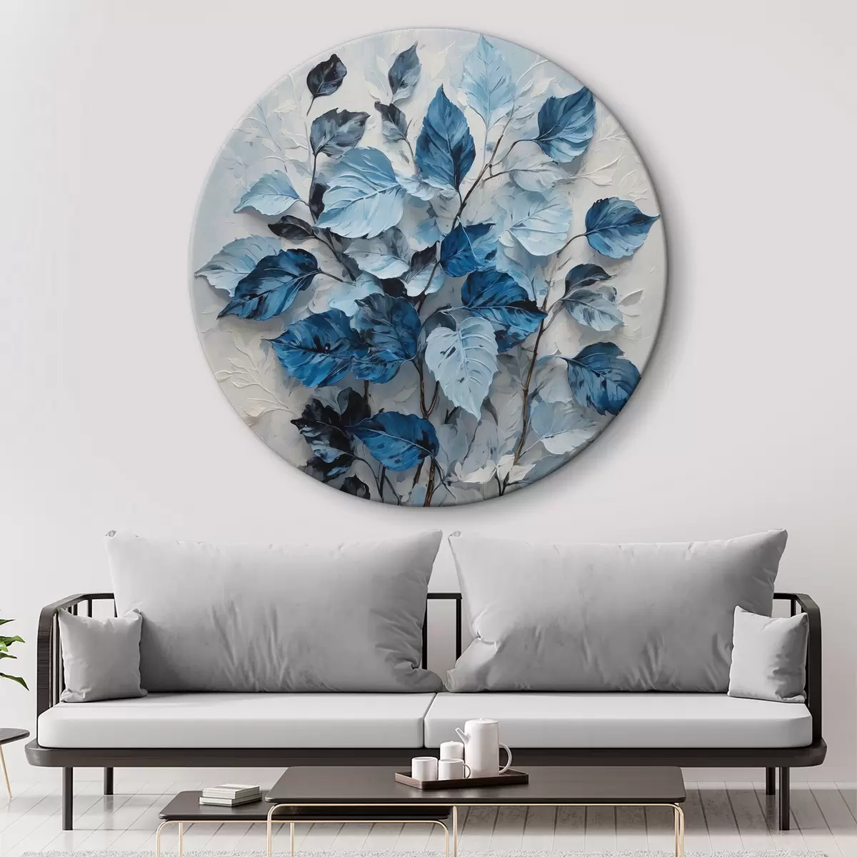 Cuadros redondos Planta con hojas blancas y azules r39156