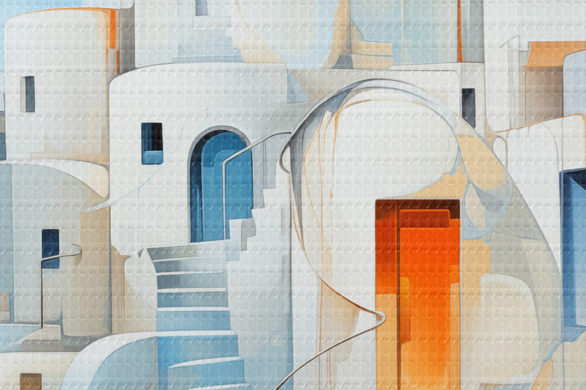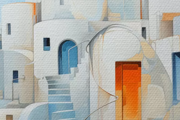 Foto Ciudad blanca abstracta junto al mar, arquitectura, edificio, color azul Nr r39188