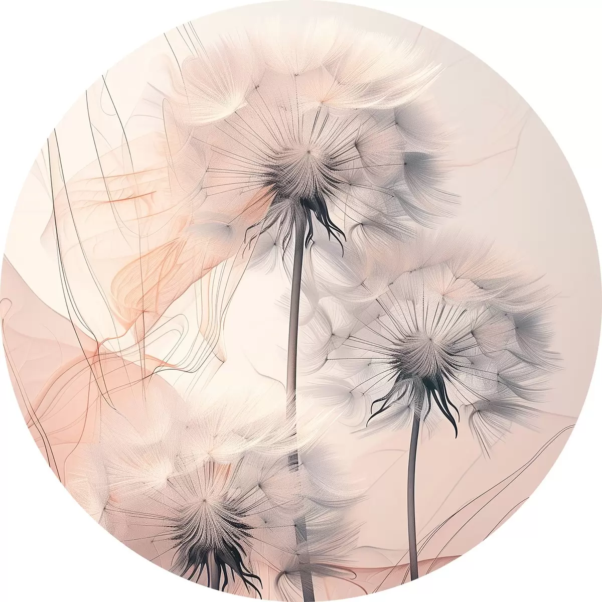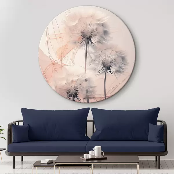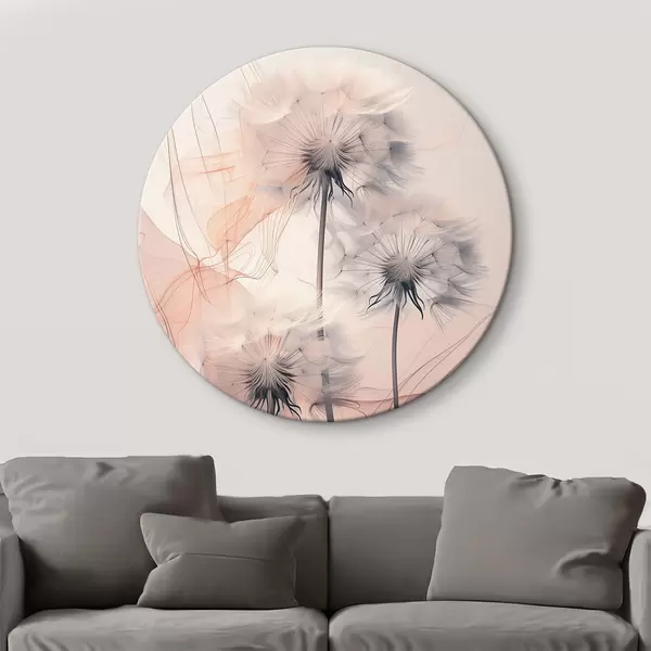 Cuadros redondos Dientes de león delicados sobre un fondo abstracto r39199