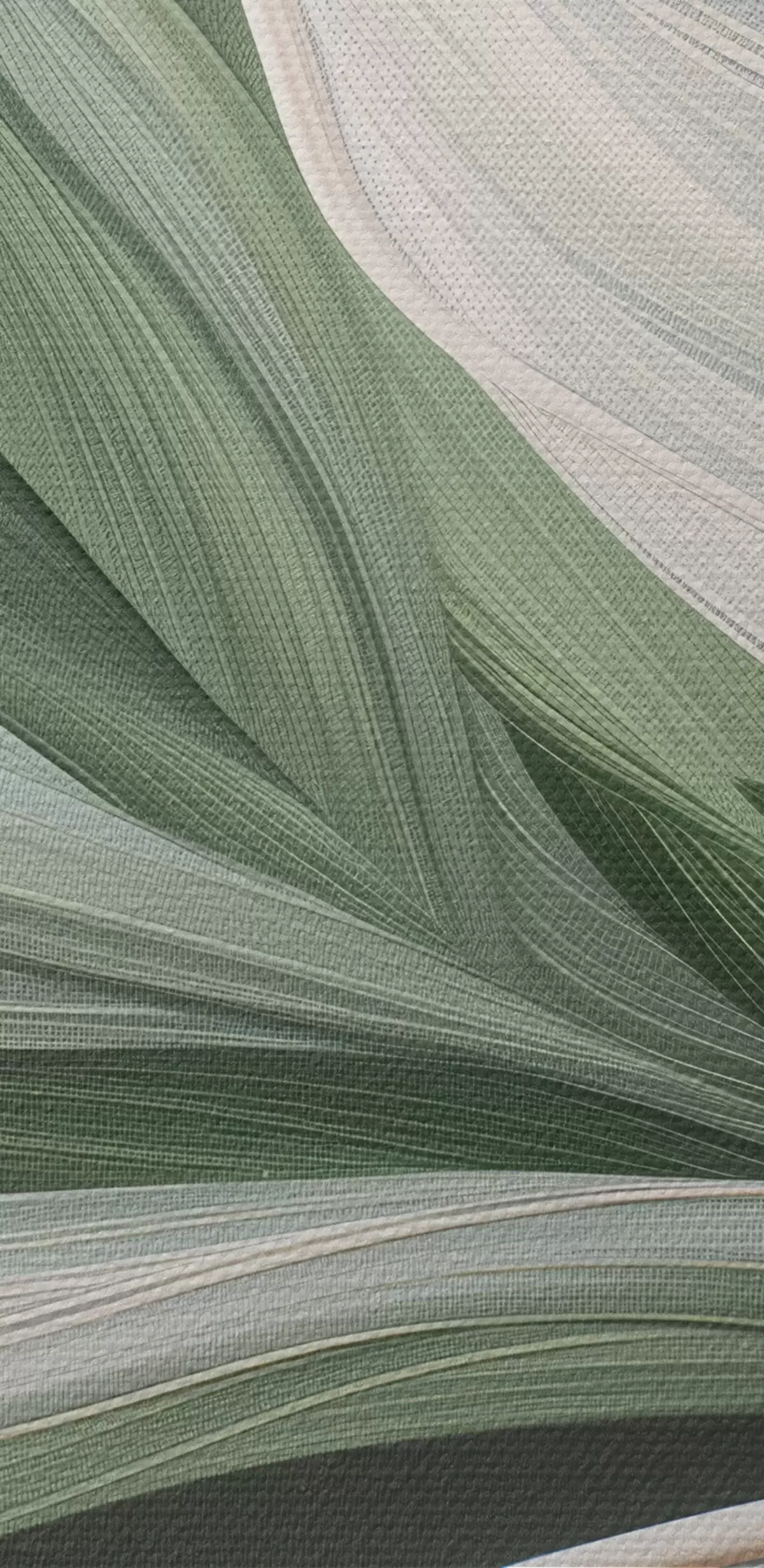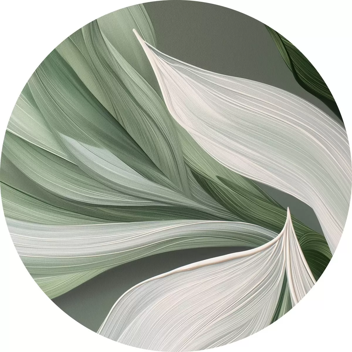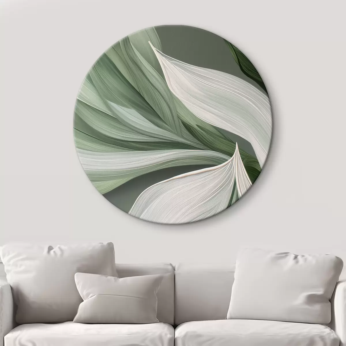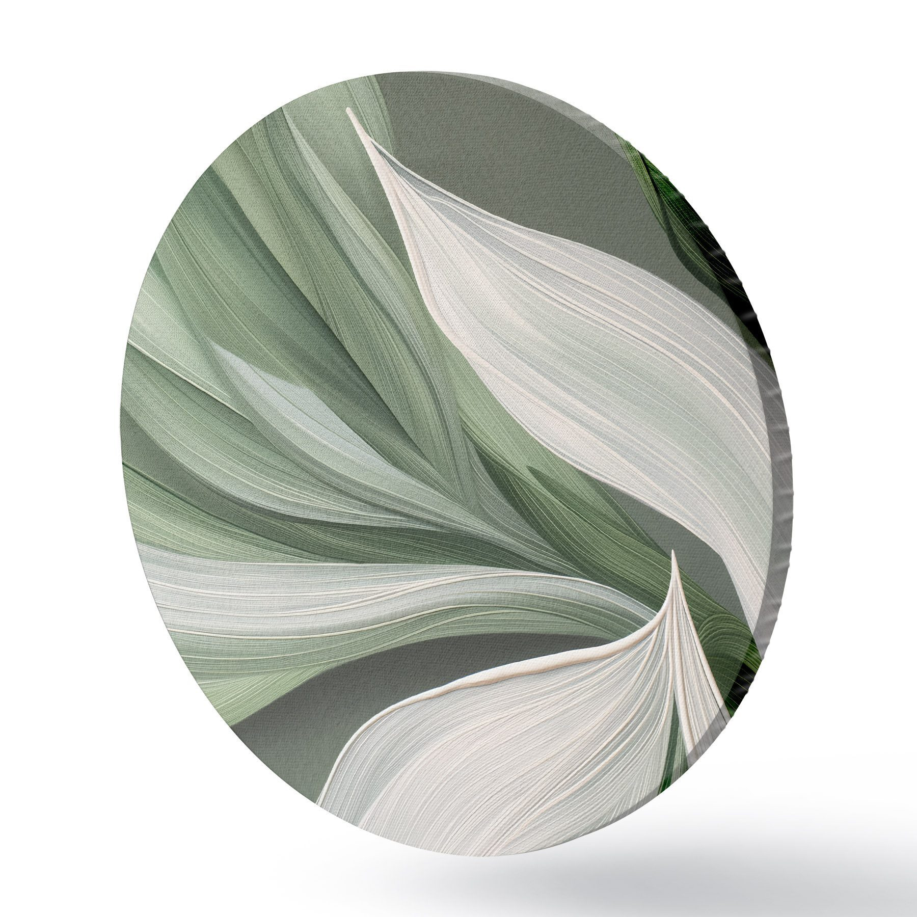 Cuadros redondos voluminoso velo abstracto en colores blanco y verde r39327