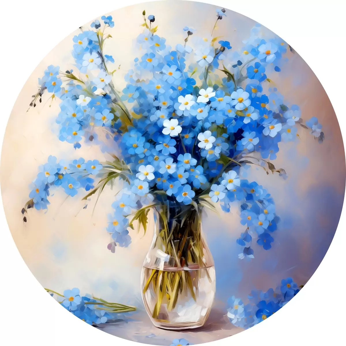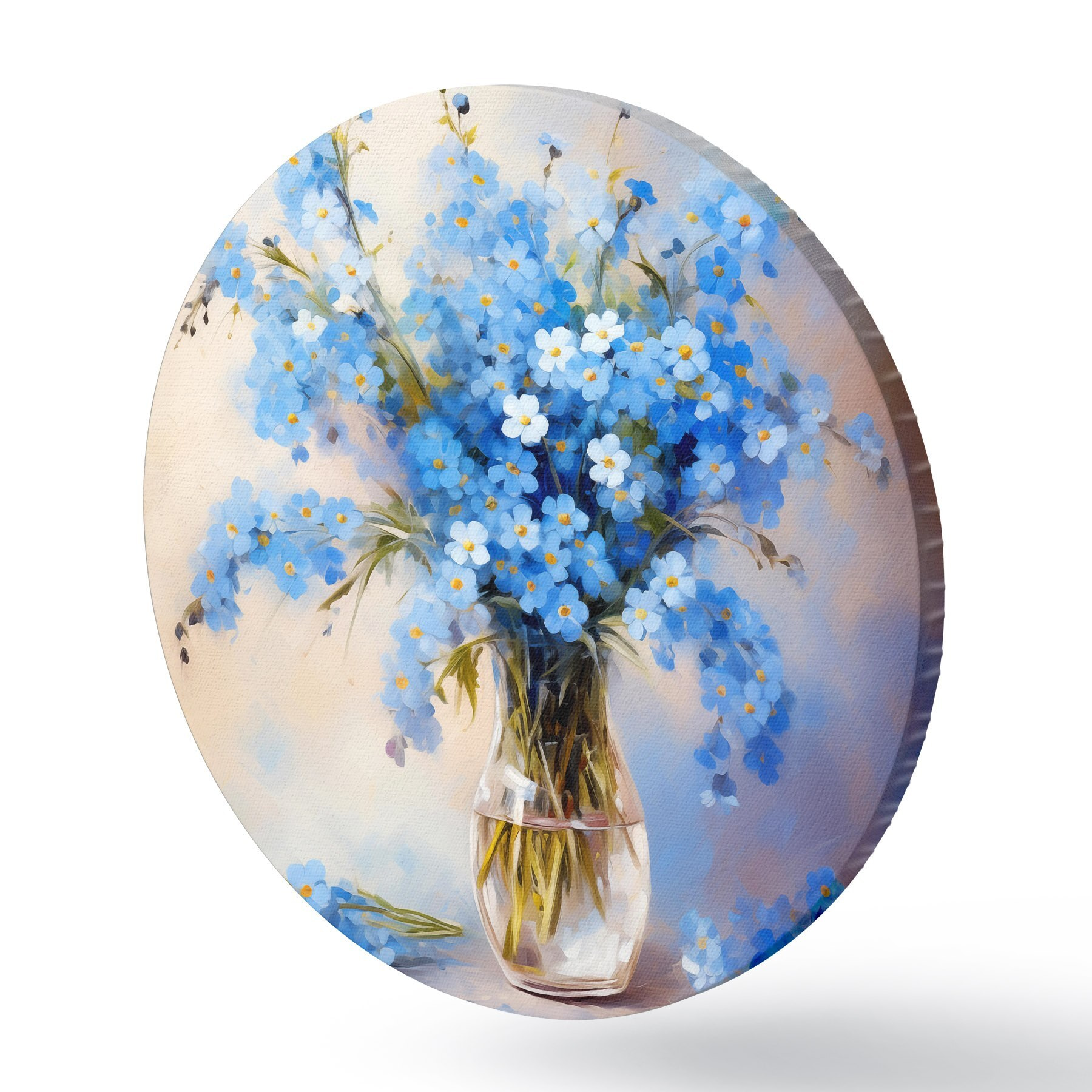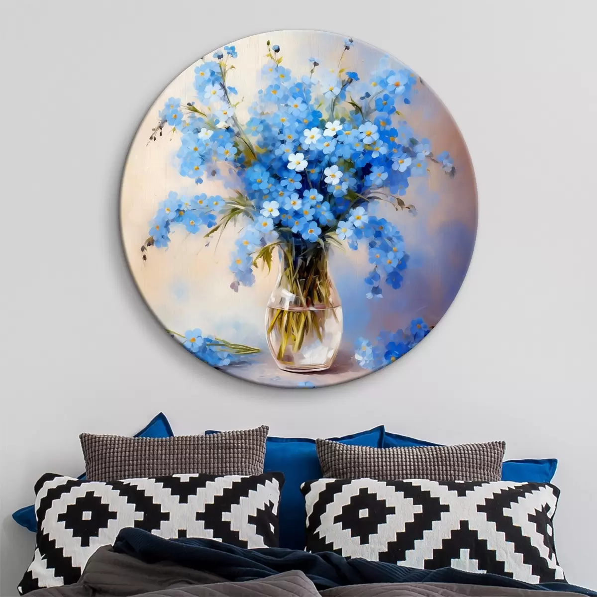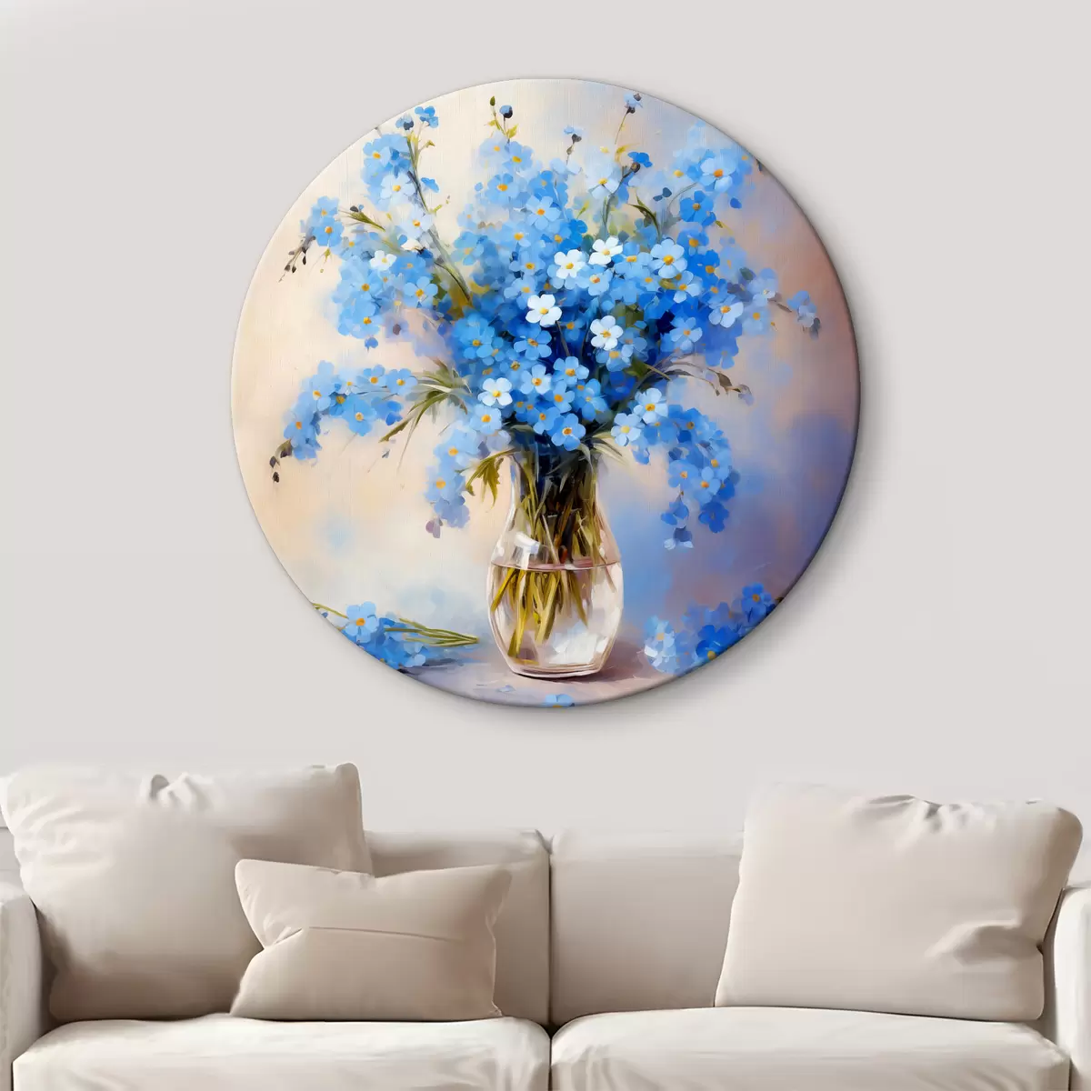 Cuadros redondos Ramo de flores silvestres azules en una jarra de vidrio pintura al óleo r39331