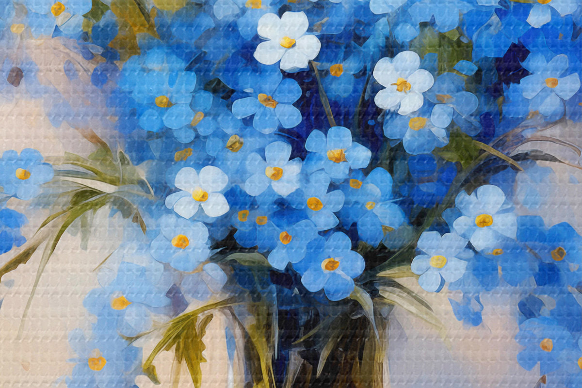 Foto Ramo de flores silvestres azules en una jarra de vidrio pintura al óleo Nr r39331
