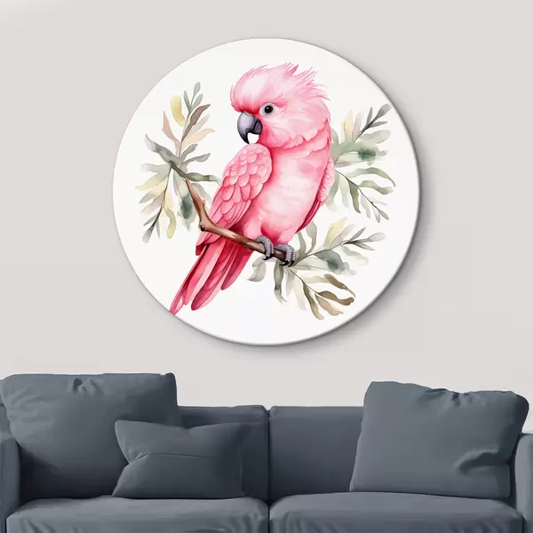 Cuadros redondos Loro cacatúa rosa sentado en una rama acuarela r39334