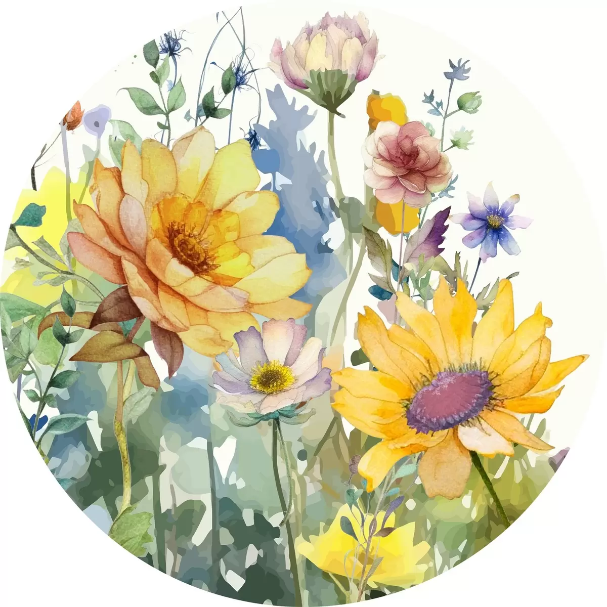 Cuadros redondos Flores silvestres de verano en acuarela r39340