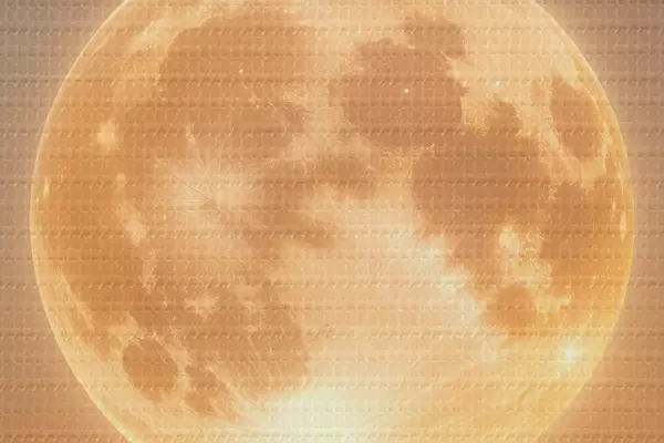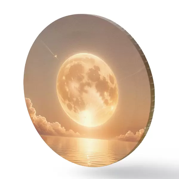Cuadros redondos Una luna llena grande y brillante que se eleva sobre un océano tranquilo y reflectante al atardecer r39403
