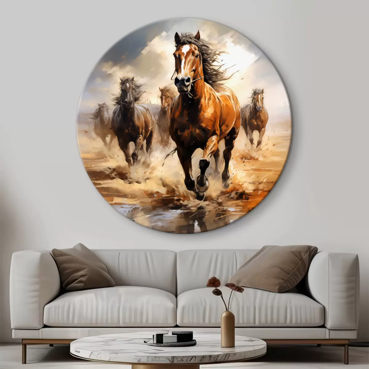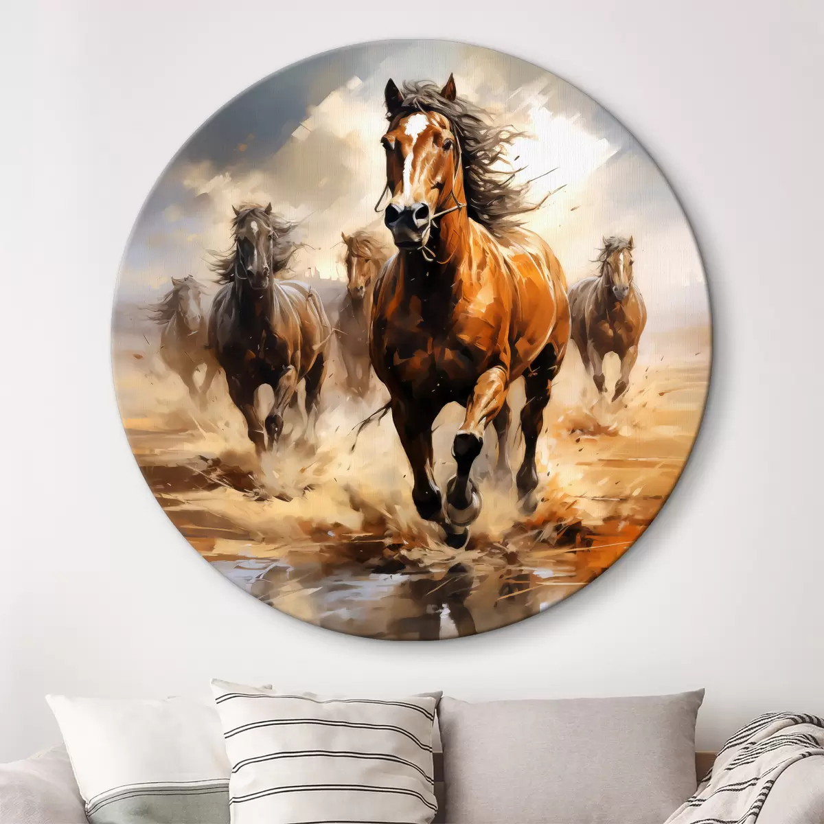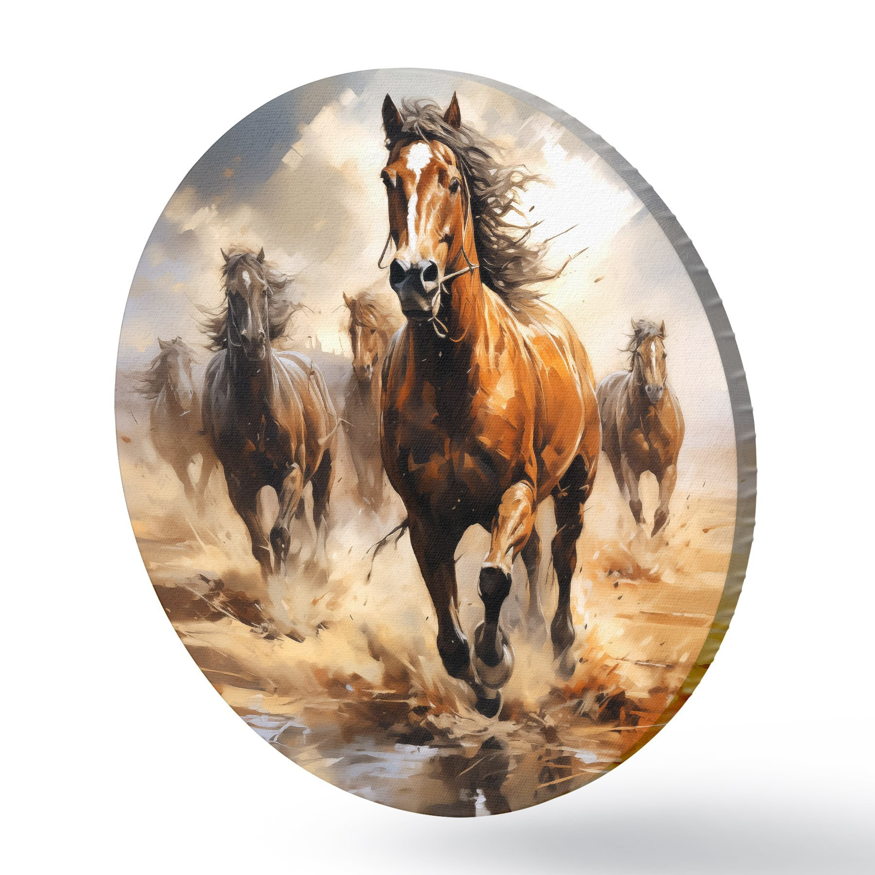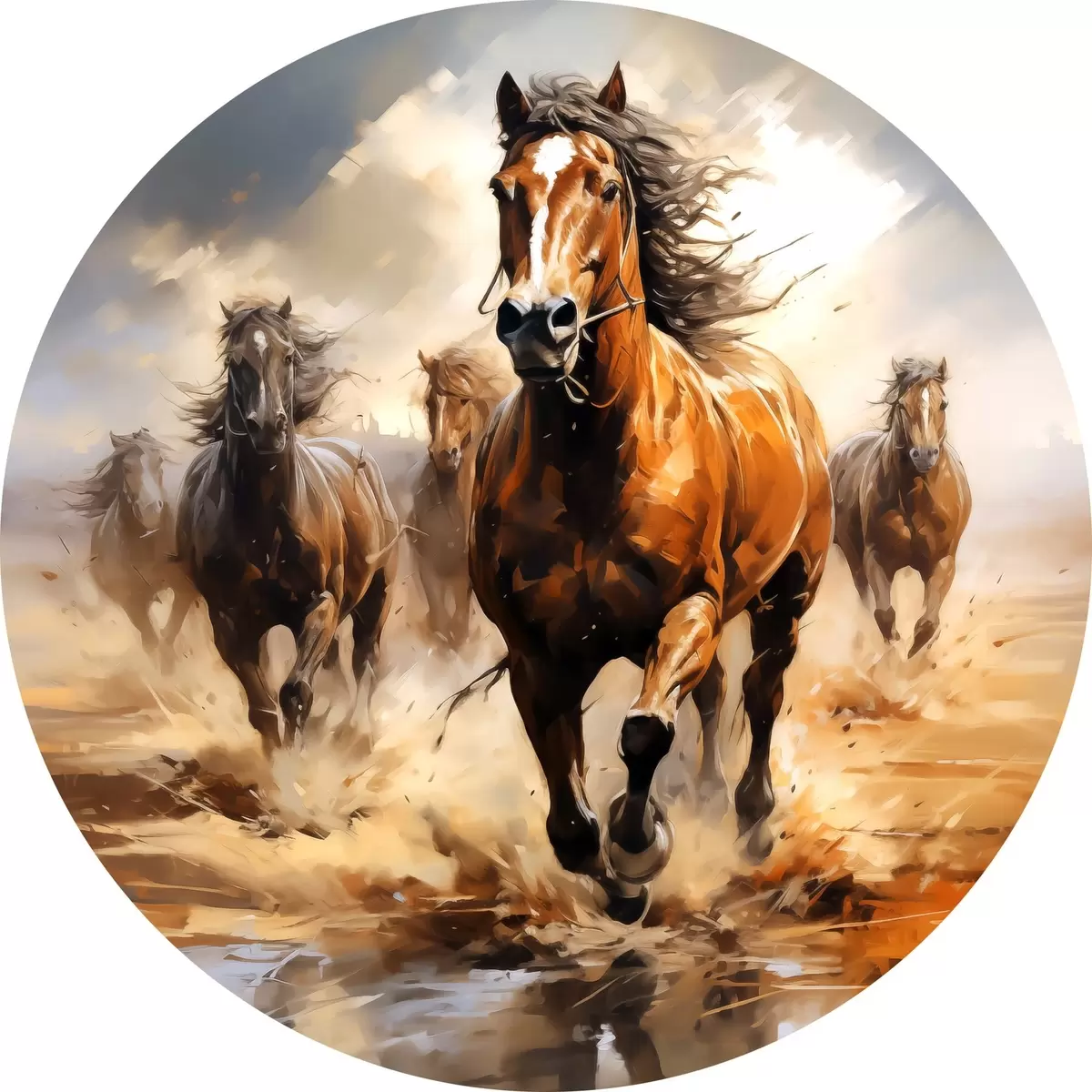 Cuadros redondos Cuadro al óleo de caballos galopando por una pradera r39436