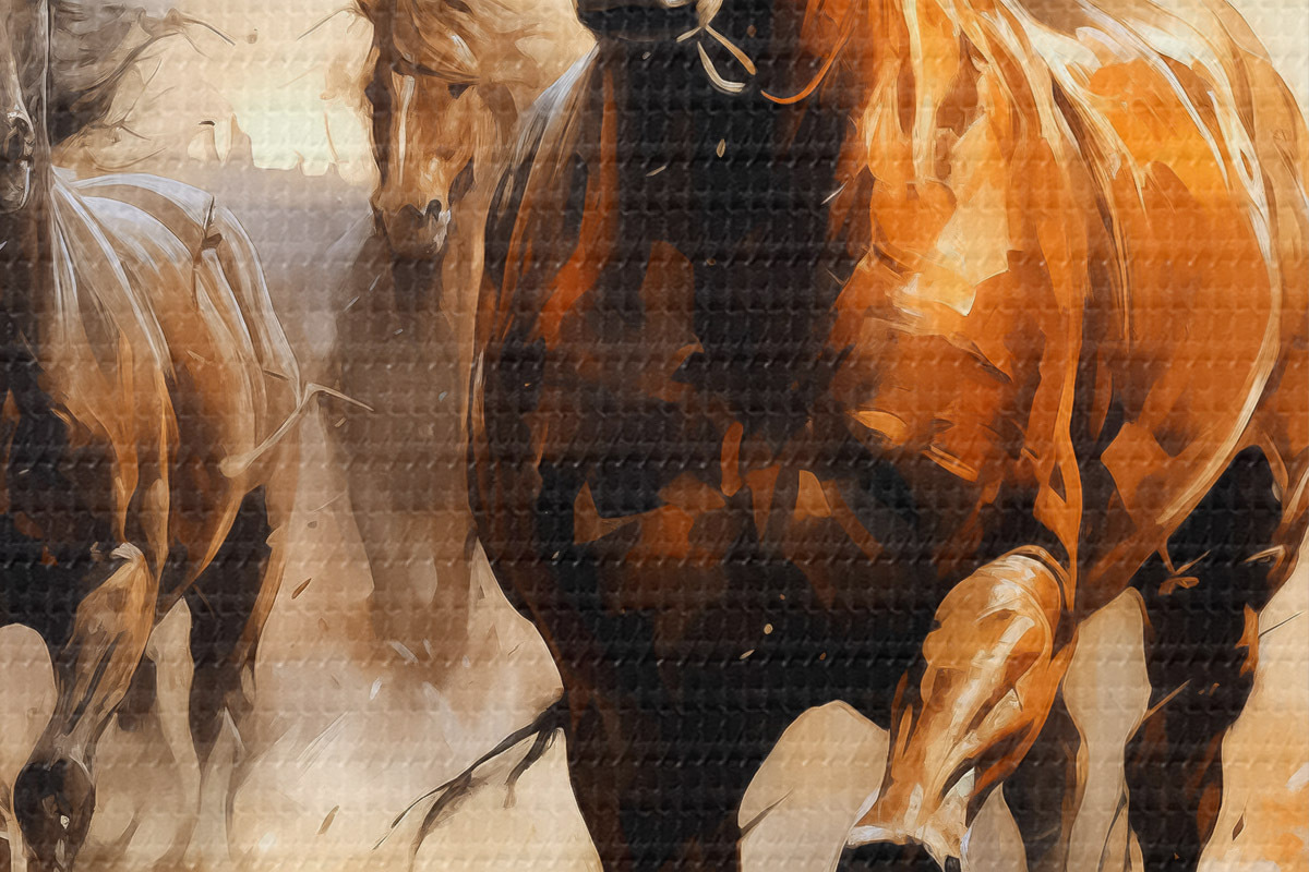 Foto Cuadro al óleo de caballos galopando por una pradera Nr r39436