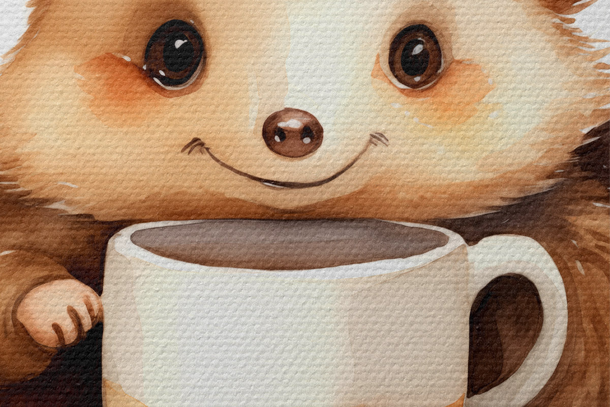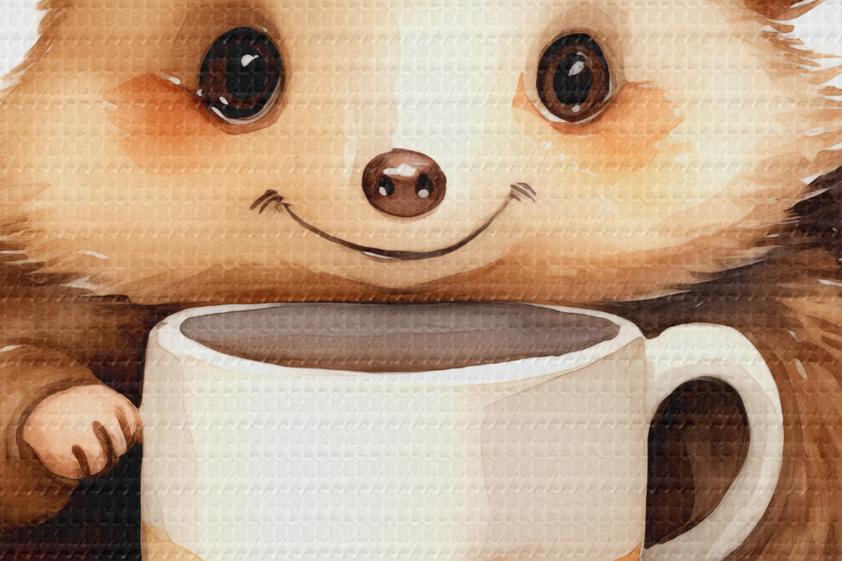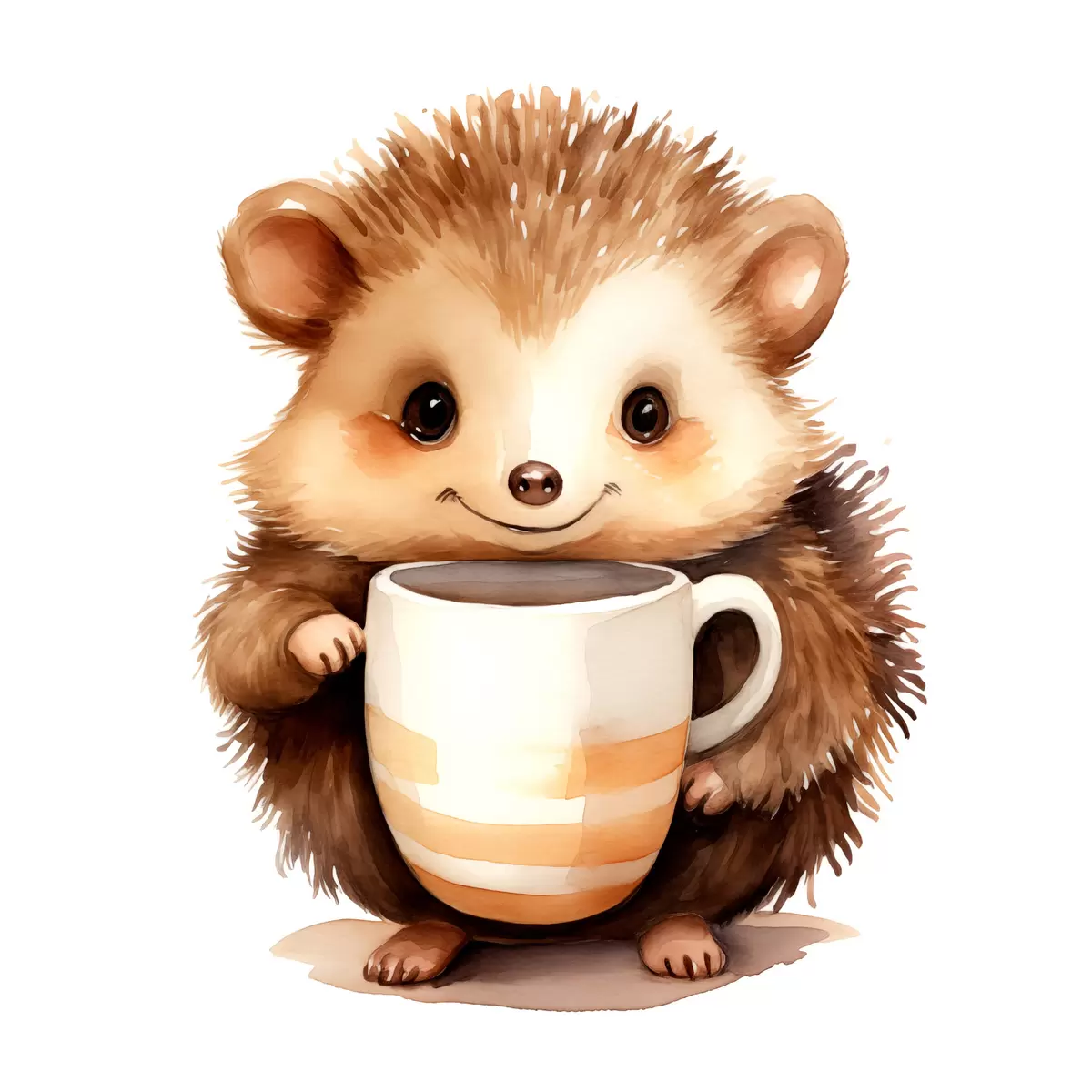 Foto Erizo sosteniendo una taza blanca en sus patas ilustración infantil acuarela Nr r39440