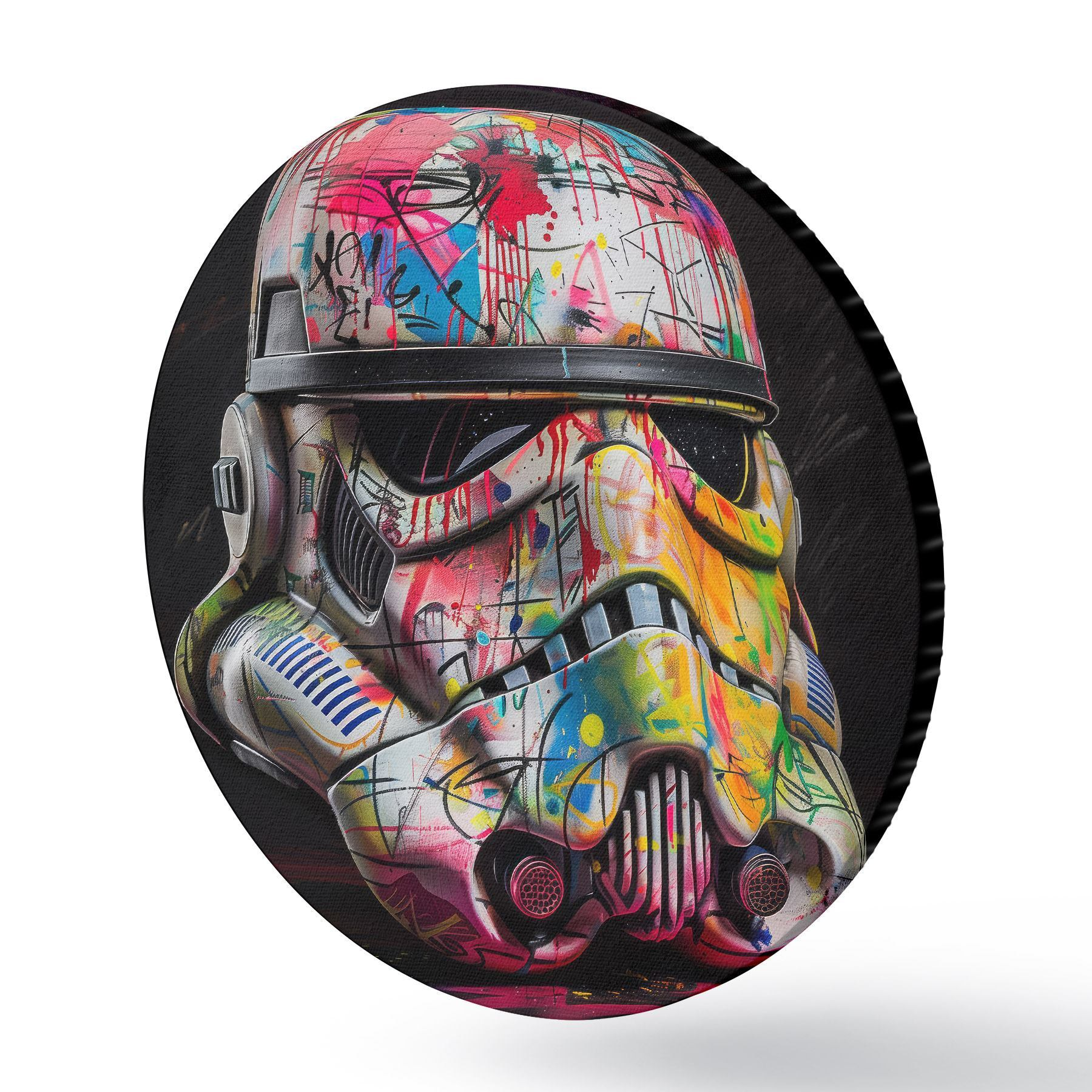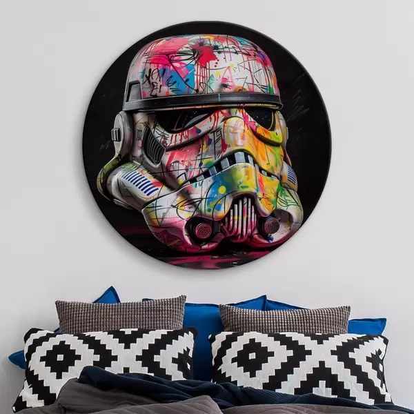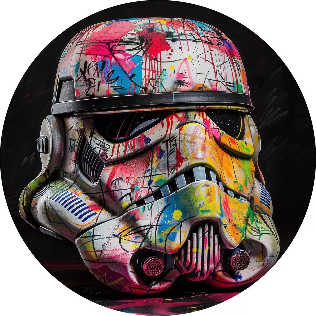 Cuadros redondos Un casco de soldado de asalto de Star Wars cubierto de vibrantes arte callejero y graffiti r39453