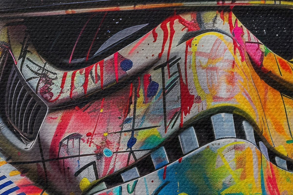 Foto Un casco de soldado de asalto de Star Wars cubierto de vibrantes arte callejero y graffiti Nr r39453