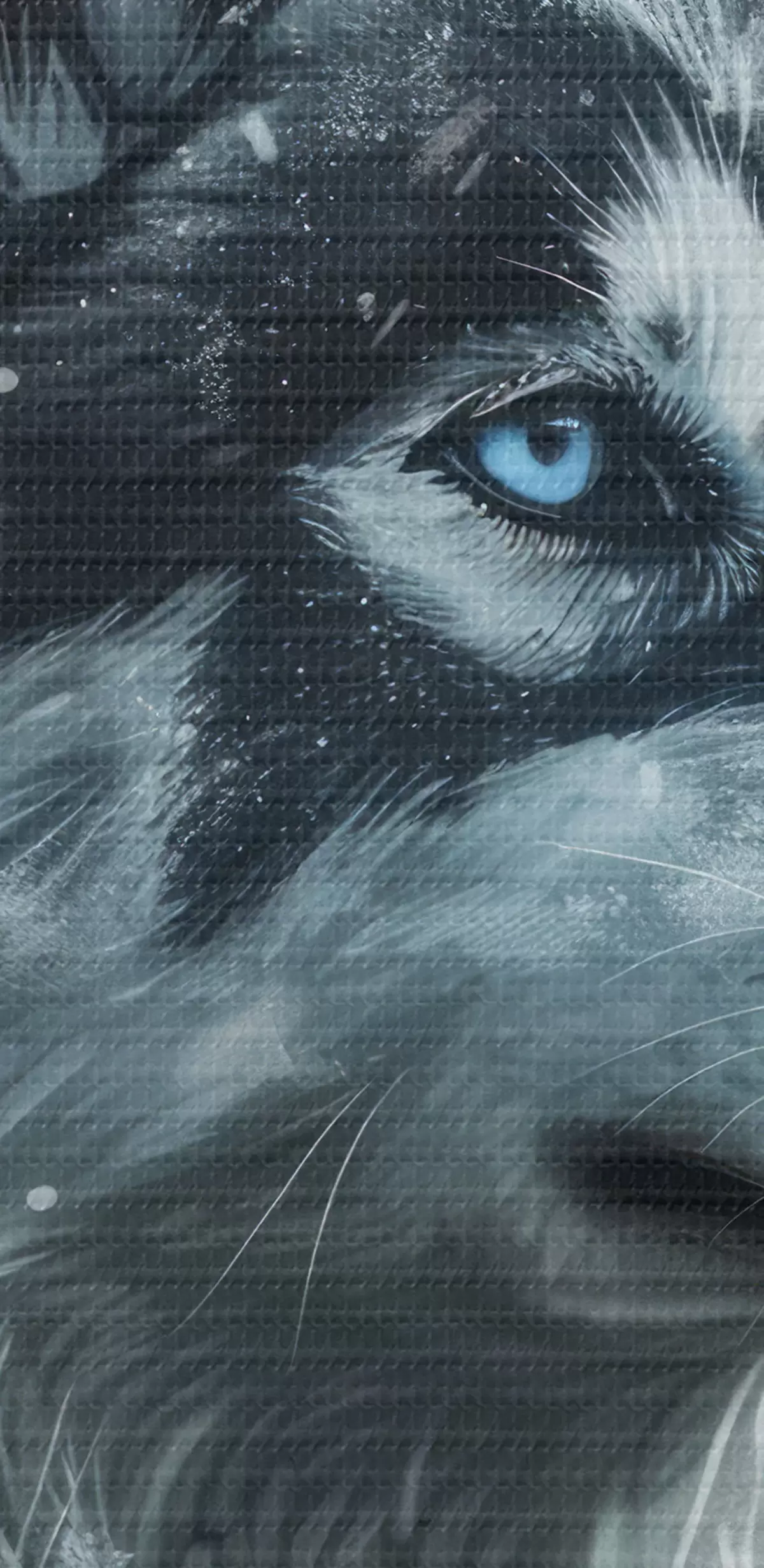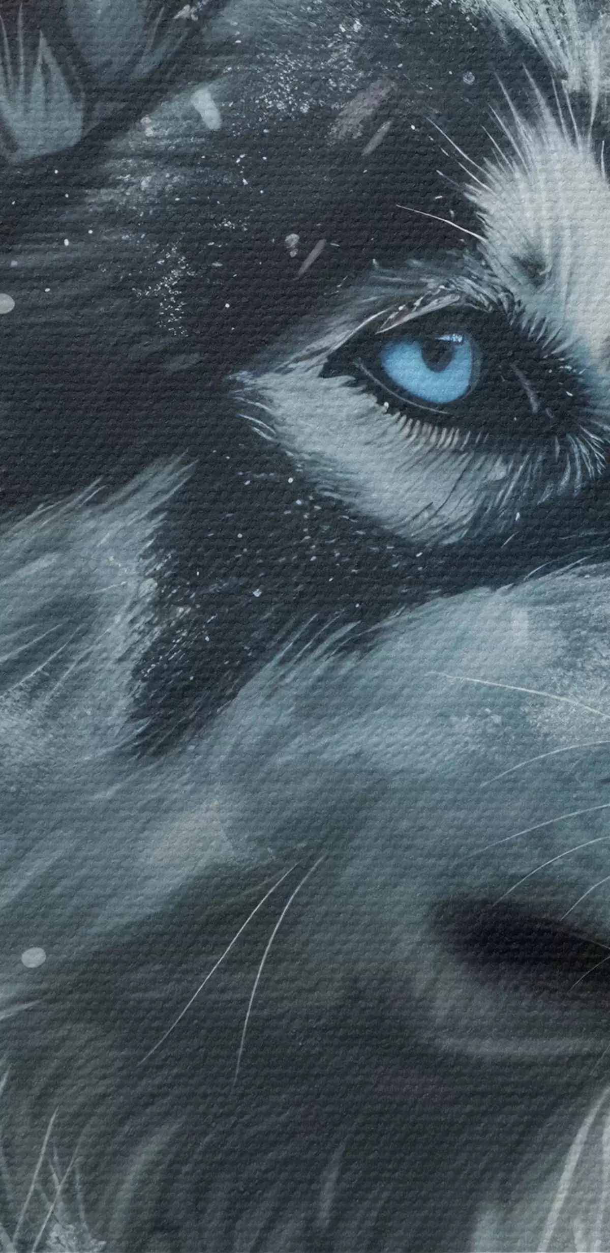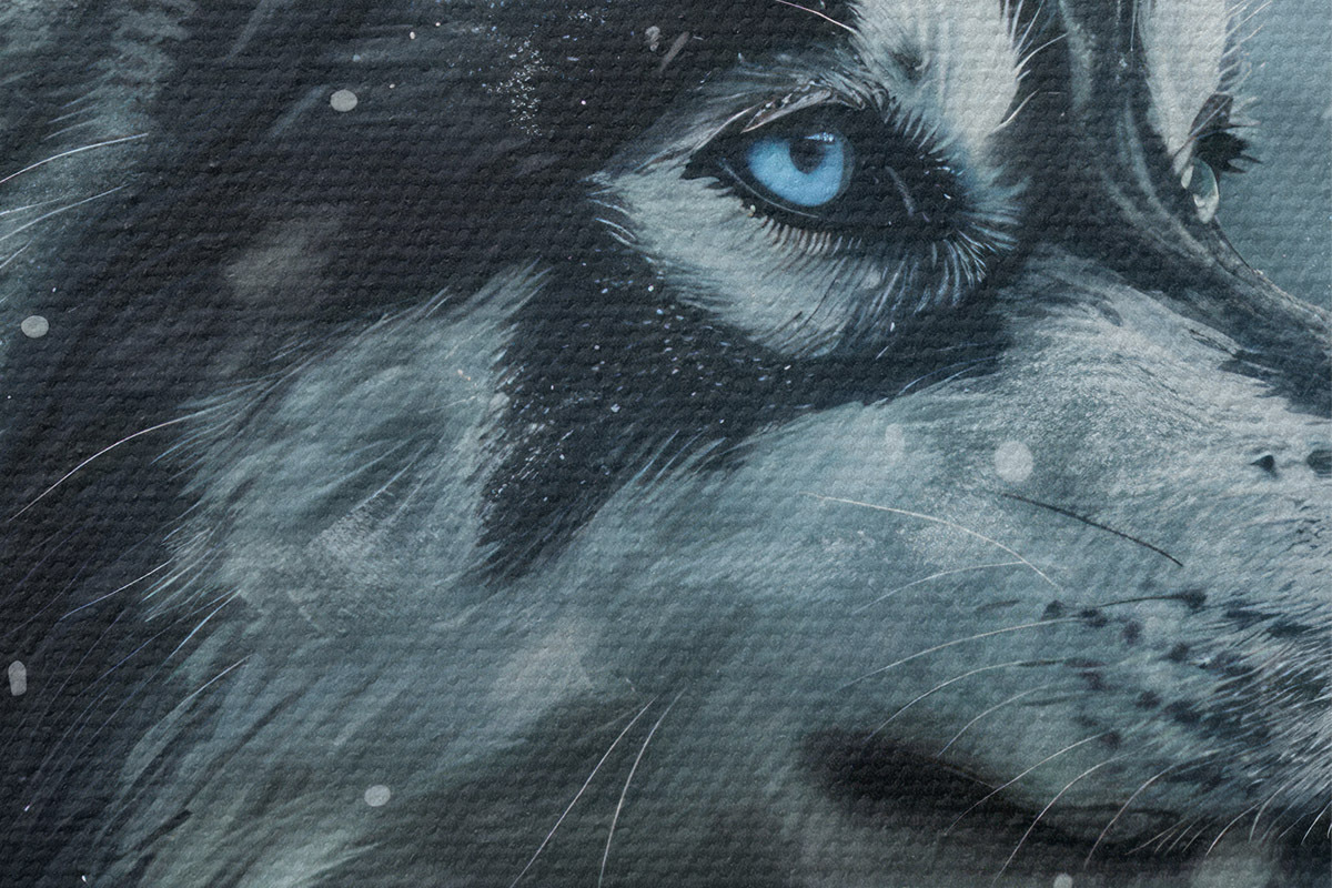 Foto Husky con ojos azules sobre fondo azul invernal Nr r39462
